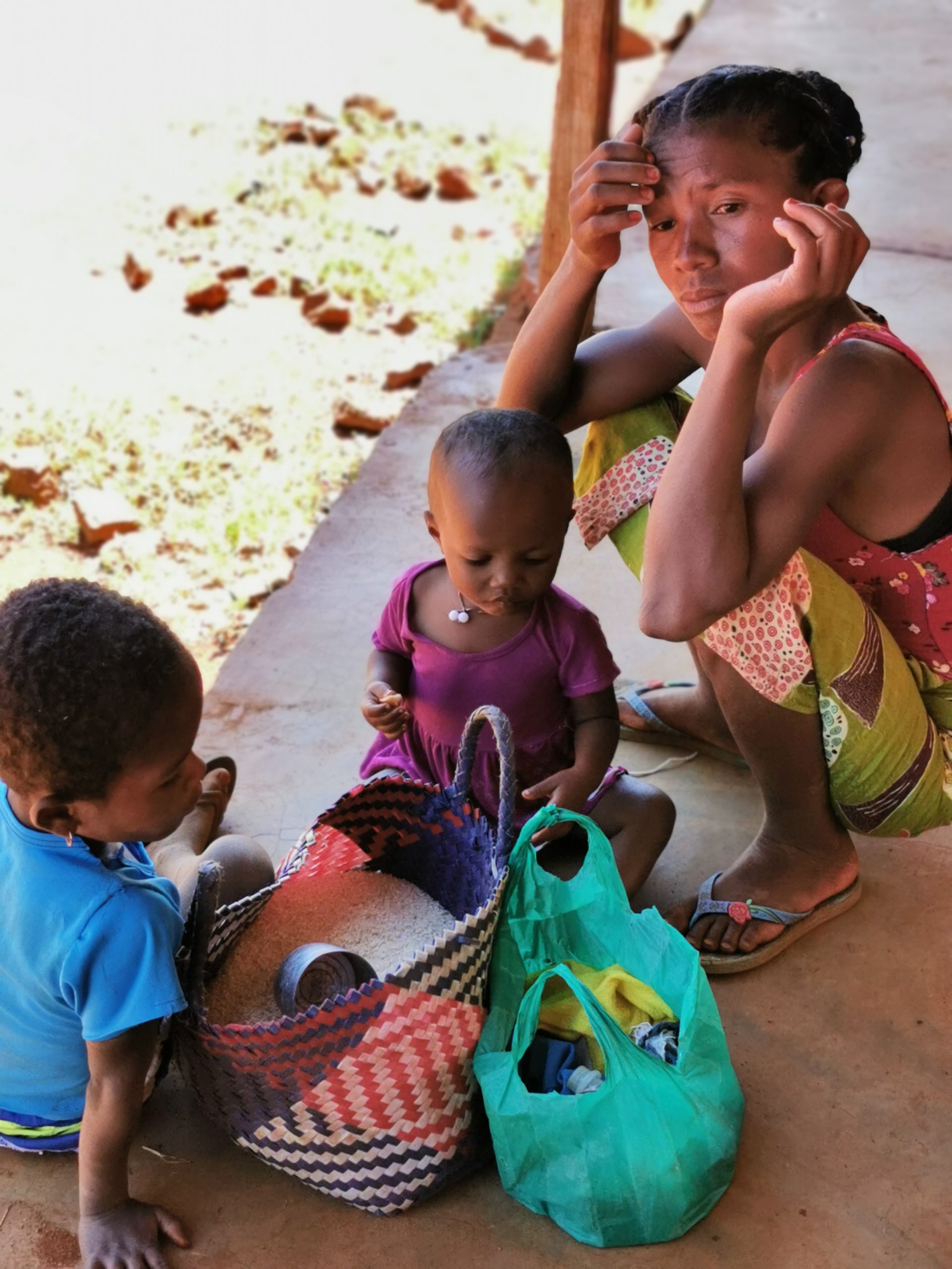 Hier 2 Geschichten, die ich dort erlebt habe. In Ambohitsara lebt eine alleinerziehende Frau, die 3 kleine Kinder hat. Ihr Mann war sogar ein Katechist der katholischen Kirche. Er hat sich „davongemacht, um ein besseres Leben zu suchen“. Zurück blieben seine Familie mit den 3 Kindern. Da er seine Frau nie offiziell standesamtlich geheiratet hat (auf dem Dorf in Madagaskar heiratet man meistens nur traditionell), muss sie sich und die Kinder jetzt alleine durchbringen. Sie hat keinerlei Anrecht auf Unterstützung. Es ist wirklich herzzerreißend – das passiert gefühlt jeder 2. Frau in Madagaskar, meistens Landbewohner. Um irgendwie zu überleben, muss diese Frau alle Märkte im Umkreis von 30 km „abklappern“. Zu Fuß. Sie kauft Waren und verkauft sie dann wieder. Sie verdient täglich ca. 5000 Ariary, durch diese mühsame Arbeit. Das reicht für 3 Mahlzeiten pro Tag für die Familie. Aber nicht für Medizin oder Krankenhausbehandlung.