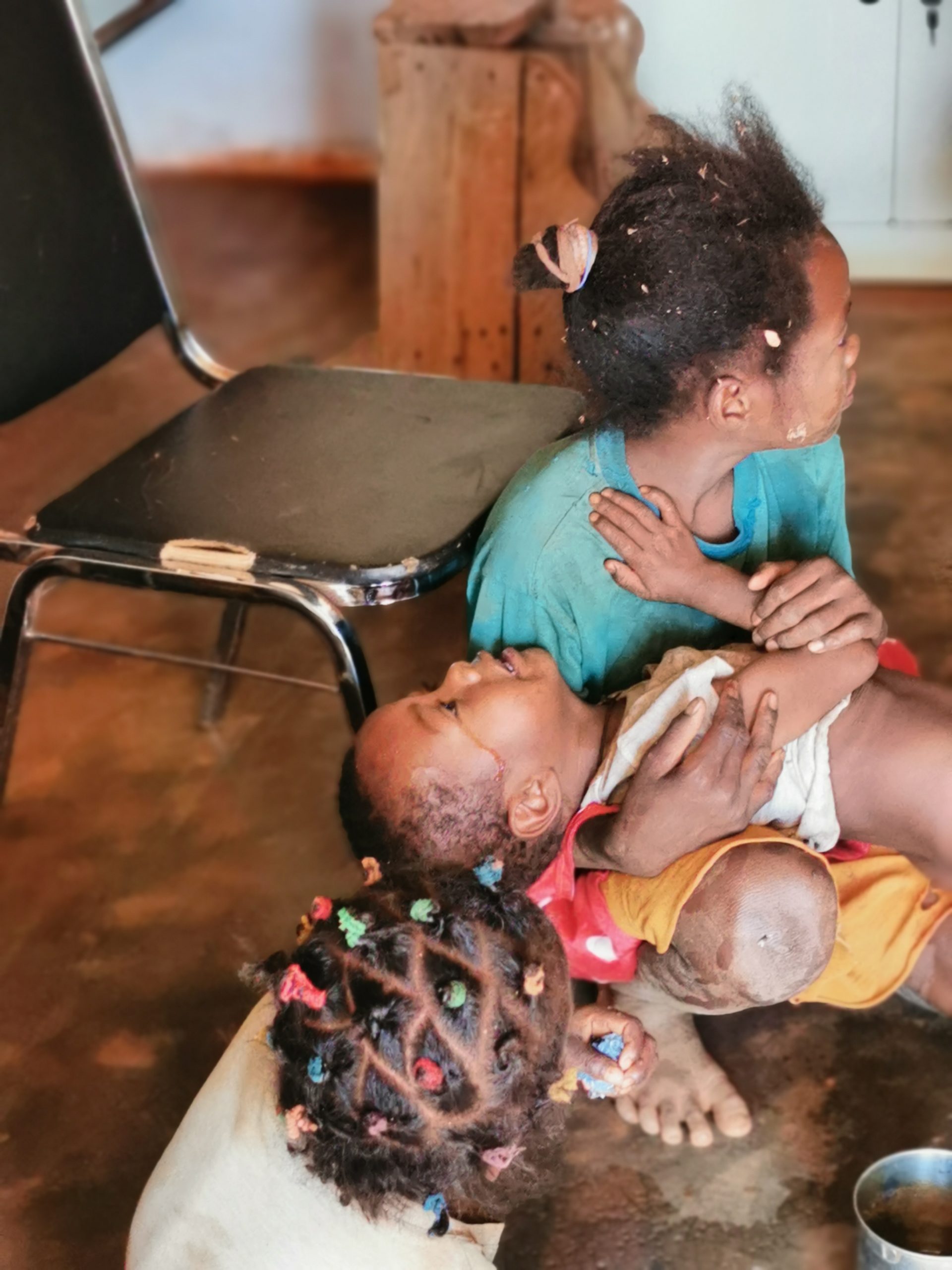 Das Problem waren oft die Eltern. Sie brachten ihre Kinder nicht rechtzeitig ins Krankenhaus. Sie haben fast alle sehr viele Kinder und eines davon war „immer krank“…. Deswegen scheuten sie den Aufwand (besonders wenn sie außerhalb von Ambohitsara lebten), ins Missionskrankenhaus zu kommen. Vor allem war es ihnen zu teuer. Sie haben einfach fast kein Bargeld. Und dass man bei uns auch mit Naturalien oder Arbeitsleistung bezahlt, das glaubten sie damals einfach noch nicht. Obwohl die Behandlungskosten bei uns „nichts“ sind, im Vergleich zu den anderen Krankenhäusern, gingen sie immer erst zum Dorfschamanen. Erst als das Kind zu sterben drohte, machte sich die verzweifelte Oma mit ihrem Enkelkind auf dem Arm, meist zu Fuß, auf den Weg zu unserem Krankenhaus. Aber dann war es meistens schon zu spät und das Kind ist uns unter den Händen weggestorben.