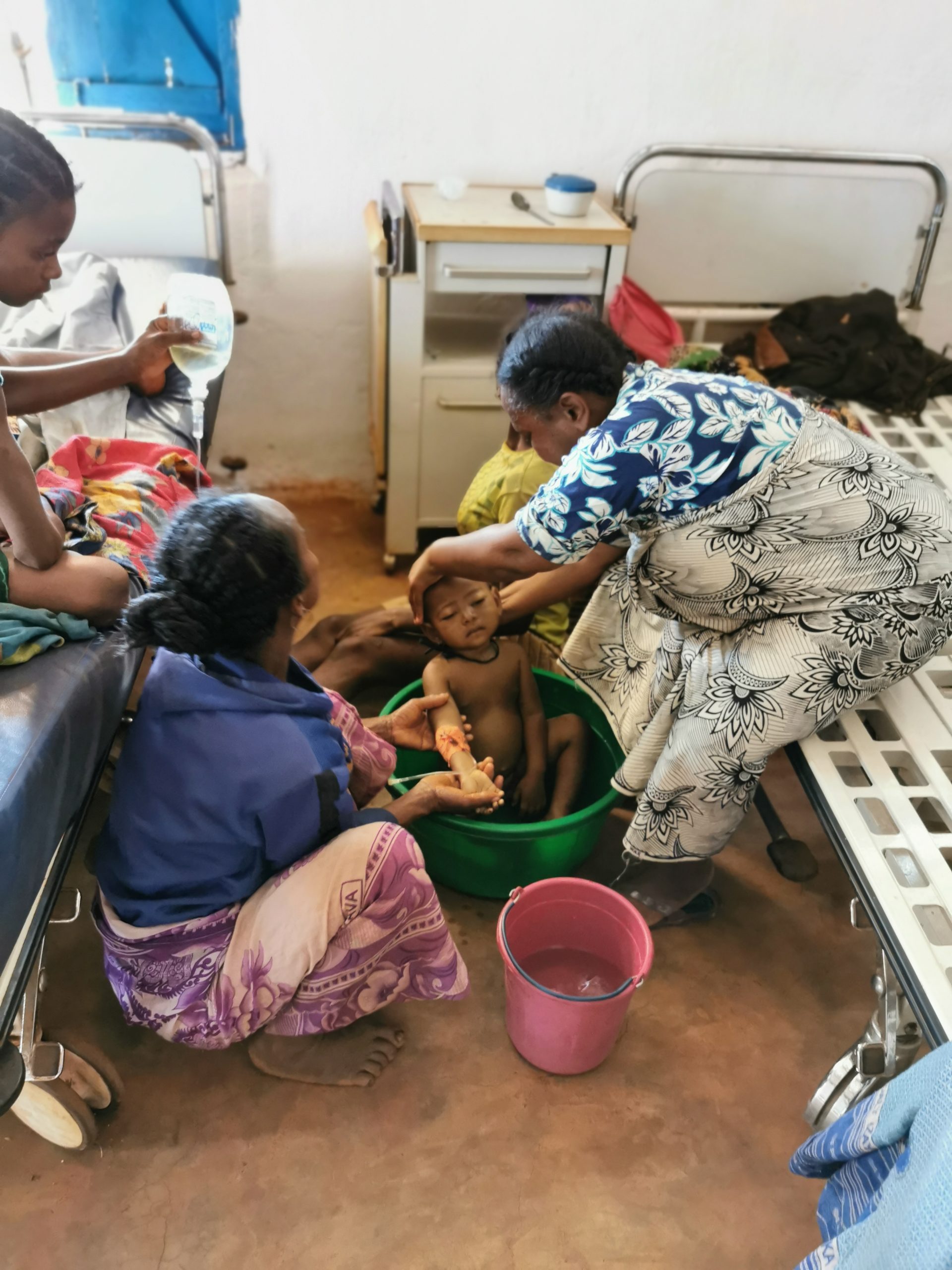 - Es geht dem Kind schon besser, so dass Dr. Roseline es baden kann