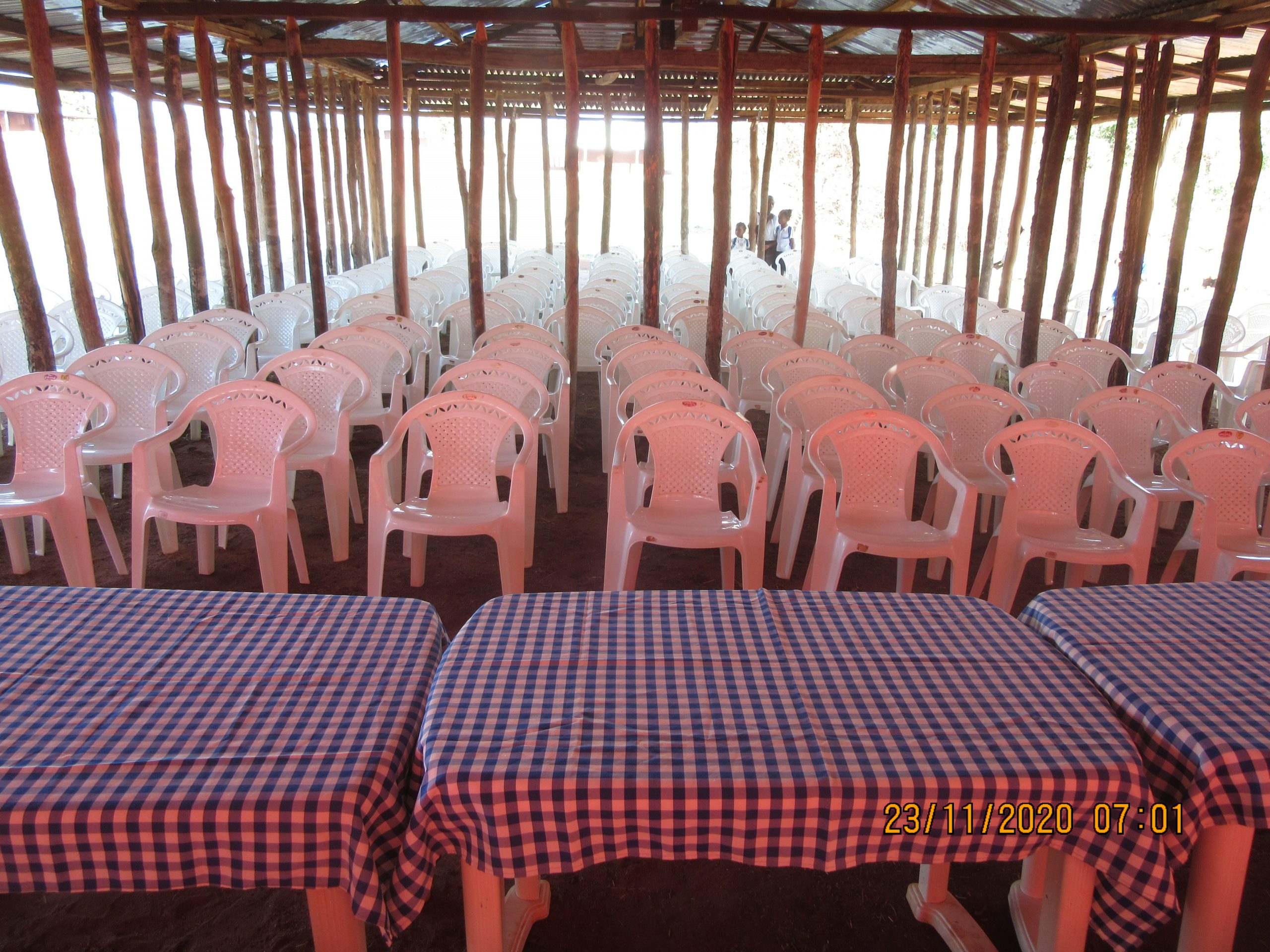 - Letzte Woche wurde der offizielle Beginn des neuen Schuljahres gefeiert. Ein Versammlungsort (noch halbfertiges Schulgebäude) wurde vorbereitet. Auch die Eltern der Schüler waren mit eingebunden. Alle Lehrer haben sich kurz vorgestellt und Reden wurden gehalten. Danach konnten die Eltern noch mit den Direktoren/Lehrern reden.