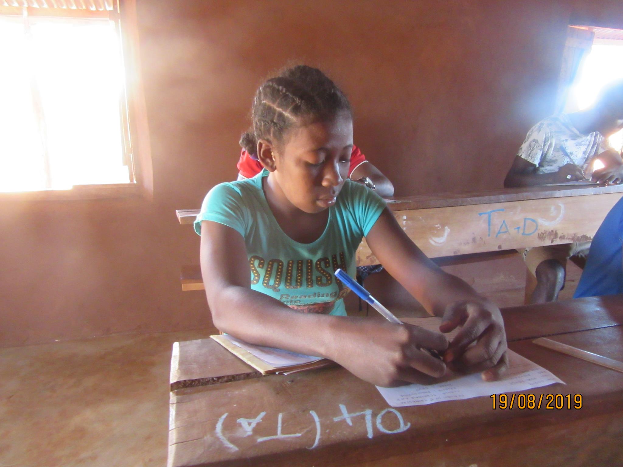 - Sarobidy ist eine der Schülerinnen, die nach der Geburt wieder zur Schule geht