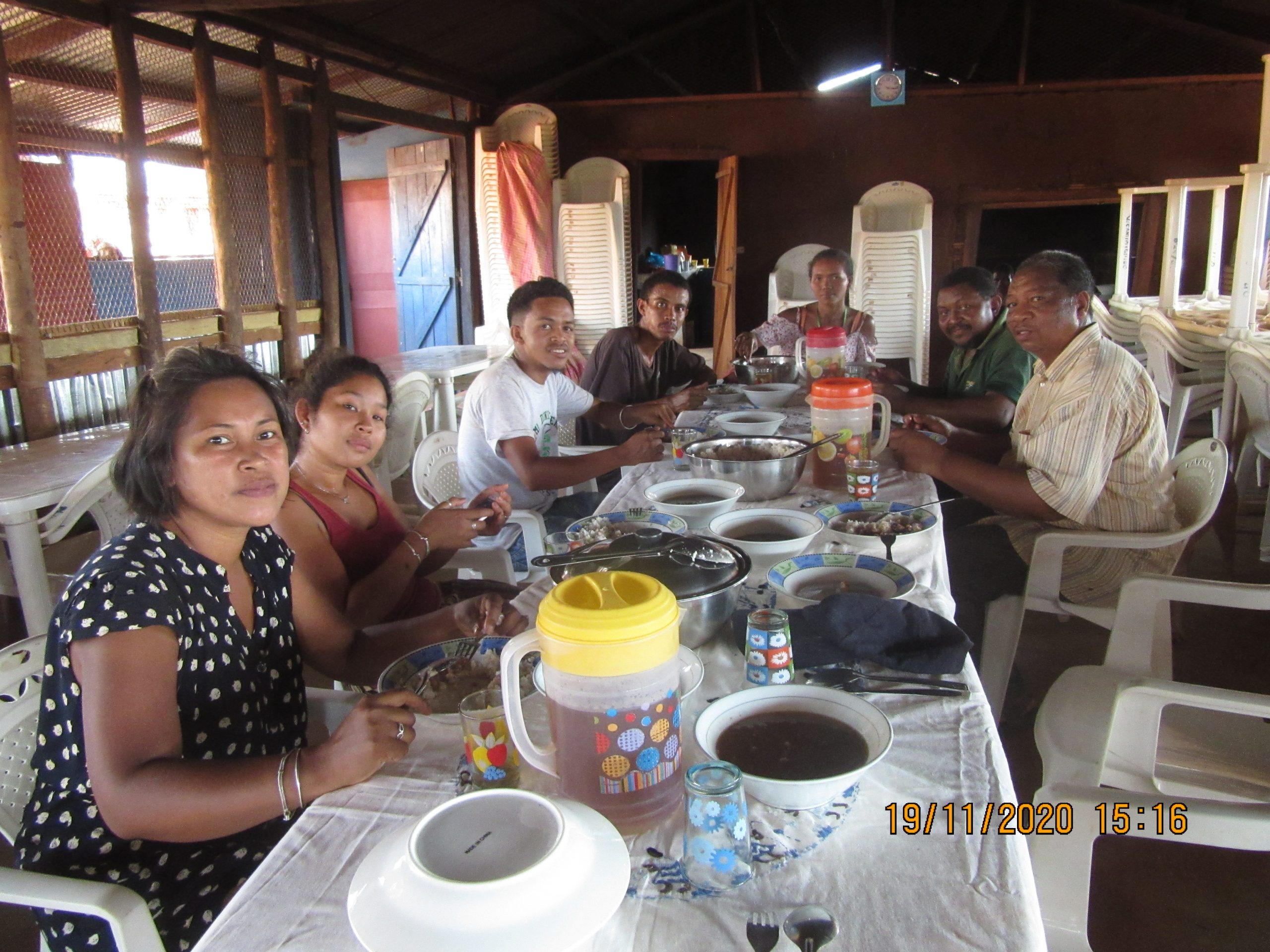 Sie wollten dann wieder fahren und unterwegs Mangos sammeln, zum Essen. Sie hatten ja nichts dabei. Das kam aber gar nicht in Frage für unsere Leute. Nach dem Rundgang war schon ein Tisch in der Kantine gedeckt und es gab etwas zu Essen.