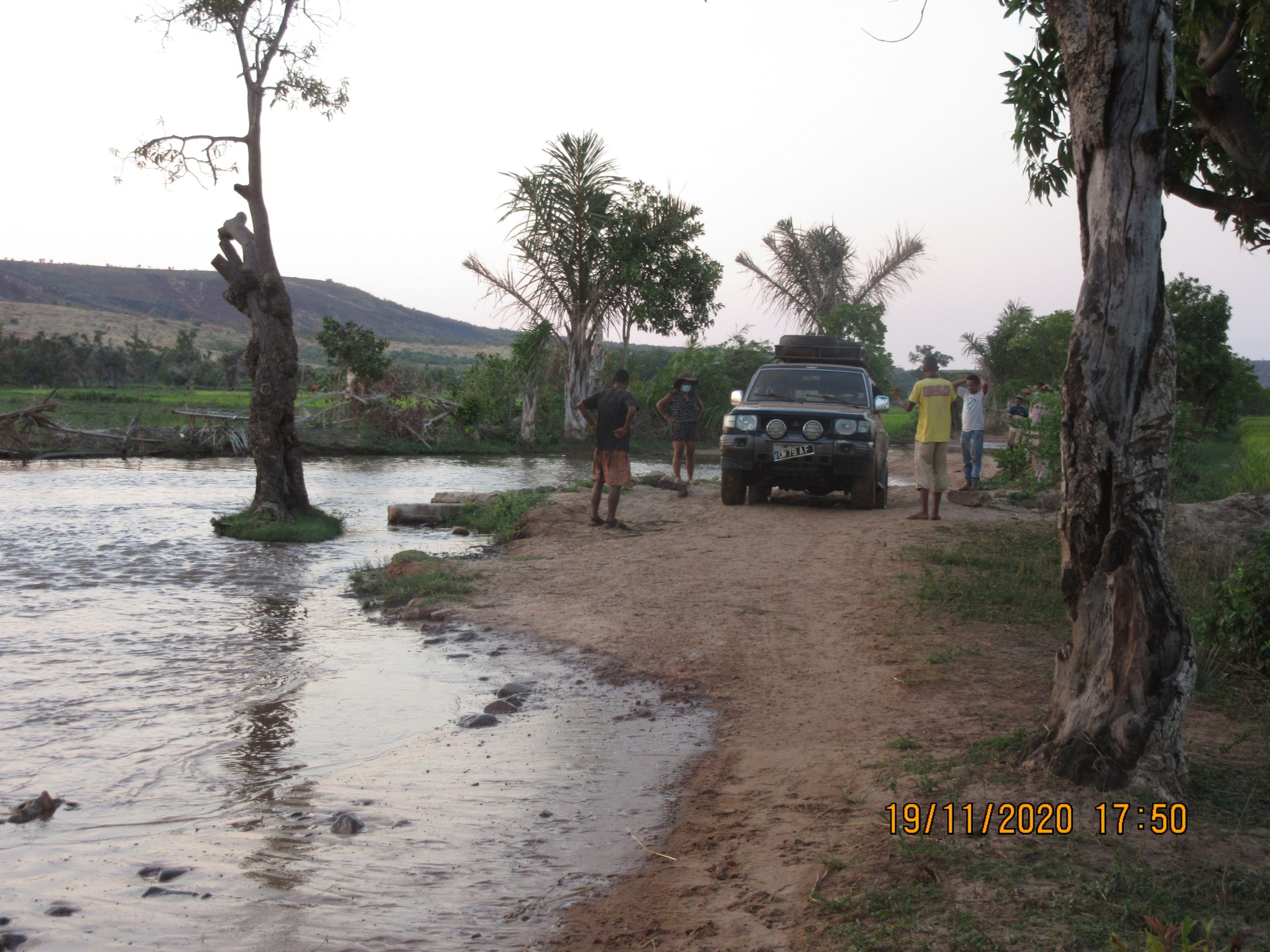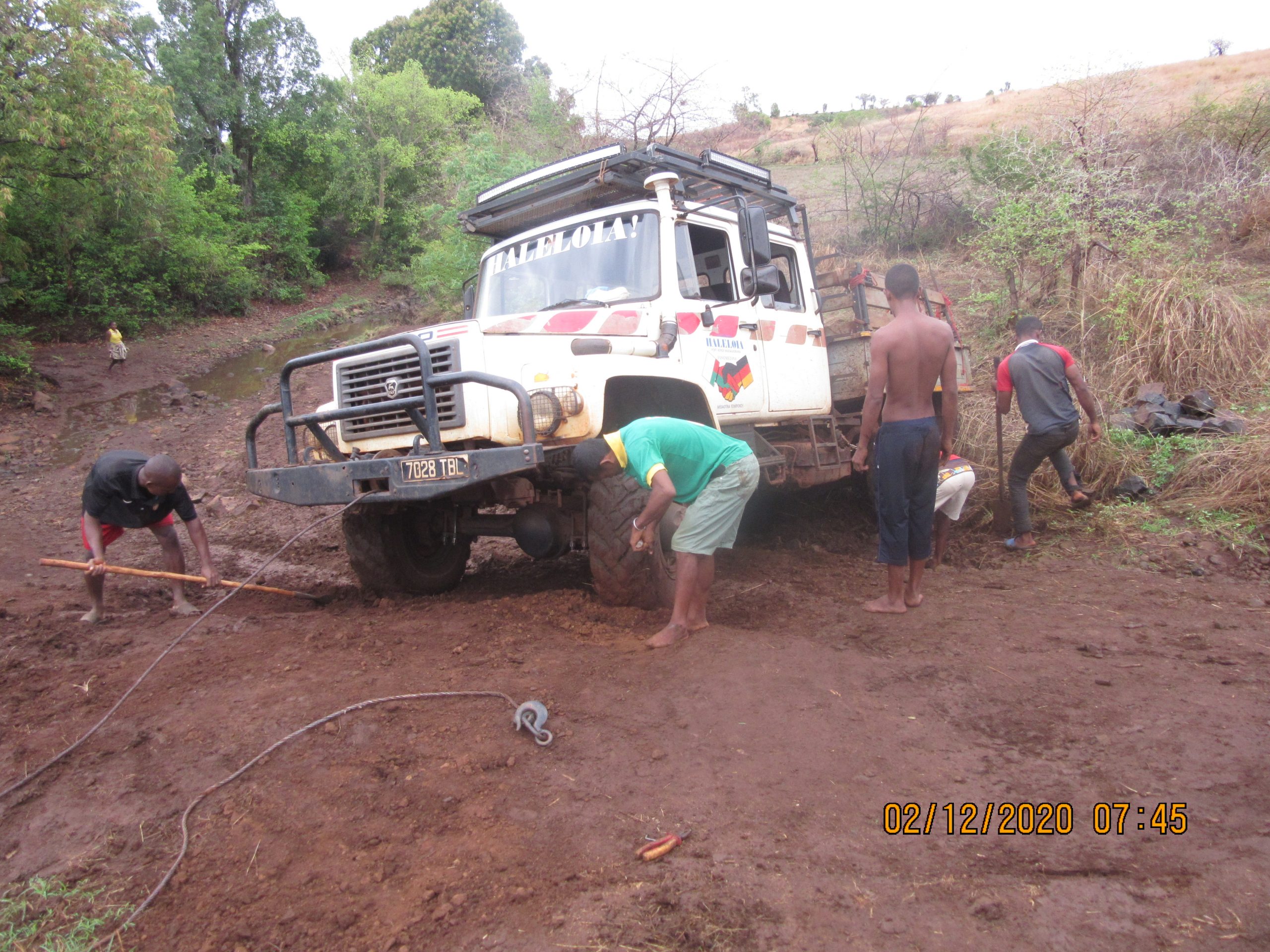 Deswegen hat diese Delegation beschlossen, zuerst nach Ambohitsara zu fahren, weil dort ein Privatkrankenhaus wäre. Sie sind zur Gendarmerie, um sich zu erkundigen, welchen Weg sie nehmen sollten. Als sie den Weg beschrieben bekamen, sind sie losgezogen. Unterwegs haben sie noch einmal bei einem Posten der Gendarmerie nachgefragt. Gerade in dem Moment kam unser SADKO vorbei. Drinnen saßen u.a. unsere Fahrer und unser Missionsdirektor Anatole, der normalerweise in der Hauptstadt ist und auch gerade nach Ambohitsara wollte. Die Gendarmen sagten: „Folgt dem weißen Laster, die fahren nach Ambohitsara.“ Gesagt, getan. Am – uns allen bekannten – Flussübergang hat der SADKO gewartet, um die „fremden“ Leute vorbeizulassen. Sie kannten einander ja nicht. Das Allradauto mit dem Team vom Gesundheitsministerium hielt auch an, weil sie ja dem SADKO hinterher fuhren. Irgendwann sind unsere Leute ausgestiegen und haben gefragt, wo sie hinwollten. Ja, nach Ambohitsara zum Buschkrankenhaus…. Ach, sagte Anatole, wir sind von dem Projekt dort – wir werden vorausfahren. Die Straßenverhältnisse waren ziemlich schwierig für ihr Allradauto und es wurde „ein wenig ramponiert“….