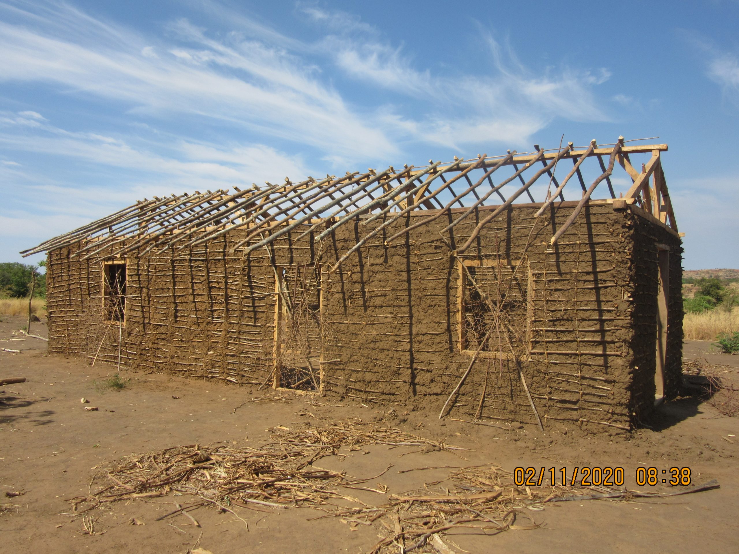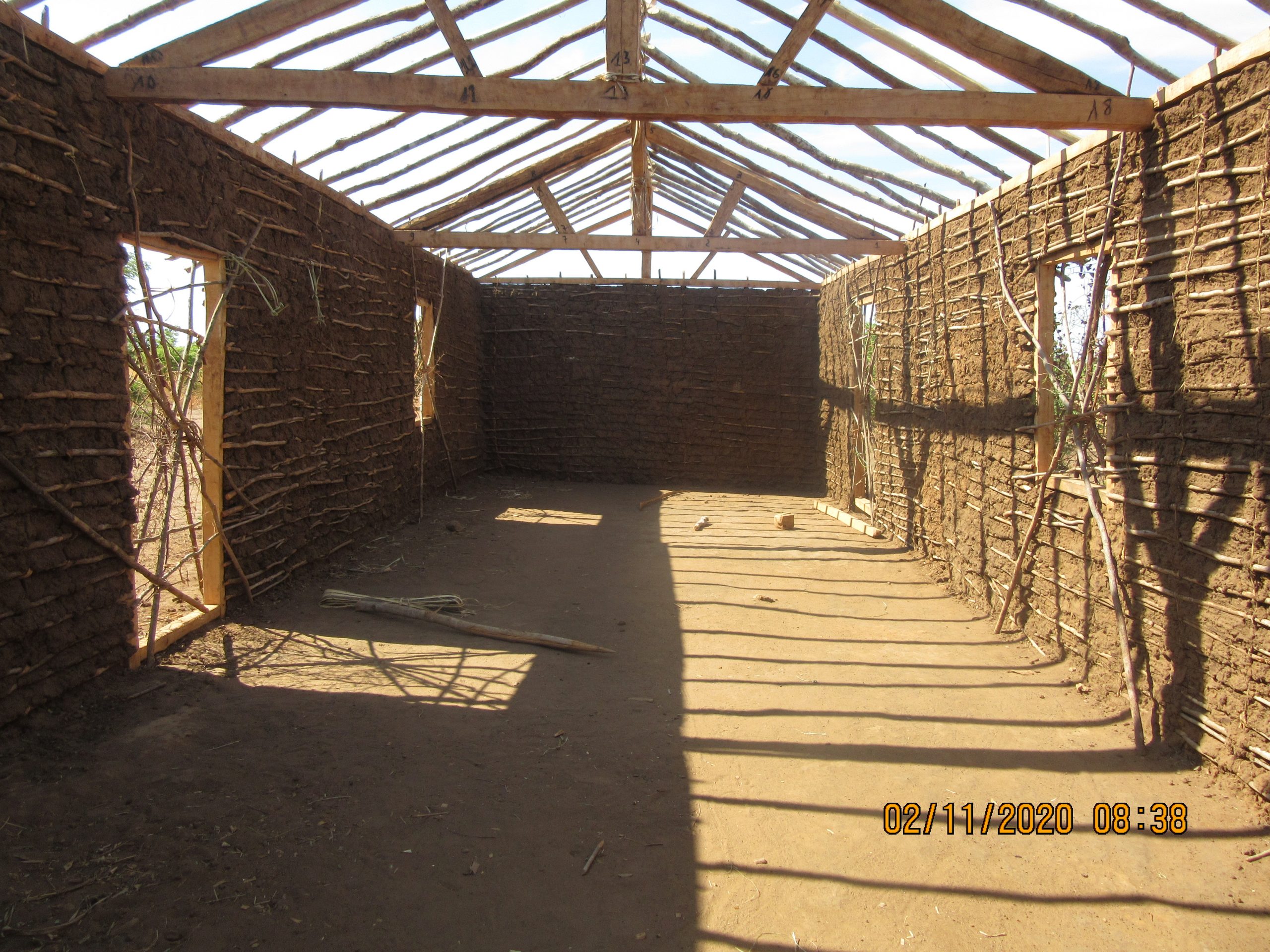 Zuerst haben sie sich noch im Schulgebäude getroffen, bis sie auch da „rausgeworfen“ wurden. Danach haben sie Gottesdienst im Freien gefeiert, mit einer Plane zum Schutz gegen Sonne und Regen. Letzte Woche haben wir Fotos von Anatole bekommen, mit der Info, dass die Gemeinde jetzt ein (Lehm) Haus baut. Sie feiern ihren Gottesdienst in diesem halbfertigen Gebäude – die Plane kommt immer noch oben drauf, als Sonnenschutz/Regenschutz, bis sie es fertig bauen können.