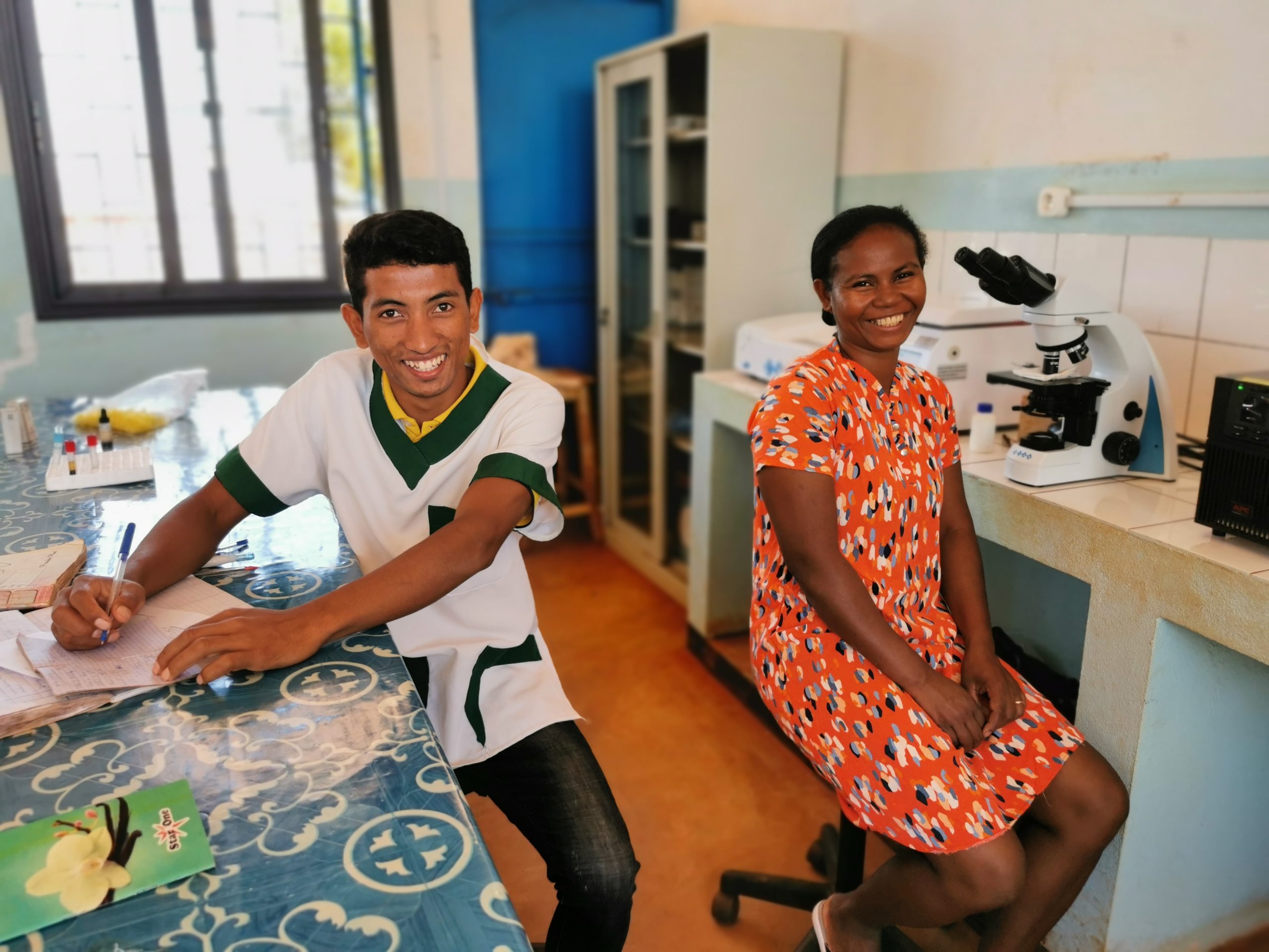 - Dritte Voraussetzung: eine gute Gesundheitsversorgung. Unser Buschkrankenhaus ist inzwischen auf einem sehr guten Level. Wir haben Hebammen, Ärzte, Pfleger und anderes medizinisches Personal. Ein gut ausgestattetes Medikamentenlager sorgt dafür, dass die Patienten ihre Medikamente sofort bekommen und nicht erst 2 mal 8 Stunden nach Port-Berger pilgern müssen. Und nicht zuletzt unser modernes Labor – es sorgt für punktgenaue Behandlung – so etwas gibt es in der ganzen Gegend nicht, auch nicht in Port-Berger.