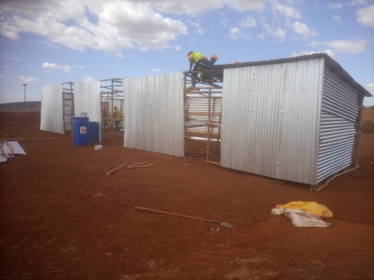 Nachdem das Gelände durch den Bagger der Regierung geebnet worden war, begann der Bau.