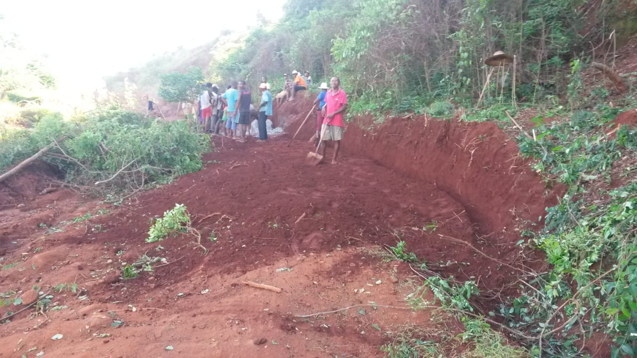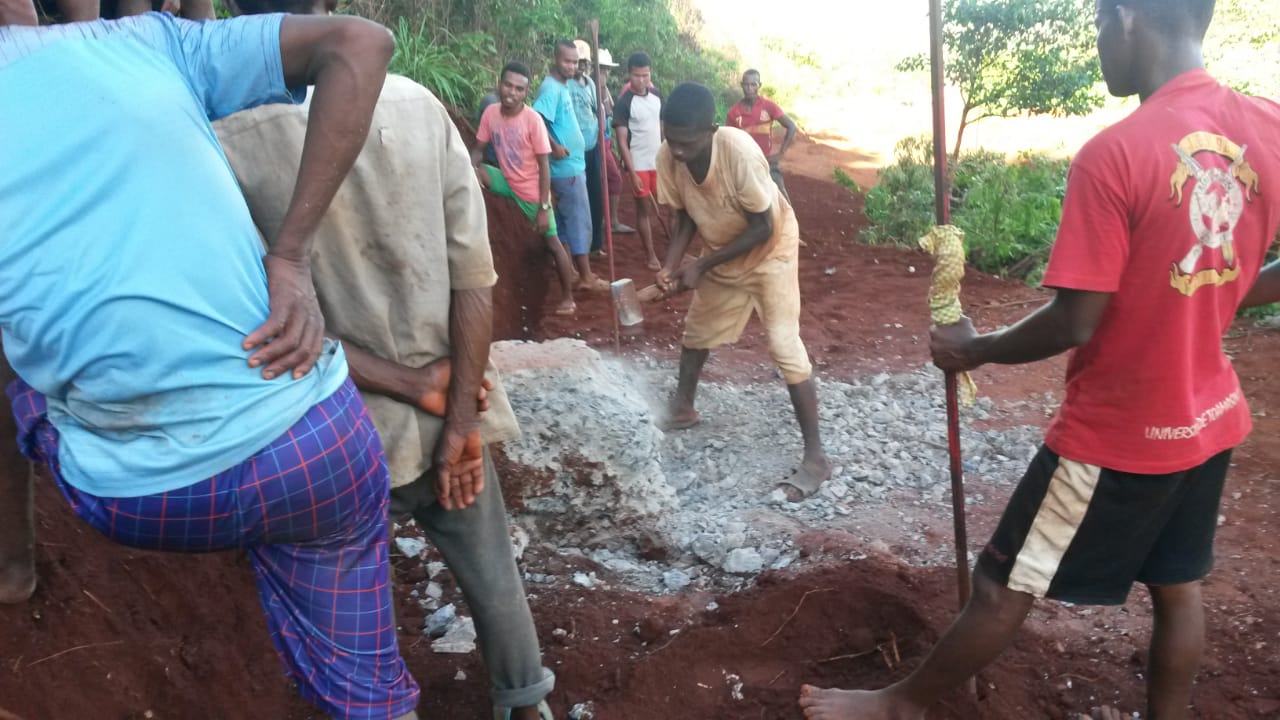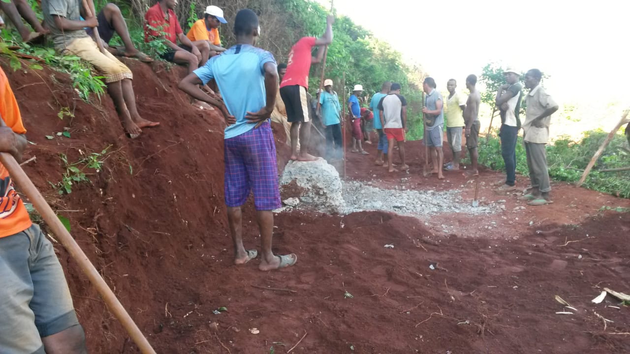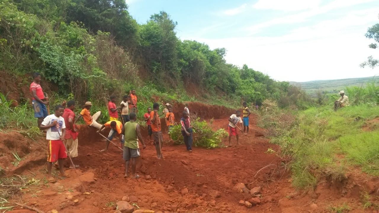 Am Samstag „stieg“ dann die Operation Pistenreparatur. Die meisten Mitarbeiter von Hope Projekte Madagaskar sind mitgekommen. Es sind sogar Leute aus 7 Dörfern, auch die vom unteren Ende des Weges (Port-Berger Seite), gekommen. Alle wollten mithelfen, die Piste wieder befahrbar zu machen. So eine große Beteiligung, vor allem der Bevölkerung, haben wir noch nie erlebt.