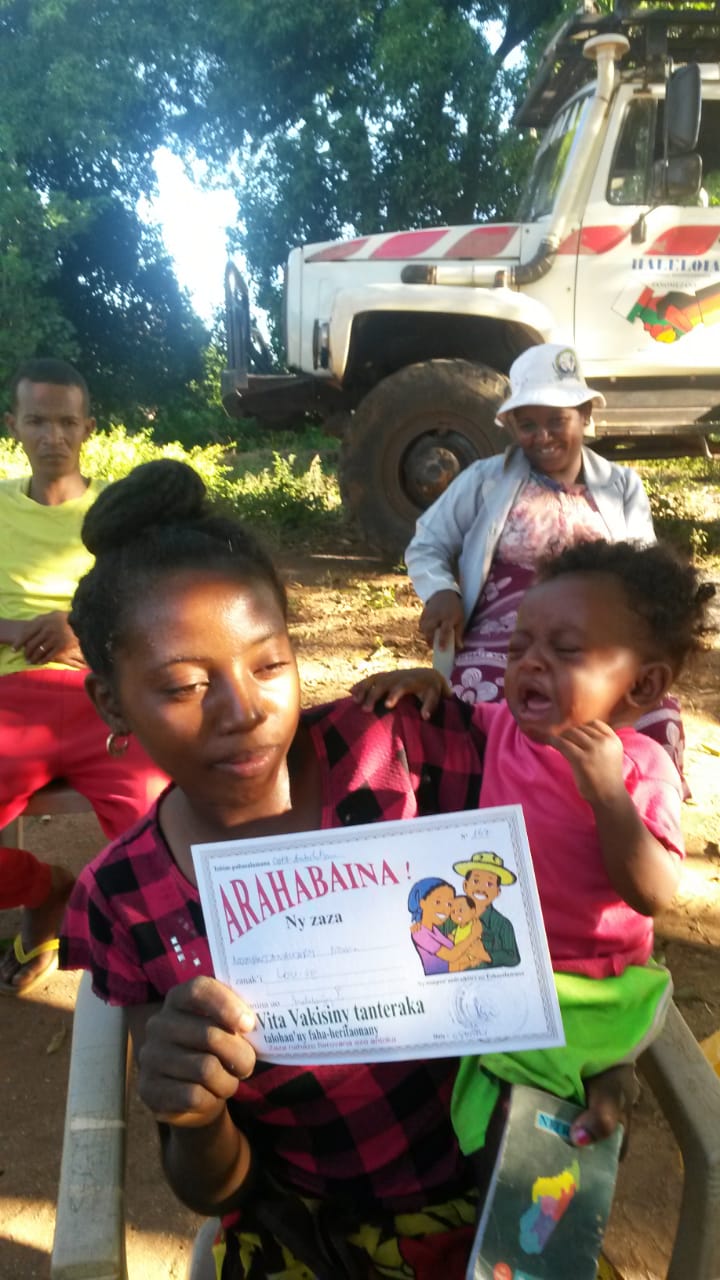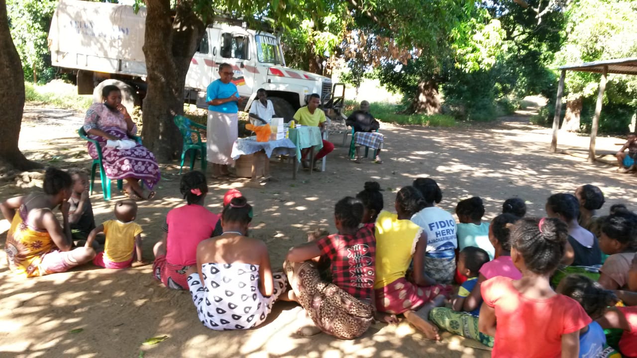 Auch die Gesundheits-Aufklärung ist sehr wichtig: seit 2015 sagen wir den Dorfbewohnern bei jeder Gelegenheit und immer wieder, dass sie sofort wenn jemand Fieber bekommt, nach Ambohitsara kommen sollen. Oder die Mitarbeiter des mobilen Teams, so es gerade in ihrem Dorf ist, ansprechen.