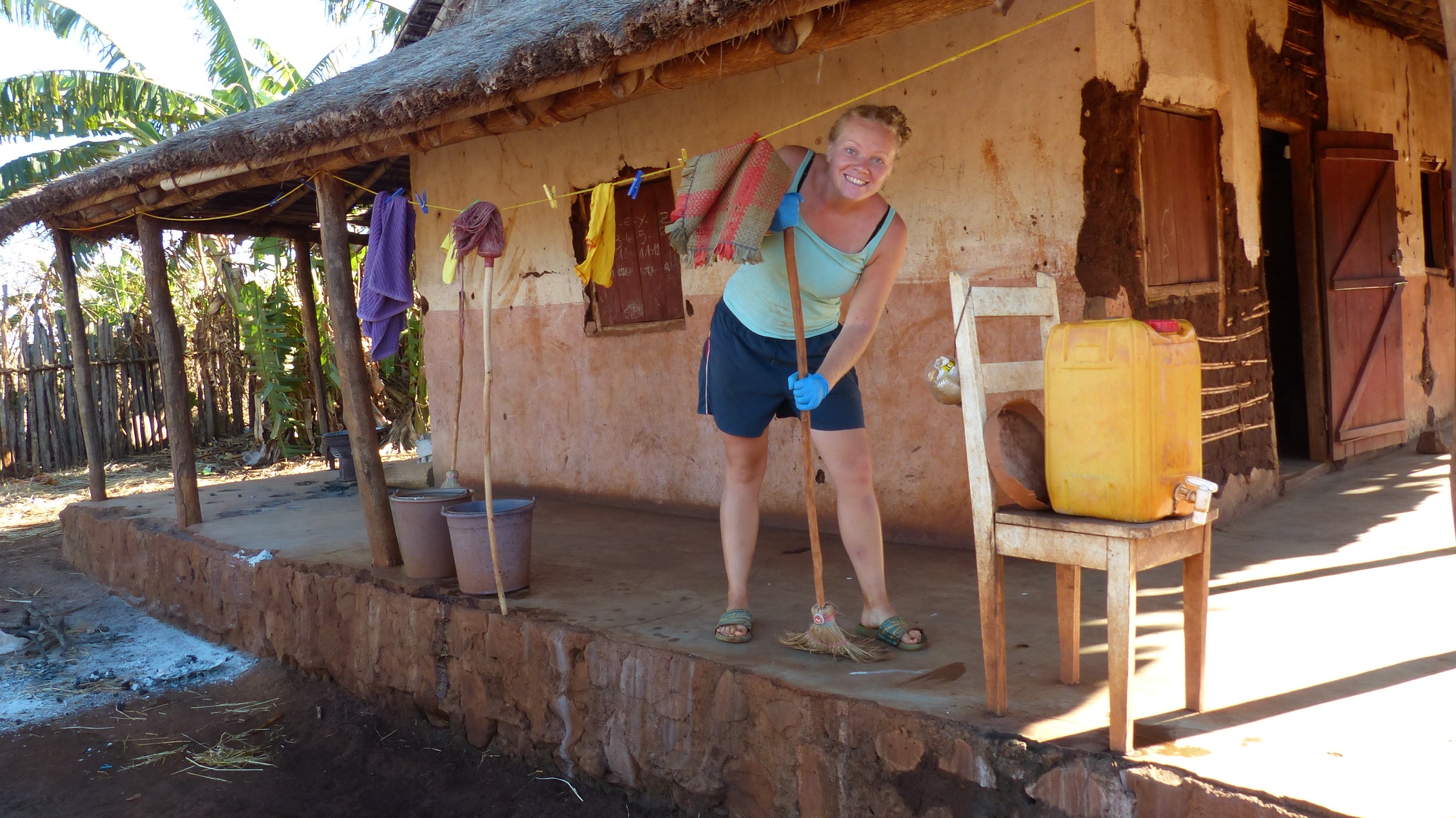 Die Veranda vorne war das Wartezimmer. Während der Epidemie 2015 wurde dort auch behandelt, bzw. es war ein „Patientenzimmer“. Die Veranda auf der Rückseite der Krankenstation war provisorisch noch zu einem Bettenzimmer ausgebaut worden.