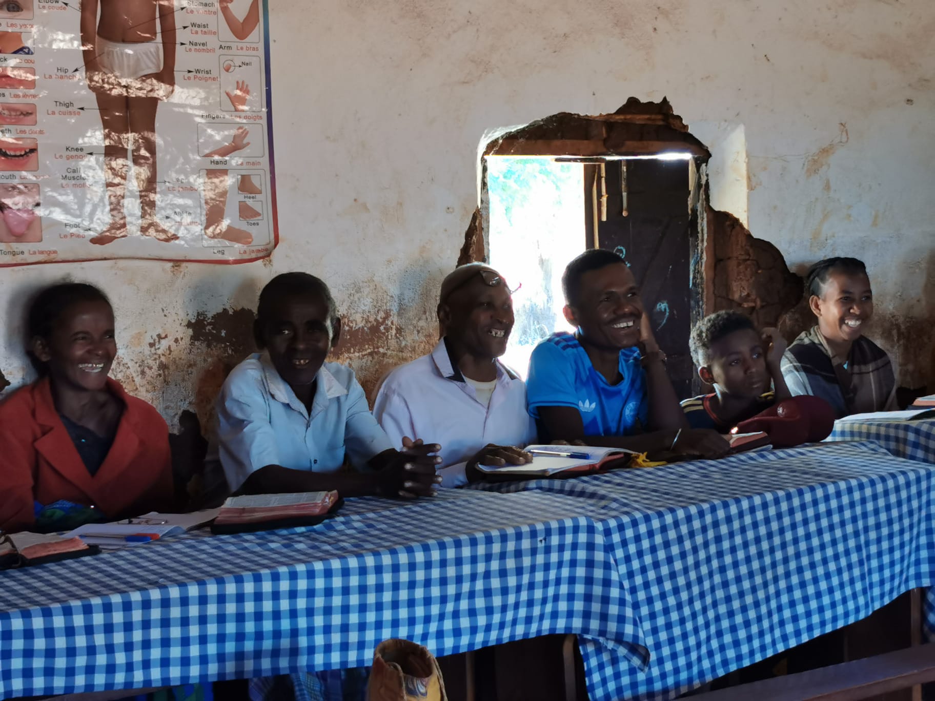Damit die neuen Gemeinden geistlich gut versorgt werden, brauchen wir natürlich Gemeindeleiter. Nachdem es während der Regenzeit nicht gut funktioniert hat, als wir die neu gegründeten Gemeinden den Kirchen in der Umgebung übergeben hatten, gehen wir jetzt einen anderen Weg. Nach der Evangelisation übernehmen erst mal unsere Evangelisten die Leitung dieser neuen Gemeinden, bis die jungen Christen ihre Jüngerschaft-Schule beendet haben. Danach bieten wir einigen an, am sog. „Timotheus-Programm“ teilzunehmen. Es handelt sich um eine Ausbildungsprogramm zum Gemeindeleiter. Justine und die Evangelisten führen das durch. Sie treffen sich regelmäßig in Ambohitsara. Irgendwann, wenn sie soweit sind, werden sie dann als Gemeindeleiter in ihren Dörfern eingesetzt und lösen unsere Evangelisten ab.