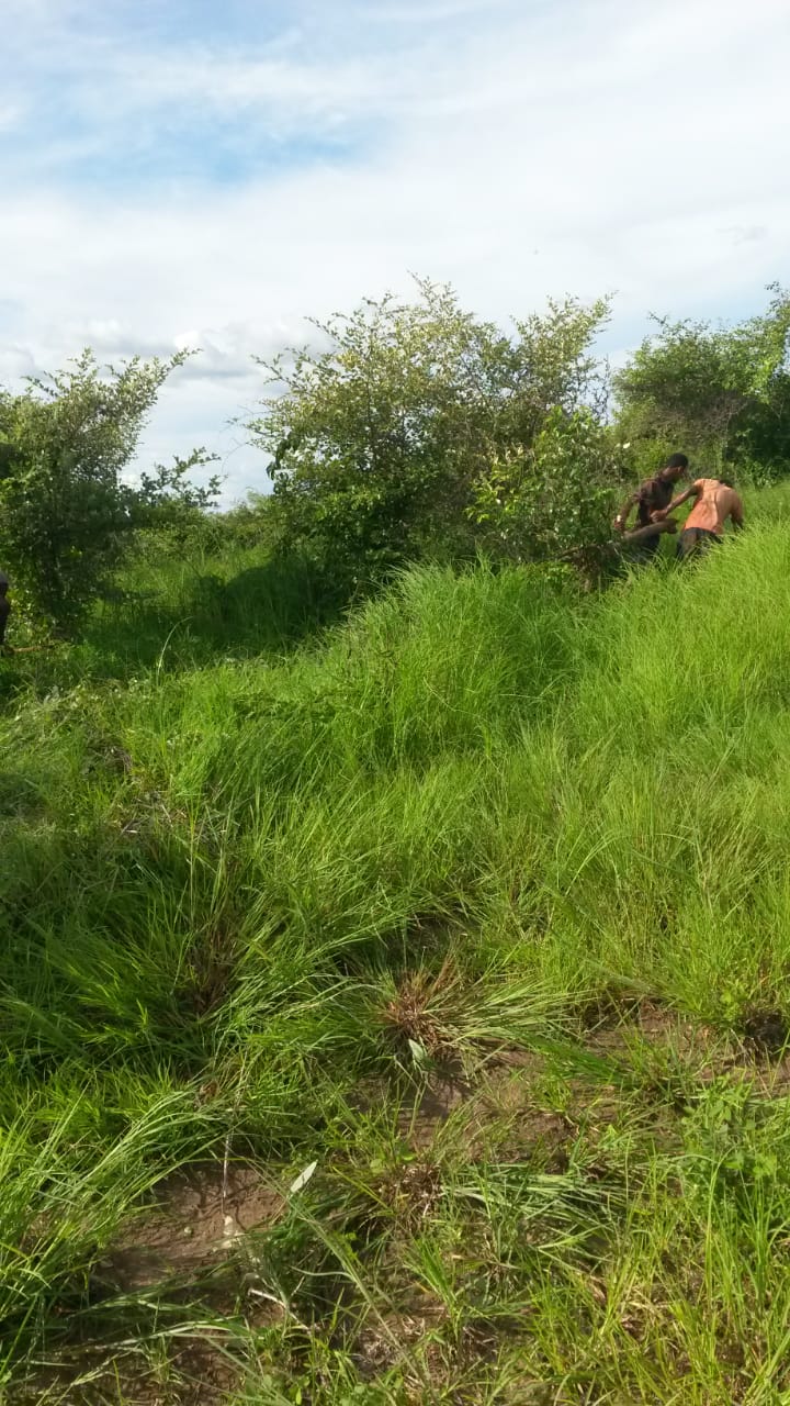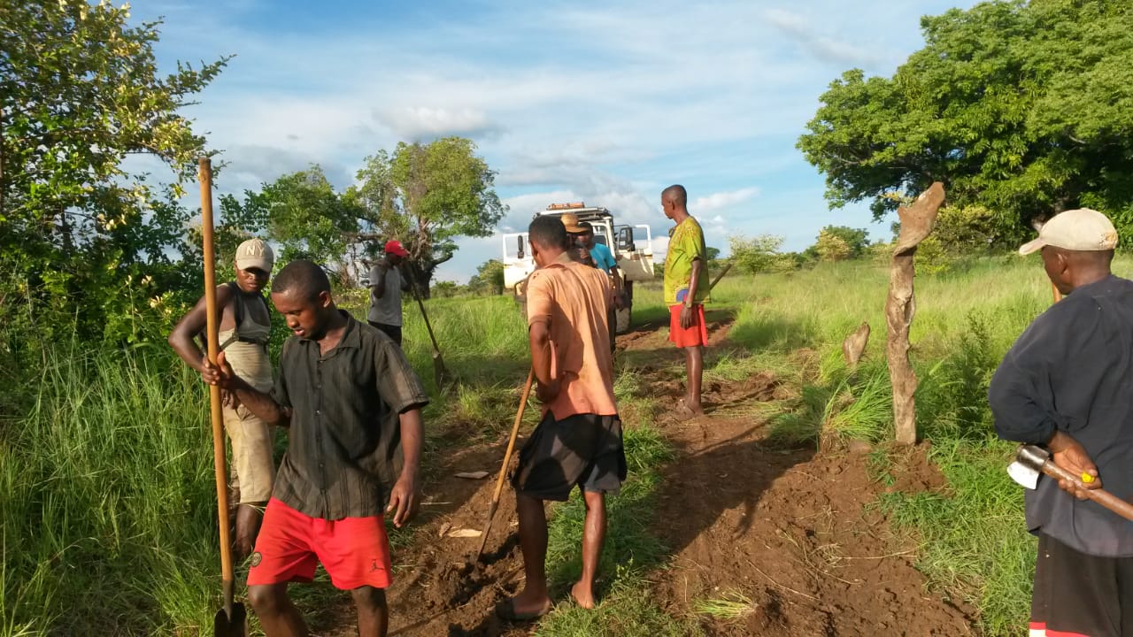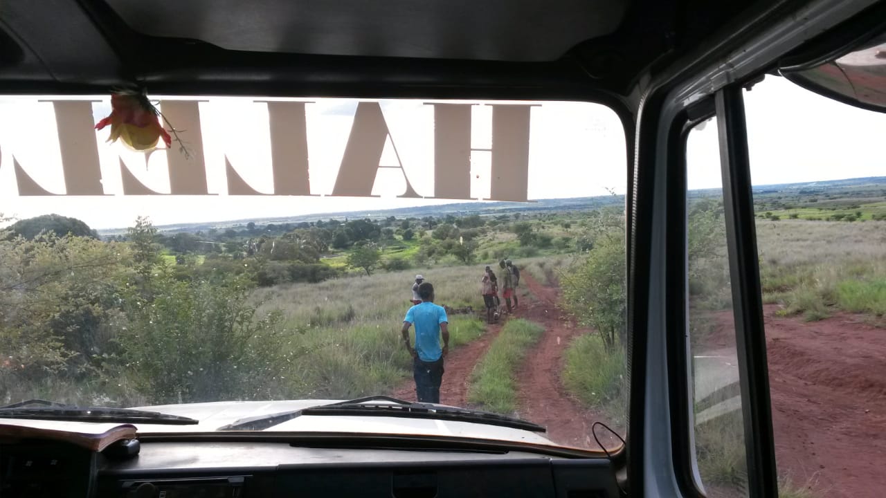 Trotz der schlechten Pisten kommen die Leute zahlreich. Sie müssen sowieso laufen. Aber auch das Missionszentrum ist mit dem SADKO unterwegs zu den Leuten in den Dörfern. Sogar wenn wir vorher die Pisten erst einmal notdürftig reparieren müssen. Hier z.B. wollten unsere Leute zum Dorf Belambo fahren, um dort nach dem Rechten zu sehen. Aber auf dem Weg mussten sie dann Holz schneiden, um es auf die Piste zu legen, weil ansonsten kein Durchkommen war.