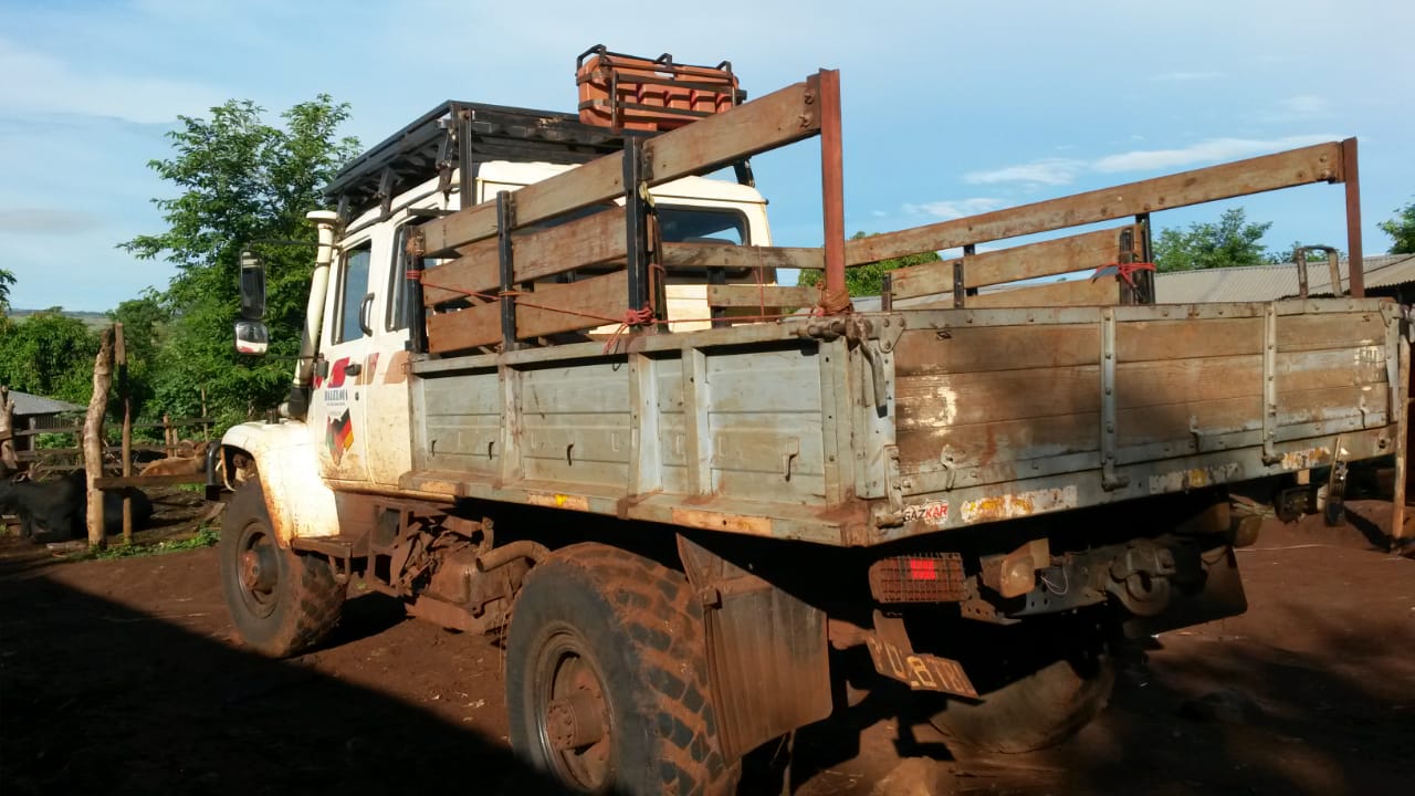Gerade jetzt, in der Regenzeit, ist unser SADKO von unschätzbarem Wert. Inzwischen ist er ca. 3 Jahre im Dauereinsatz unter sehr schwierigen Randbedingungen (s. oben). Deswegen braucht er jetzt eine neue Abdeckplane und neue Reifen.