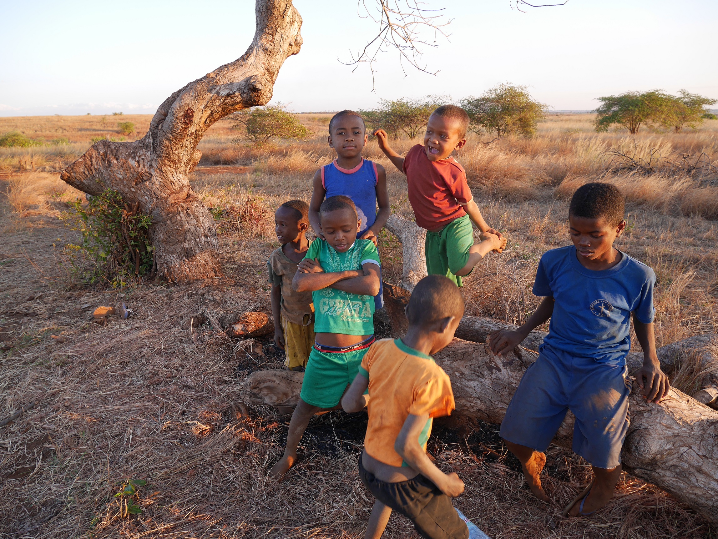 Danach verbringt das Kind den Tag draußen, spielend, rennend. Die Jungs gehen zusammen in den Wald und jagen kleine Tiere, die sie dann auch gleich über einem Feuer braten und essen. Die Mädchen spielen anstatt mit Babypuppen wie bei uns, mit ihren kleinen Geschwistern….