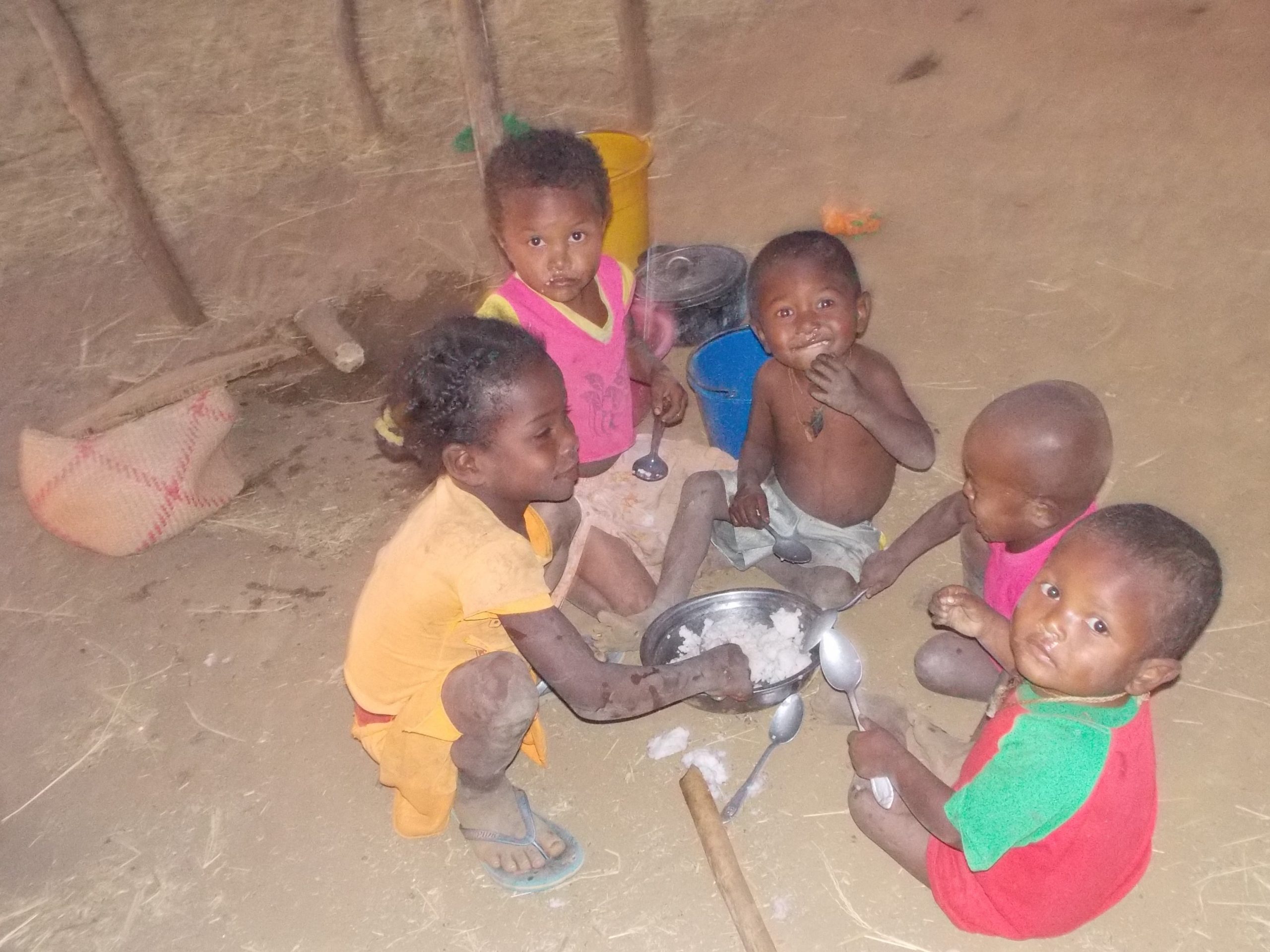 Die Menschen in Madagaskar – vor allem auf dem Land – haben viele Kinder. Normalerweise könnten sie sie auch alle gut ernähren, wenn nicht die Knechtschaft des Ahnenkultes ihnen ein strenges Regelkorsett auferlegen würde. So ist es z.B. an ca. 3 Tagen (je nach Region vielleicht etwas weniger) verboten, auf den Feldern zu arbeiten. Oder die Felder zu vergrößern, wenn mehr Kinder ernährt werden sollen. Oder bestimmte Dinge dürfen nicht gegessen werden, auch wenn sie im Überfluss vorhanden sind. Und und und….