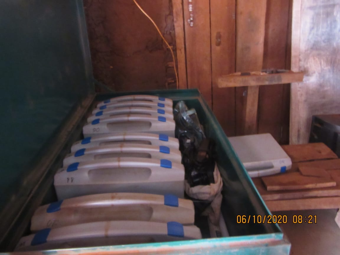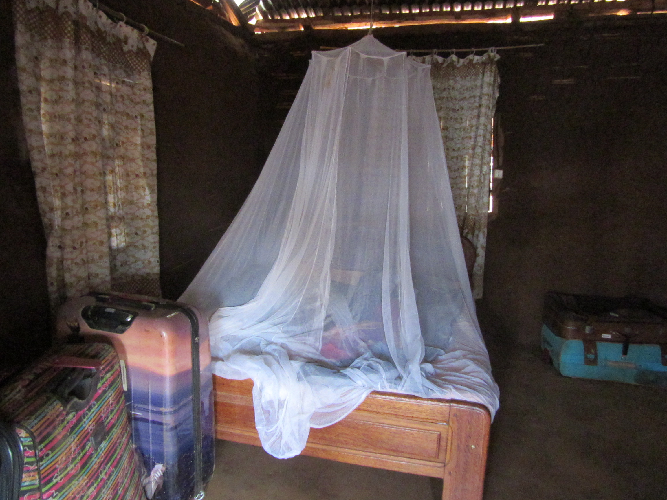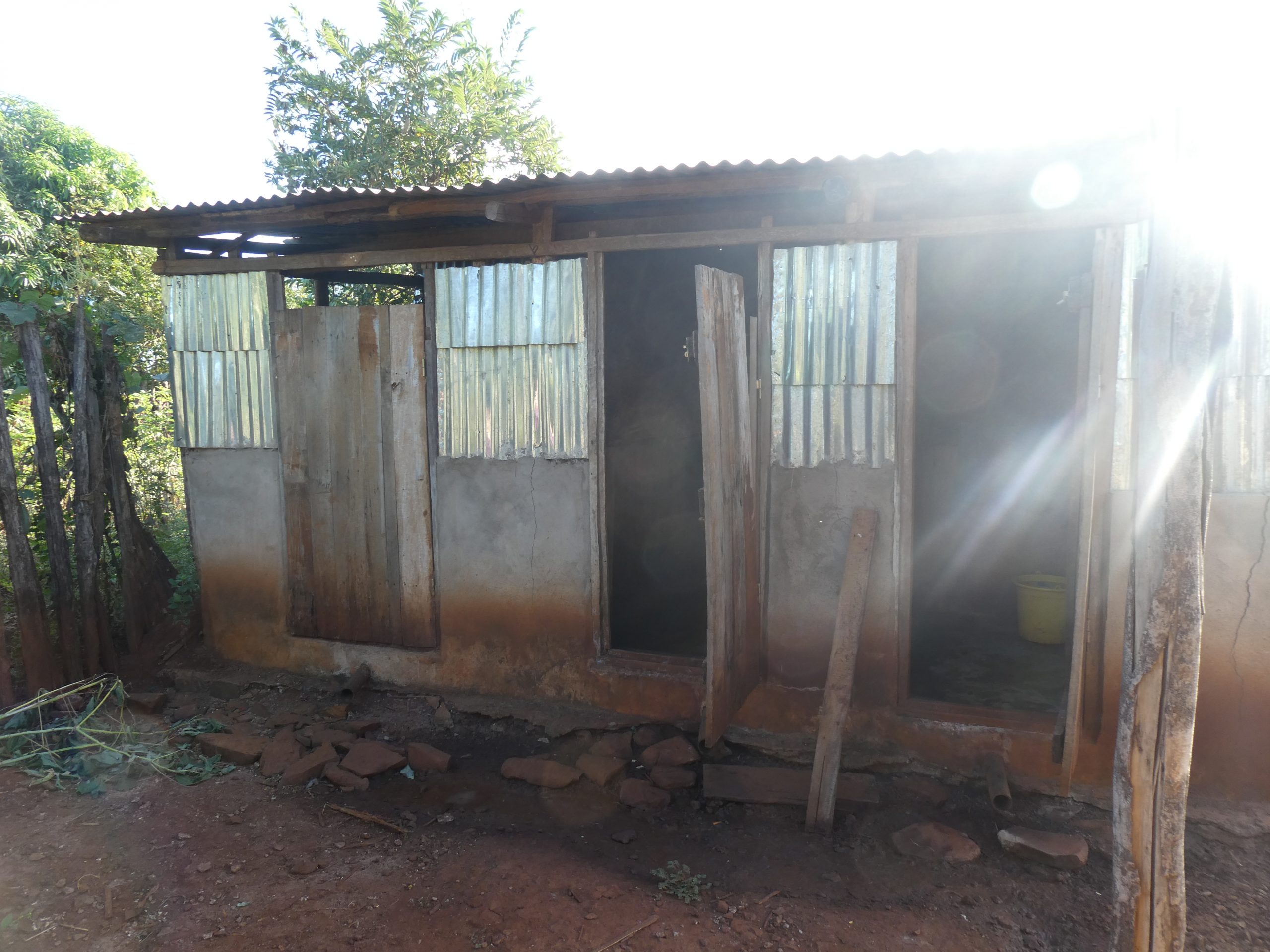 In der Schule ist nachts niemand, im Gegensatz zum Basiscamp. Es kann in unseren einfacheren Gebäuden leicht eingebrochen werden. Der Dieb braucht nur die dünne Zementschicht an der Erdwand mit einem Stock zu entfernen. Ein paar mal draufhauen reicht schon. Dann muss er nur eine Schüssel Wasser nehmen und die Erde an der Stelle (an der Tür, beim Riegel) wegwaschen. Und schon kann er seine Hand reinstecken, die Tür von außen öffnen und er ist drin!
