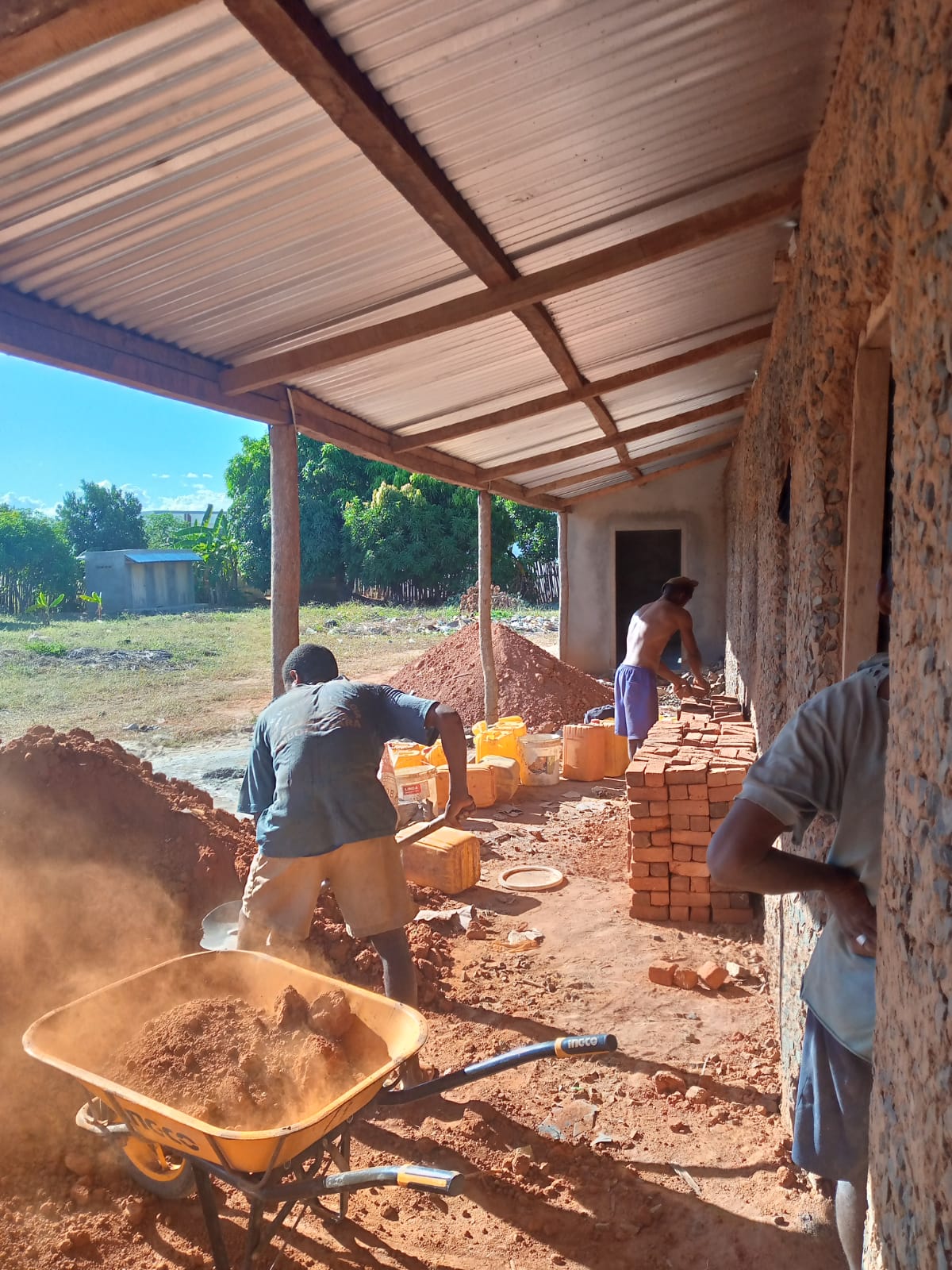 Eine andere, sehr erfreuliche Entwicklung: Das neue Gästehaus in Port-Berger ist fast fertig. Wir hatten ja lange Zeit ein Gebäude gemietet, wurden aber von dem Eigentümer gekündigt. Aber da wir immer noch das Land der früheren Tierhaltung haben, konnten wir dort anfangen, ein neues Gästehaus zu bauen. Es gibt dort Schlafplätze für 50 Leute, eine Küche, Geschirr und alles was man sonst so braucht. Die Lerncamps finden dort statt und unsere Schüler werden auch da untergebracht, wenn sie zu den Nationalprüfungen und zu den Sportprüfungen (die 13.Klassen) nach Port-Berger gehen müssen. Auch alle Leute, die etwas mit dem Missionszentrum zu tun haben (Gäste, Mitarbeiter) kommen erst mal dort an. Außerdem überlegen wir uns, ob wir nicht ein Evangelisationszentrum und einen Alphabetisierungsstützpunkt dort aufbauen – in Zusammenarbeit mit der Kirche in Port-Berger. Auch in Port-Berger gibt es immer noch Analphabeten und Unbekehrte! Dieses Gebäude ist schon voll finanziert, durch eine Kinderstiftung aus Deutschland.