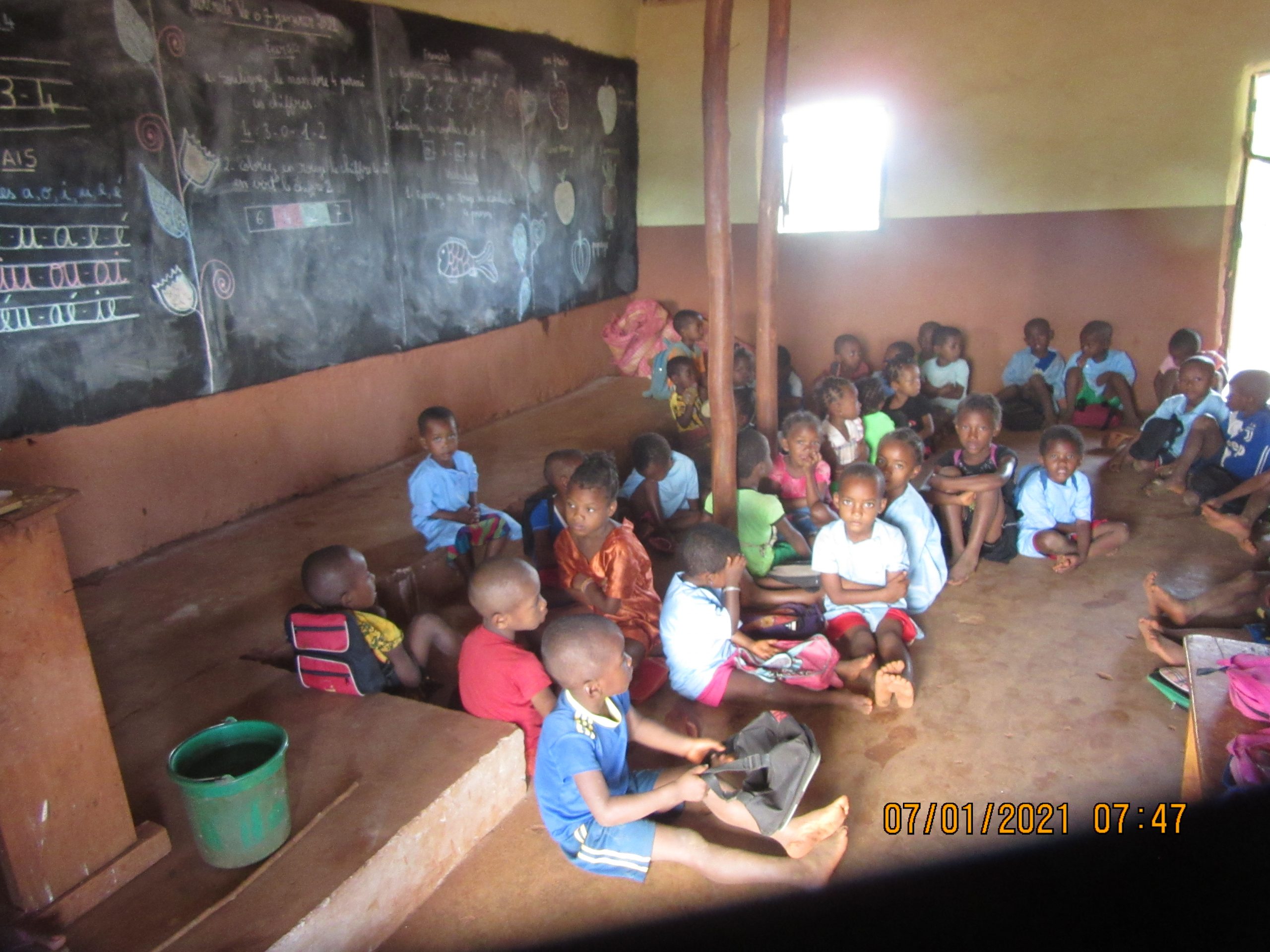 Wir haben nicht mehr genug Platz in der Schule. Es wird sehr eng in den unteren Klassen. Im Kindergarten, in der Vorschule und in der 1. Klasse herrscht extreme Raumnot. Viele Kinder sitzen auf dem Boden. In manchen Klassen gibt es 70 Schüler oder mehr.