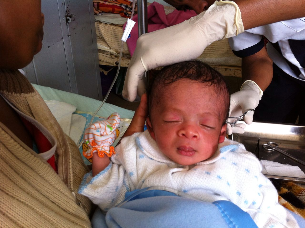 Und hier hat Gott ein viertes Wunder getan. Nach der Operation ist er plötzlich ganz kalt geworden. Wir haben mit Dr. Roseline telefoniert und sie war ziemlich verzweifelt. „Das Kind stirbt“, sagte sie. Wieder haben wir gebetet. Und dann, plötzlich, nach ca. einer Stunde ist sein kleiner Körper wieder warm geworden. Er hat sich sehr schnell erholt…