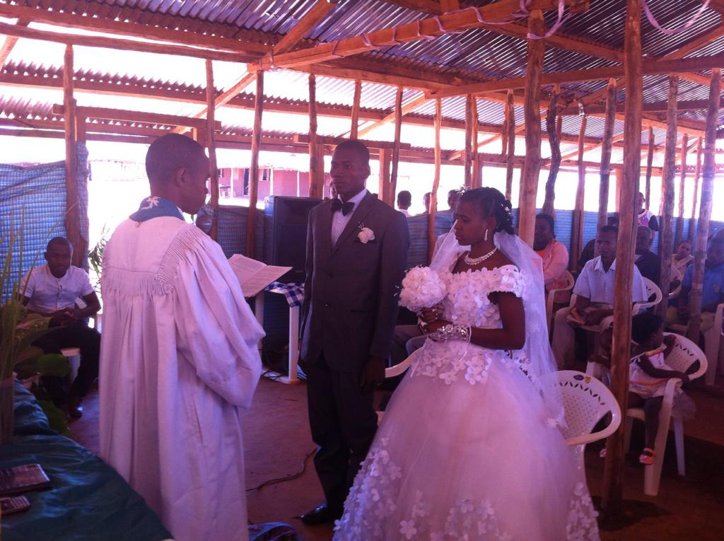 Das sechste Wunder: Ruffins Mutter, Ruffine, und deren Schwester haben sich bekehrt. Sie wurden im Sommer in Ambohitsara getauft. Ihre Lebensumstände haben sich radikal geändert. Lezara hat früher als „Hausmeister“ in der Missionsschule gearbeitet und Ruffine als Köchin bzw. später als Putzfrau. Lezara hat in Ambohitsara an einem speziellen Schulprogramm noch sein Abitur nachgeholt. Und auch bestanden. Er hatte eine Berufung als Pastor bekommen und ist mit seiner Familie nach Marovay an das Bibelseminar gegangen. Auch Ruffine macht dort die Ausbildung, die alle Pastorenfrauen machen. Er wird der erste Pastor aus dem Bongolava-Gebirge sein. Halleluja. Auch seine Mutter war durch die Freundlichkeit und die Hilfe der Christen so berührt, dass sie ihren Widerstand aufgegeben hat. Bei der Hochzeit von Lezara und Ruffine ist sie ganz stolz an seinem Arm gegangen. Lezara und Ruffine waren zwar schon länger verheiratet, aber nur „traditionell“ durch eine Dorfhochzeit, wie fast alle Leute dort. Im Rahmen einer Aktion des Missionszentrums haben sie auch kirchlich und standesamtlich heiraten können.