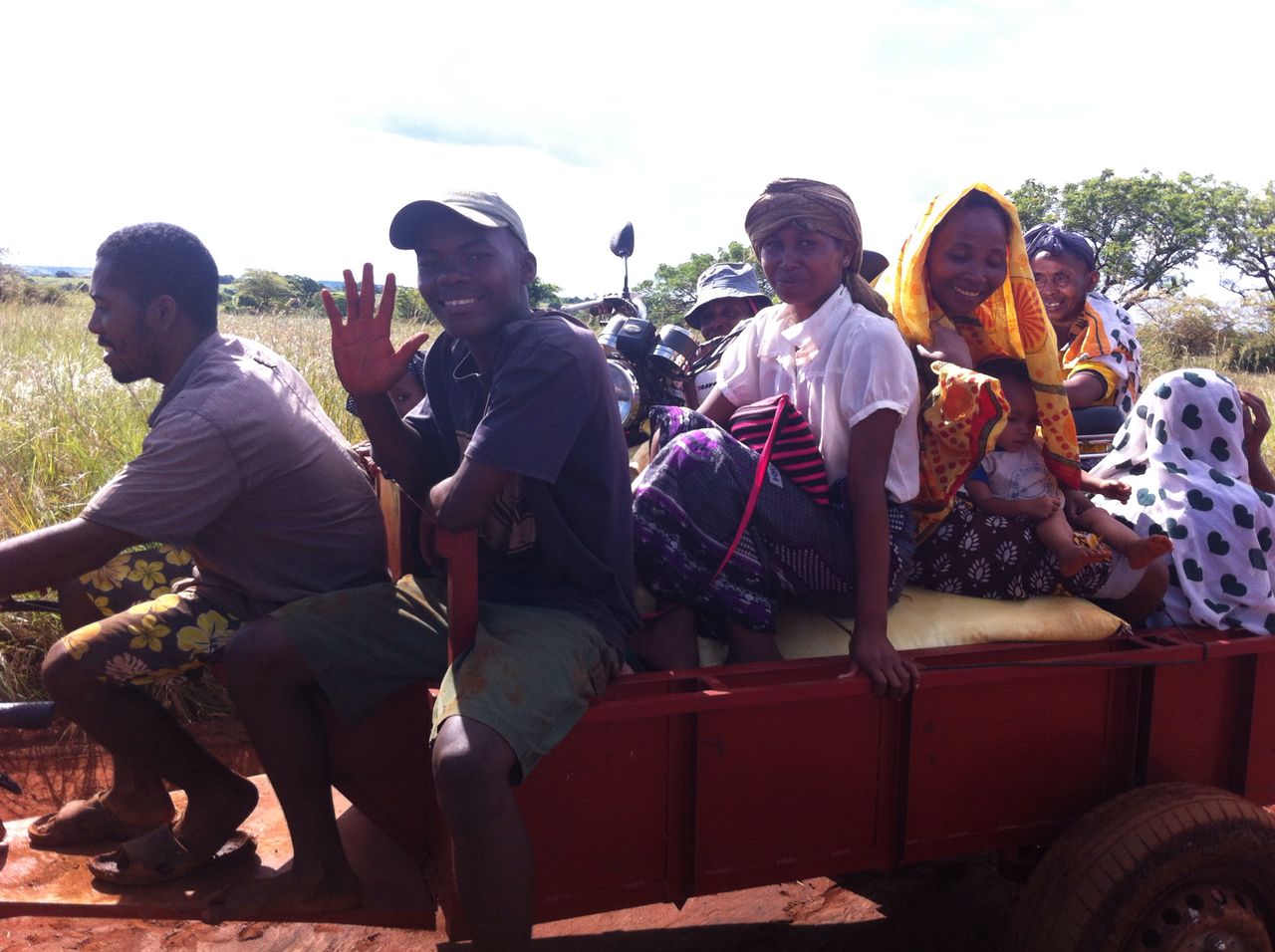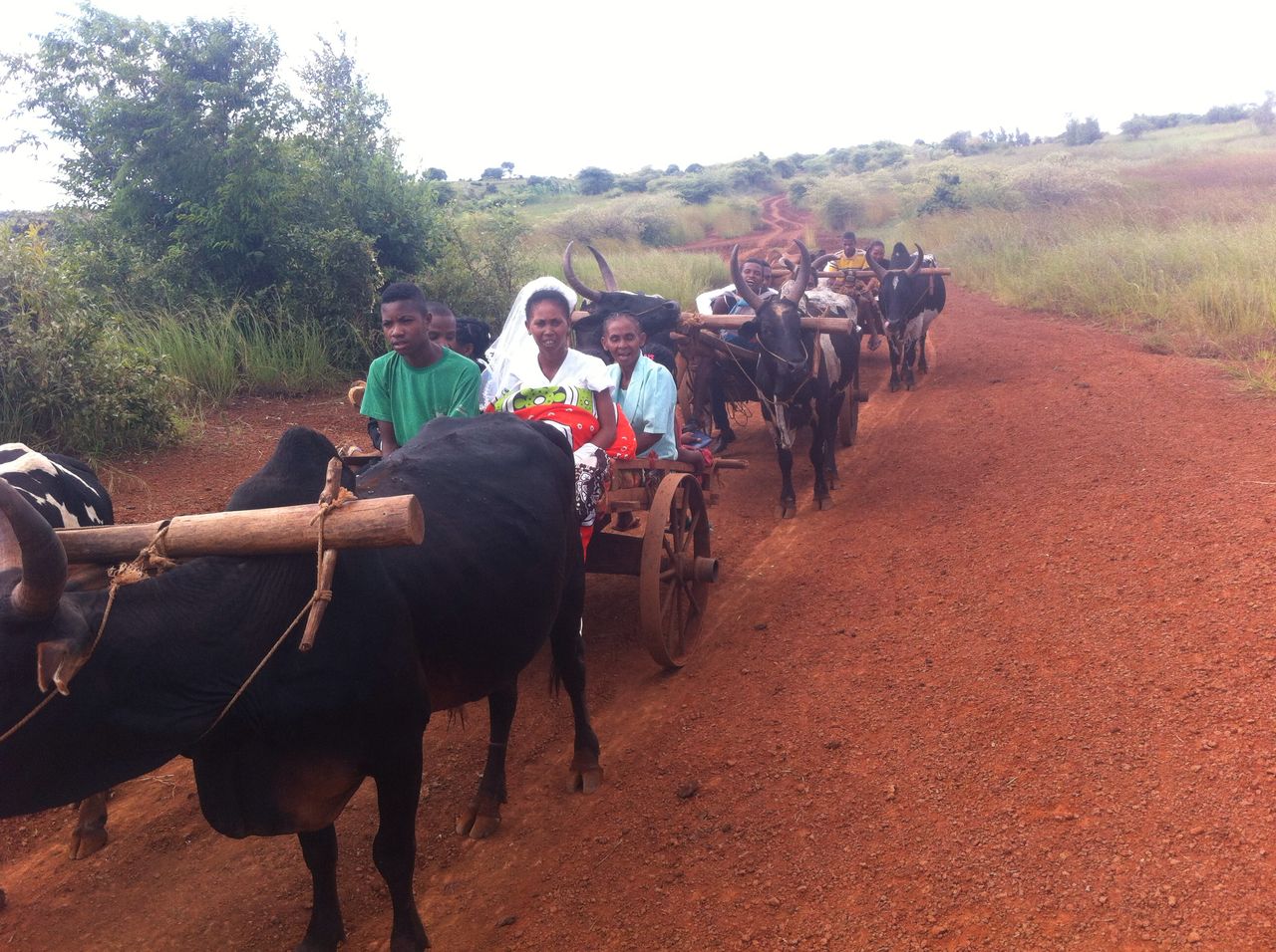 Anschließend sind sie mit einem Ochsenkarren-Korso nach Ambohitsara gefahren.
