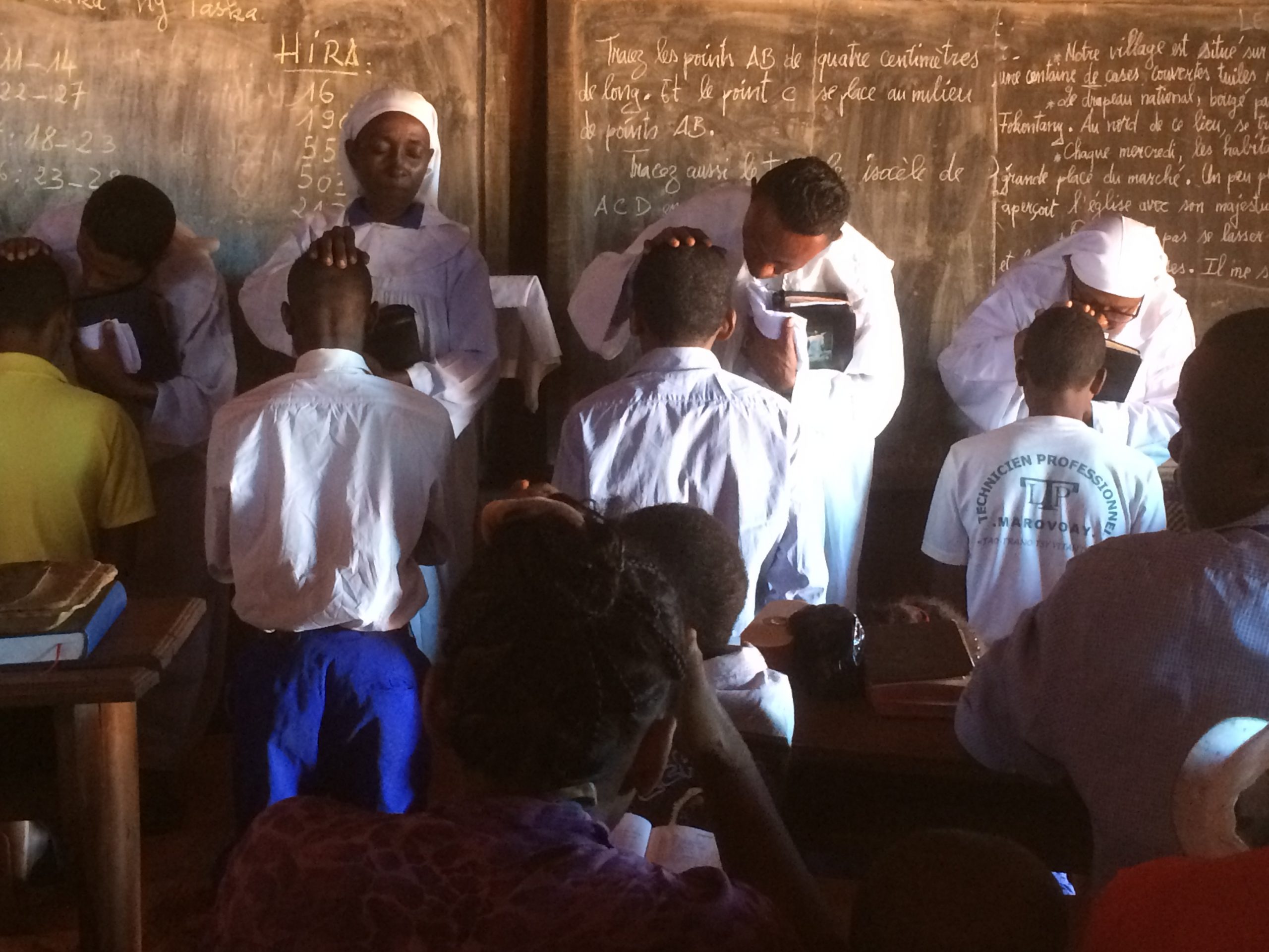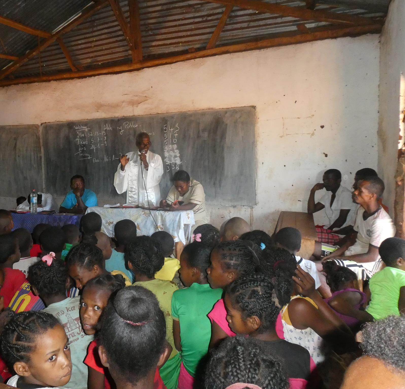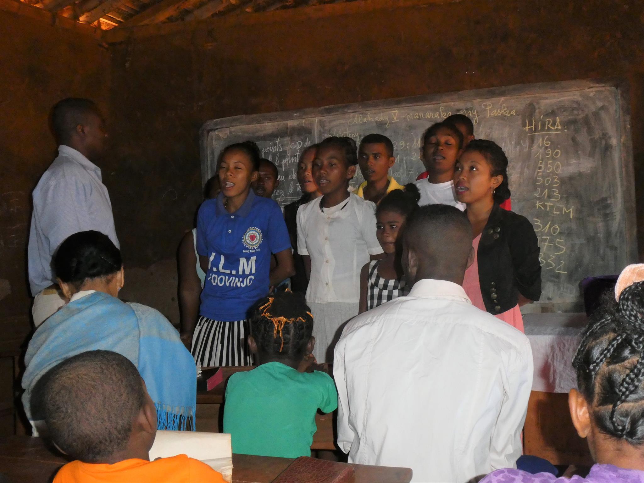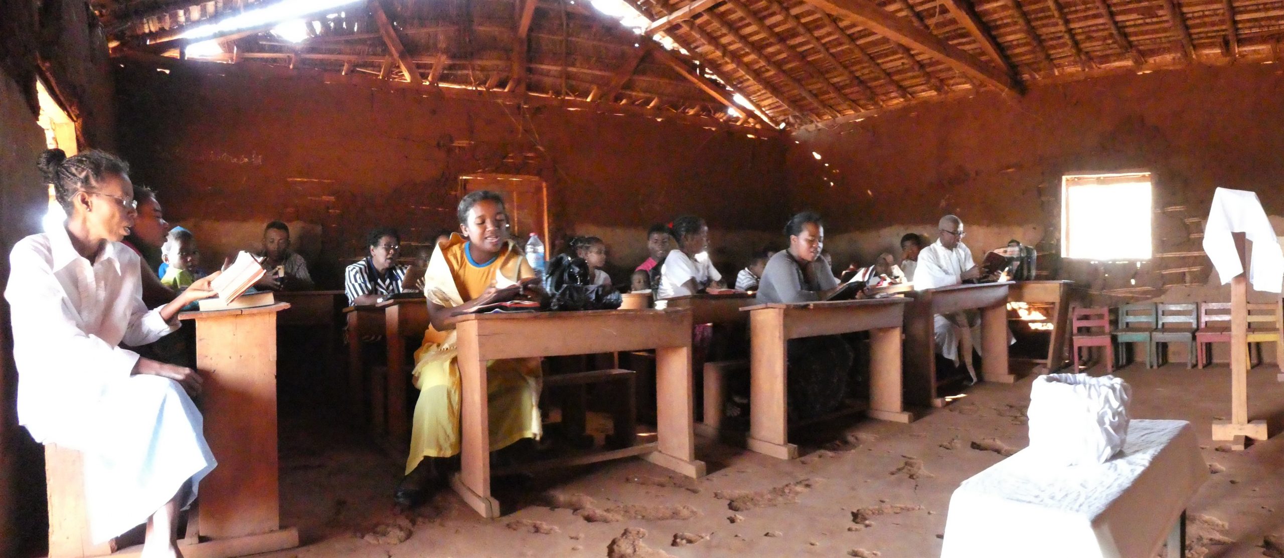 In Ambohitsara wird der erste Advent ohne Kerzen gefeiert. Wenn ich es mit „deutschen Augen“ betrachte, ist die Adventsfeier im Bongolava Gebirge ziemlich „ärmlich“. Meistens ist das Gebäude in traditioneller Bauweise mit Strohdach gebaut, in das es manchmal sogar reinregnet. Der Fußboden ist meist aus festgestampftem Lehm, es ist staubig und heiß – besonders jetzt, in der Adventszeit. Nicht unähnlich zu den Verhältnissen, in denen Jesus geboren und sein ganzes Leben hier auf der Erde gelebt hat.