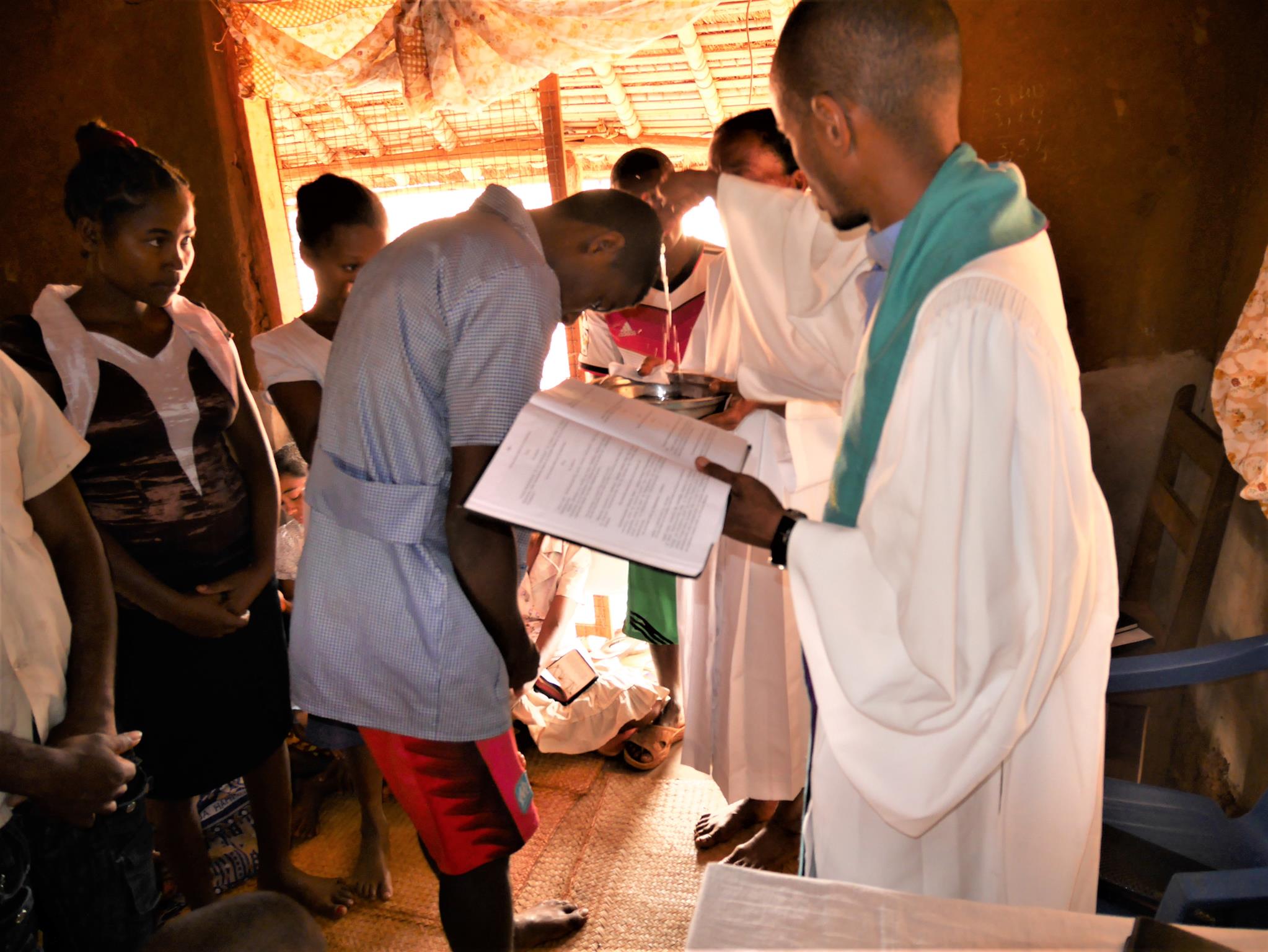 - Taufe in einem Dorf im Bongolava-Gebirge