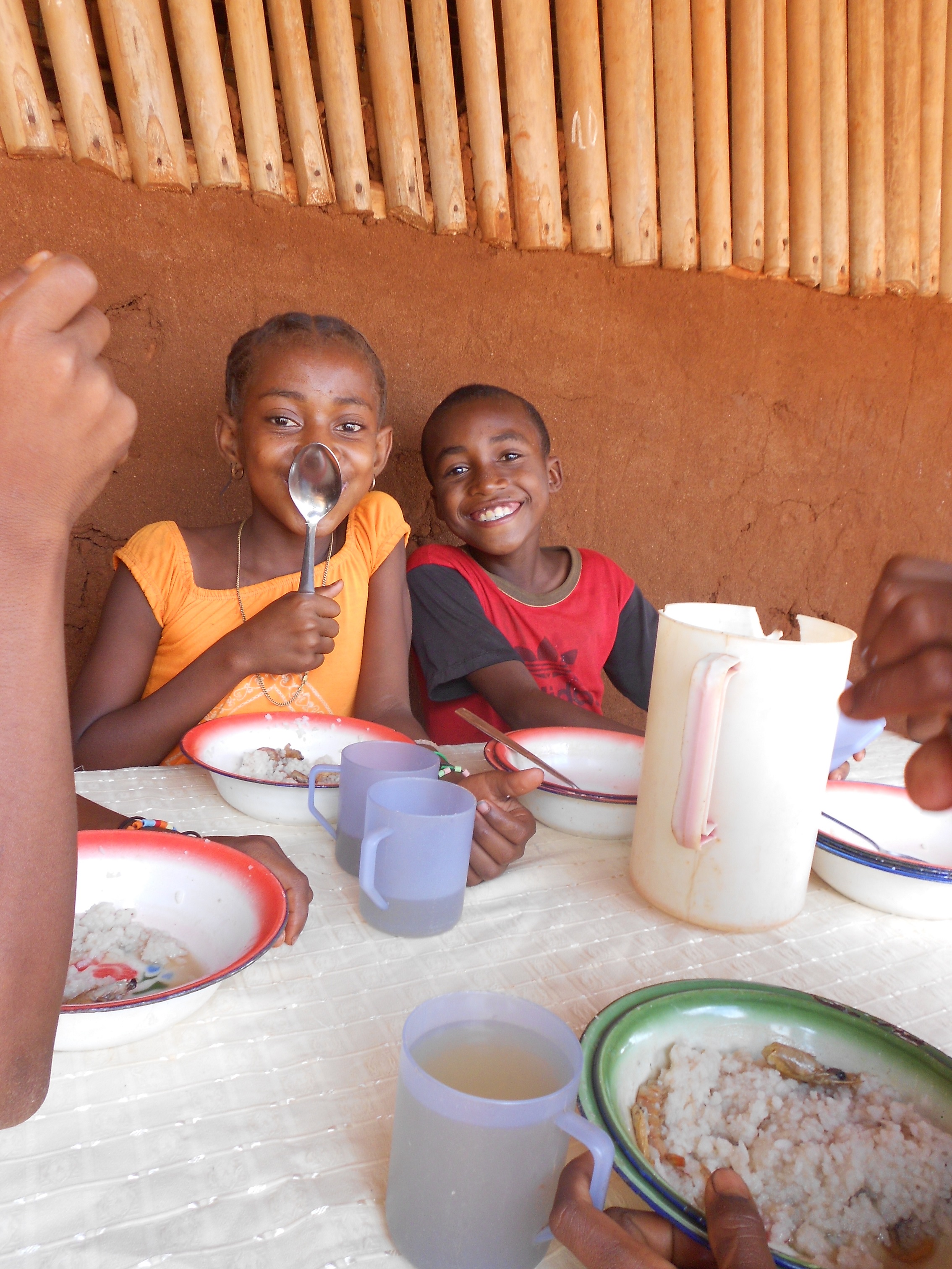 Jetzt (2016) hat jedes Kind – vom Kindergarten bis zum Abitur – Zugang zu altersgemäßer Bildung. Durch die Schulkantine kämpfen wir auch gegen die weit verbreitete Mangelernährung: jedes Kind bekommt in der Schulzeit jetzt mindestens 1 warme, ausgewogene Mahlzeit am Tag.