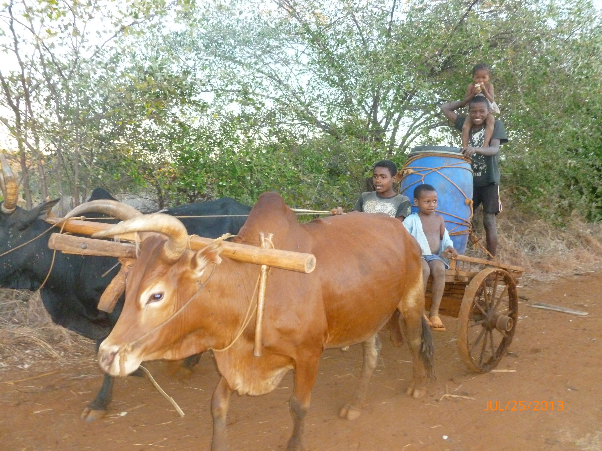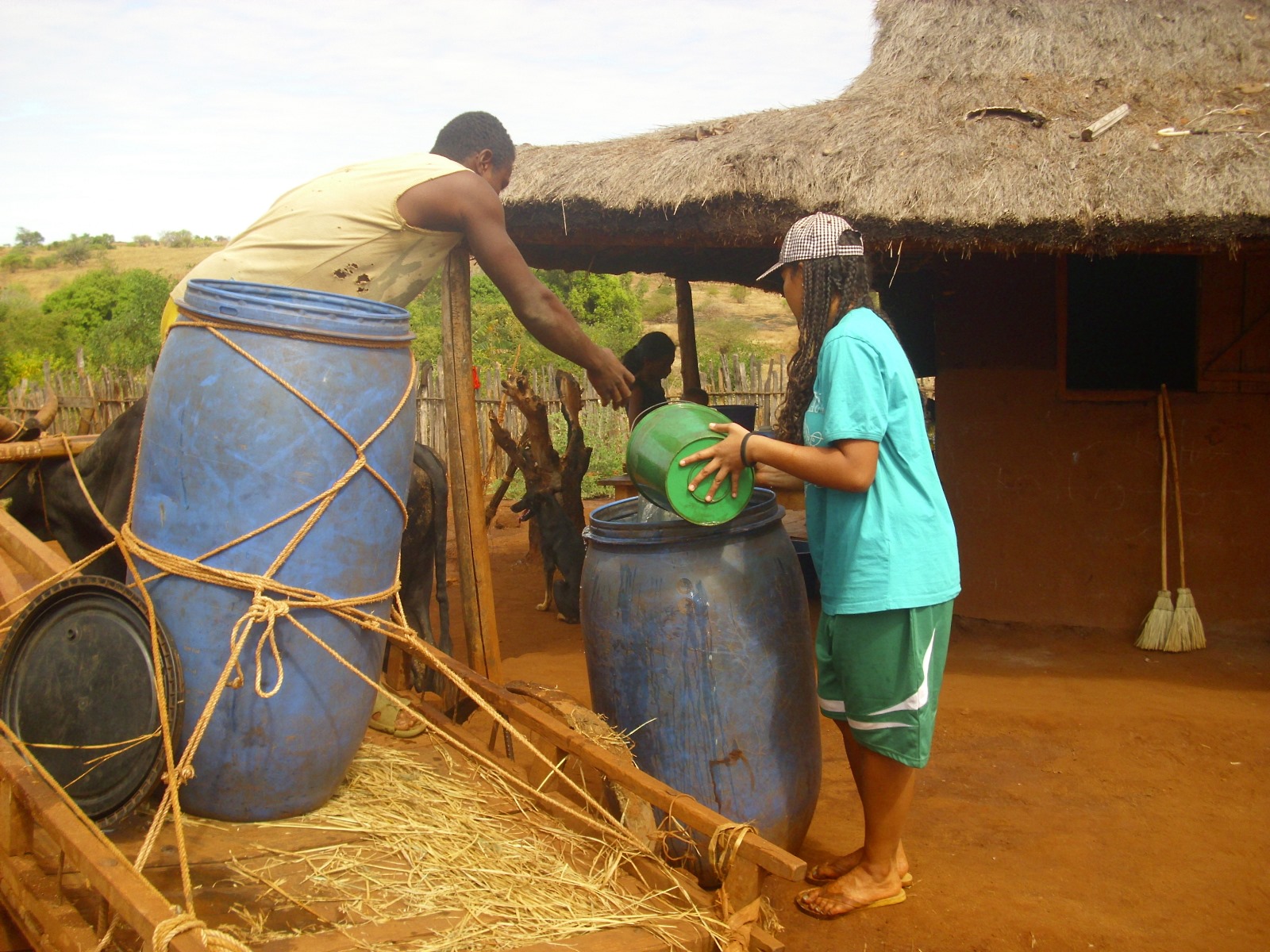 Wir vom Missionszentrum konnten unser Wasser mit Ochsenkarren in Tonnen holen.