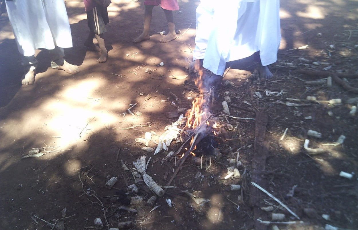 Er meint es sehr ernst und hat alle seine „Fetische und Zaubersachen“ öffentlich verbrannt. Damit hat er sich quasi von der ganzen Sippe „abgekoppelt“. Das ist ein mega-Meilenstein im Leben eines Christen dort und ein großes Zeichen für alle in der ganzen Gegend.