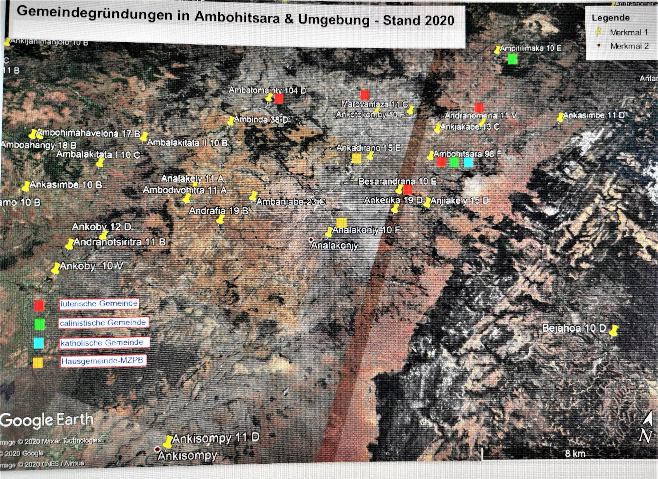 Es gibt inzwischen schon ca. 10 Gemeinden in der Umgebung von Ambohitsara. Vorher war da fast nichts. Ganz früher gab es kurzzeitlich einmal eine Gemeinde in Ambohitsara. Das war zu der Zeit, als meine Schwiegereltern noch dort Felder bearbeiteten. Sie wohnten aber nicht ständig in Ambohitsara. Damals hat sich meine Schwiegermutter vom Ahnenkult abgewandt und beide folgten seitdem Jesus Christus nach. Deswegen hatten sie eine Zeit lang einen Evangelisten (Antoine) bezahlt, der in Ambohitsara Gemeindearbeit machte. Mehr darüber siehe auch die Links unten.