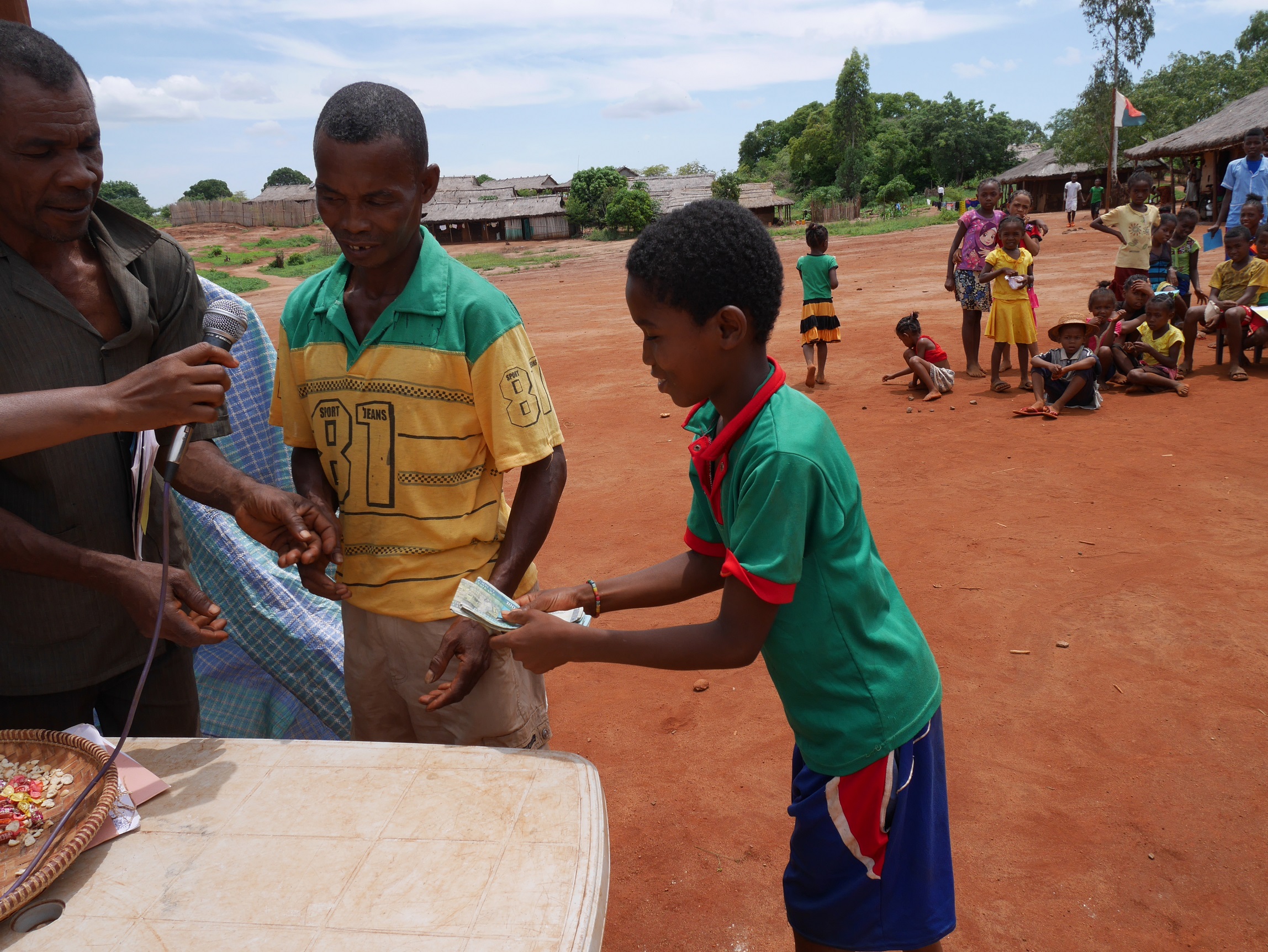 - Preisgeldverleihung: Pilavi, sein Vater und Eduardo (Dorfpräsident)