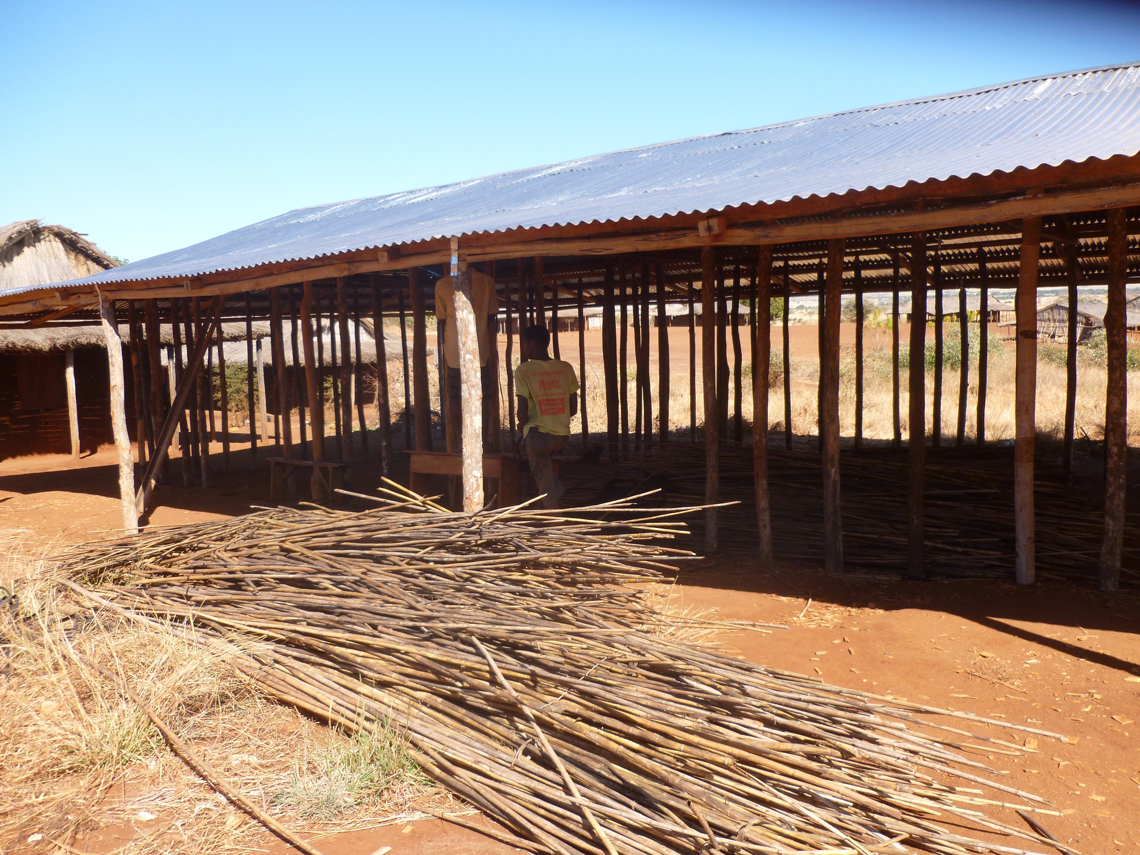 Da unsere Schulgebäude in einheimischer Bauweise gebaut wurden, halten sie maximal 5 Jahre. Jetzt, nach ca. 7 Jahren müssten sie dringend repariert oder neu gebaut werden…