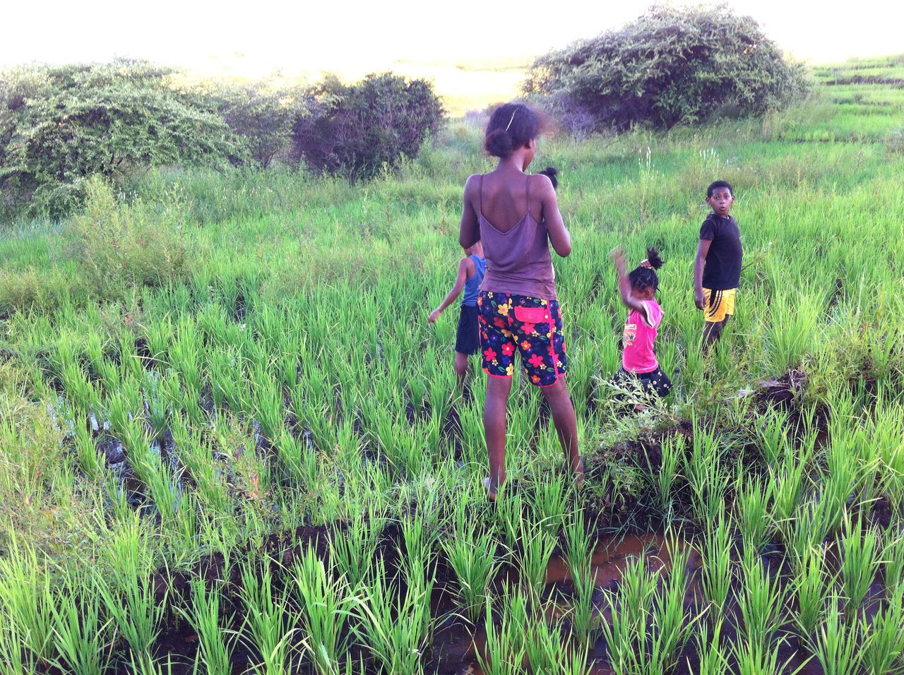 Außerdem lernen sie bei ihren Eltern, wie man Reis, Mais, Maniok, Gemüse, Erdnüsse, Süßkartoffeln u.a. anbaut.