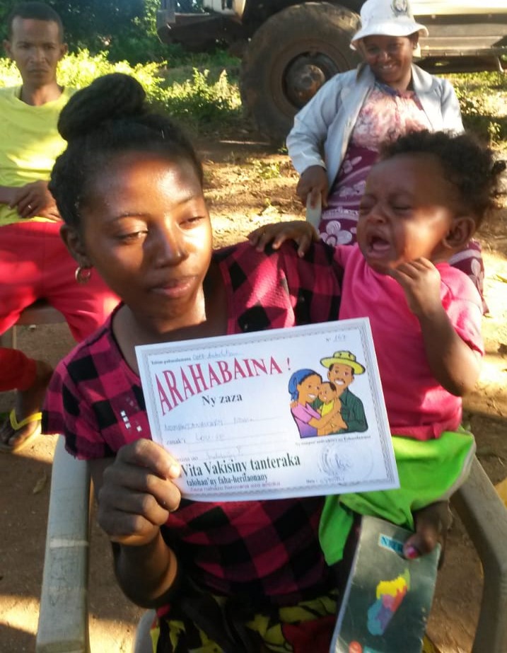 Die Bilder unten wurden vor kurzem bei einem Einsatz der mobilen Klinik in den Dörfern Analakonjy und Ambanjabe gemacht. Diese Dörfer liegen südwestlich von Ambohitsara. Man braucht (schätzungsweise) 4 bis 8 Stunden mit dem Ochsenkarren dorthin. Wegen der weiten Entfernung zur nächsten weiterführenden Schule endet die Schulbildung der dortigen Dorfschule meist nach der 3. oder 4. Klasse. Deswegen werden die Mädchen, um zum Unterhalt der Familie durch das Brautgeld beizutragen, früh verheiratet und bekommen dementsprechend früh Kinder.