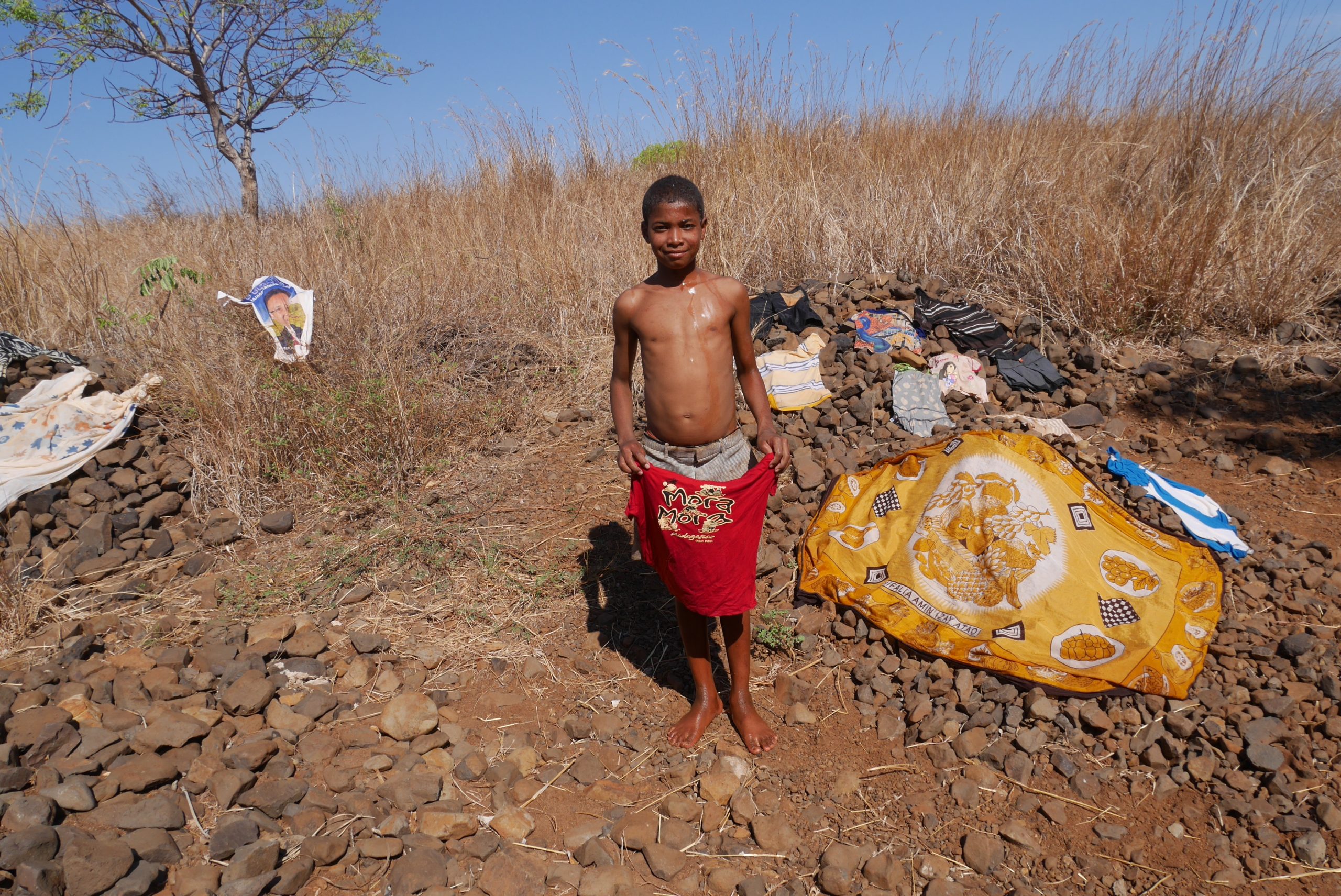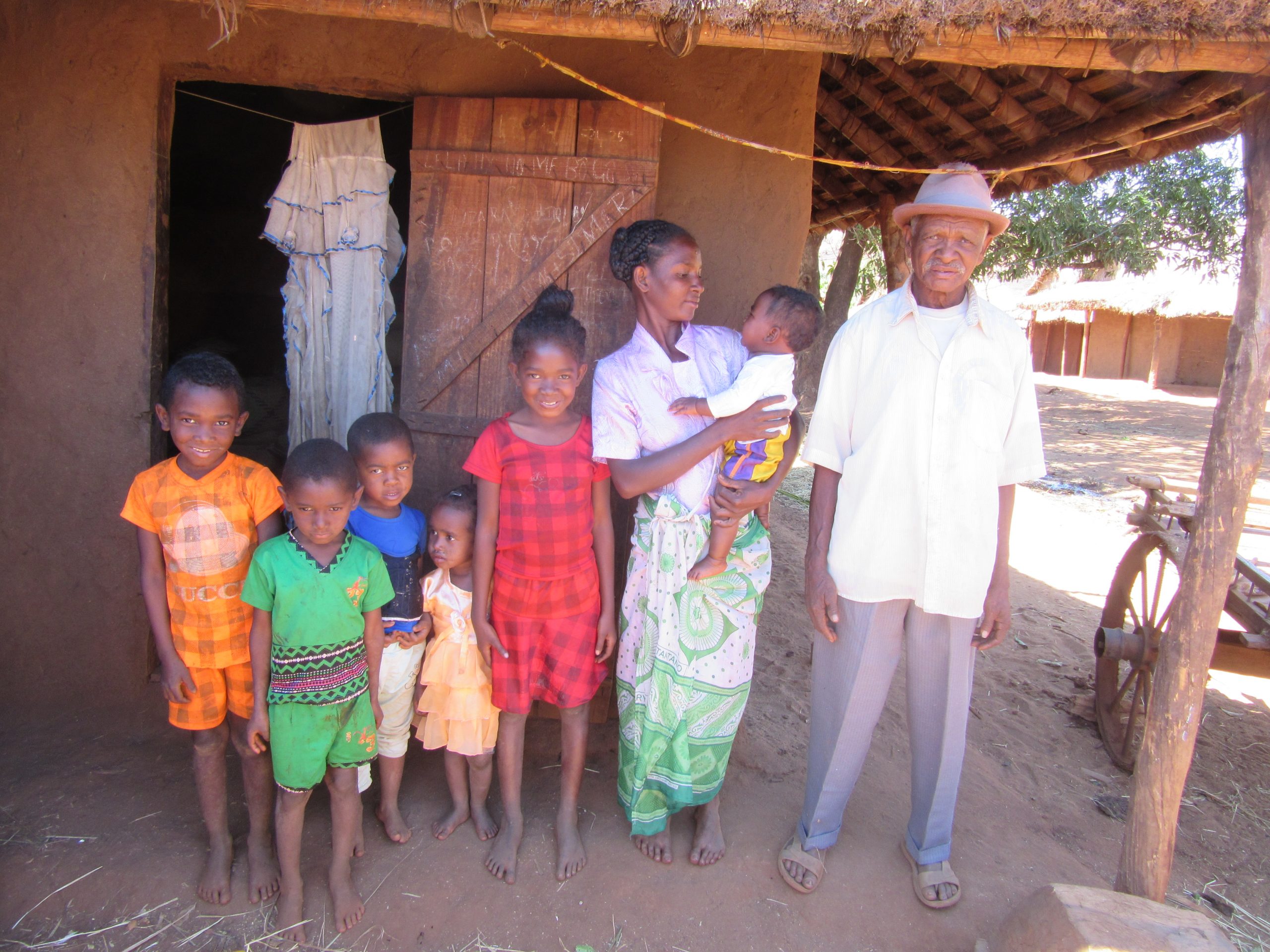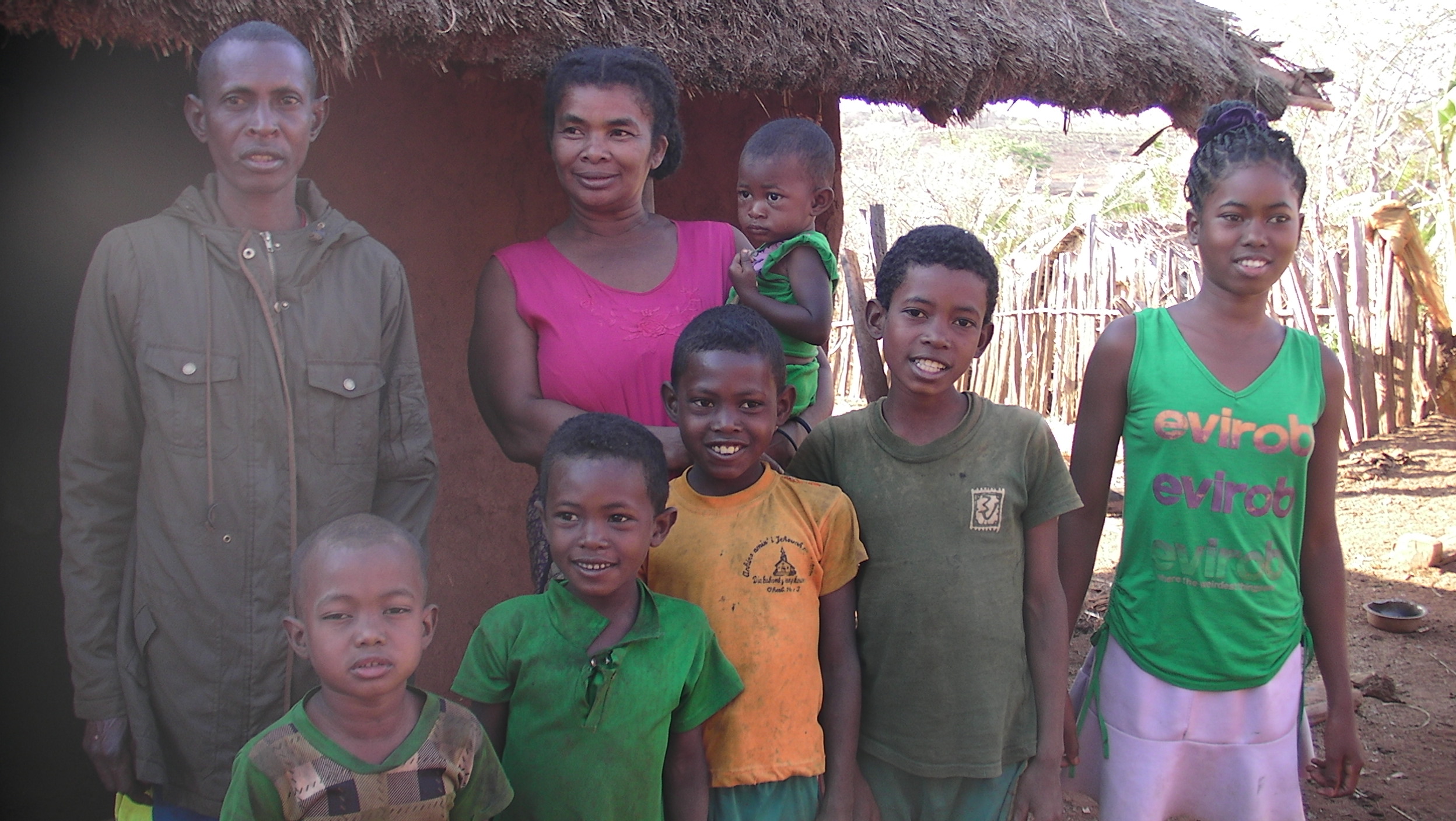 Familie X hat 8 Kinder. Sie wohnen in einer winzigen Hütte in einem der Dörfer auf dem Hochplateau des Bongolava-Gebirges.