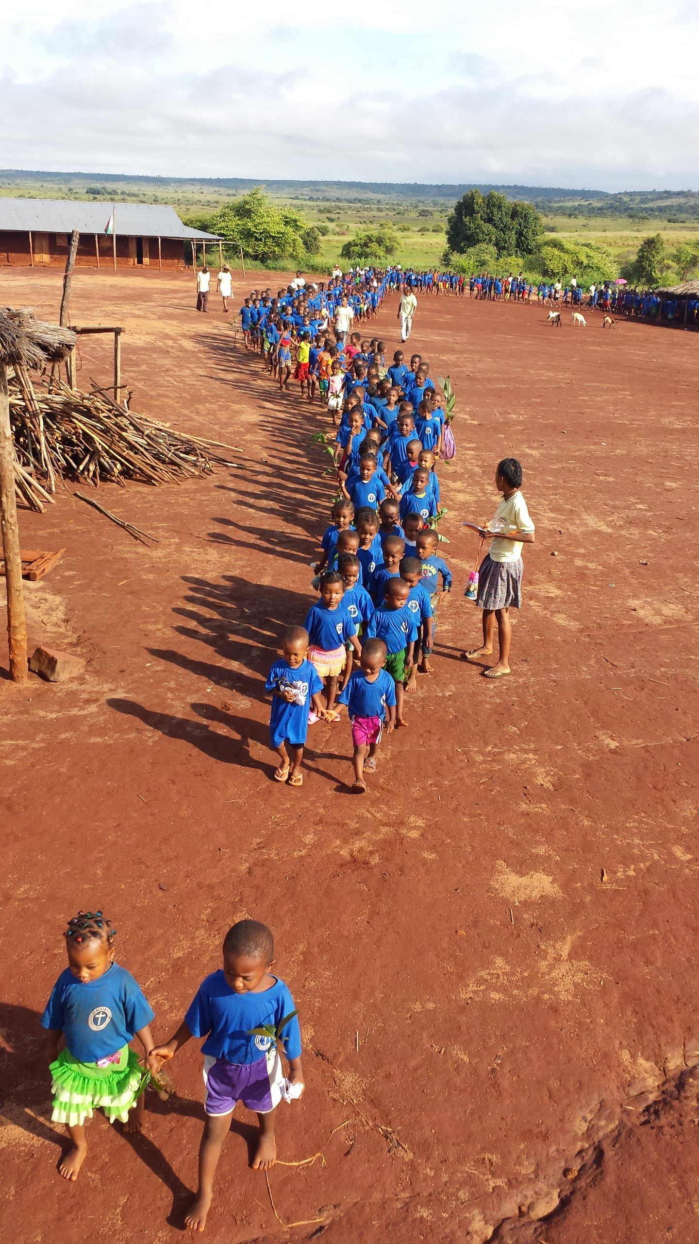 Irgendwann müssen sie dann doch zur Schule – auch in Madagaskar gibt es Schulpflicht – aber meistens ist das nur 1 kleiner Raum für alle Schüler des Dorfes. So war es auch vor der Zeit des Missionszentrums in Ambohitsara. Der Dorf-Lehrer unterrichtet alle Jahrgänge. Oft gibt es keine Schule, weil der Lehrer keine Zeit hat. Oder die Schüler ihm als „Schulgeld“ auf seinem Feld helfen. Was ja auch verständlich ist: der Lehrer bekommt kein Gehalt vom Staat und irgendwie muss er ja auch leben können…