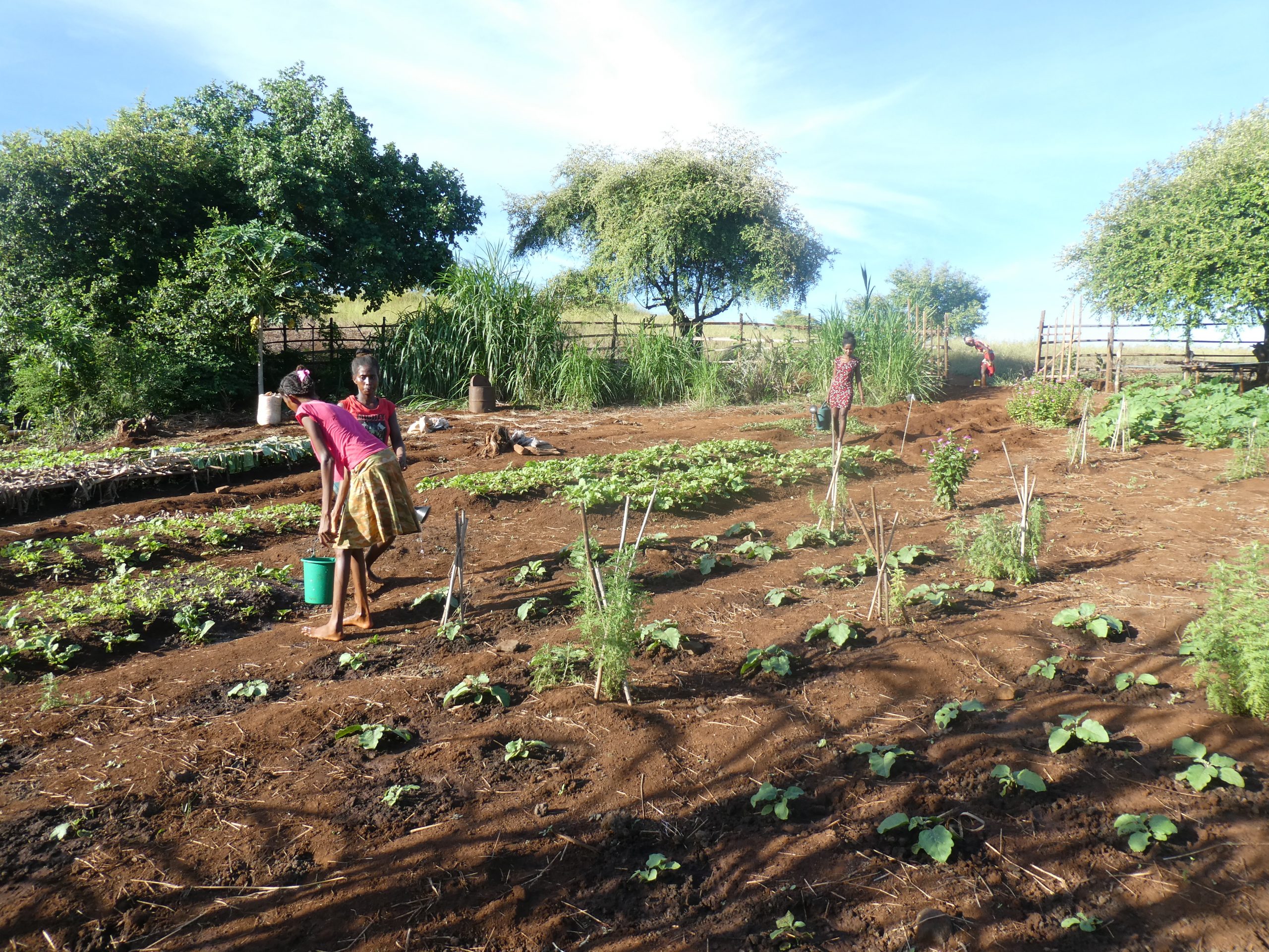 Die Mädchen passen ab dem Alter von ca. 9 – 10 Jahren auf ihre kleinen Geschwister auf und lernen wie man Babys aufzieht. Auch im Bereich Kochen, Waschen, Gemüseanbau und Sauberhalten der Hütte übernehmen sie Verantwortung.