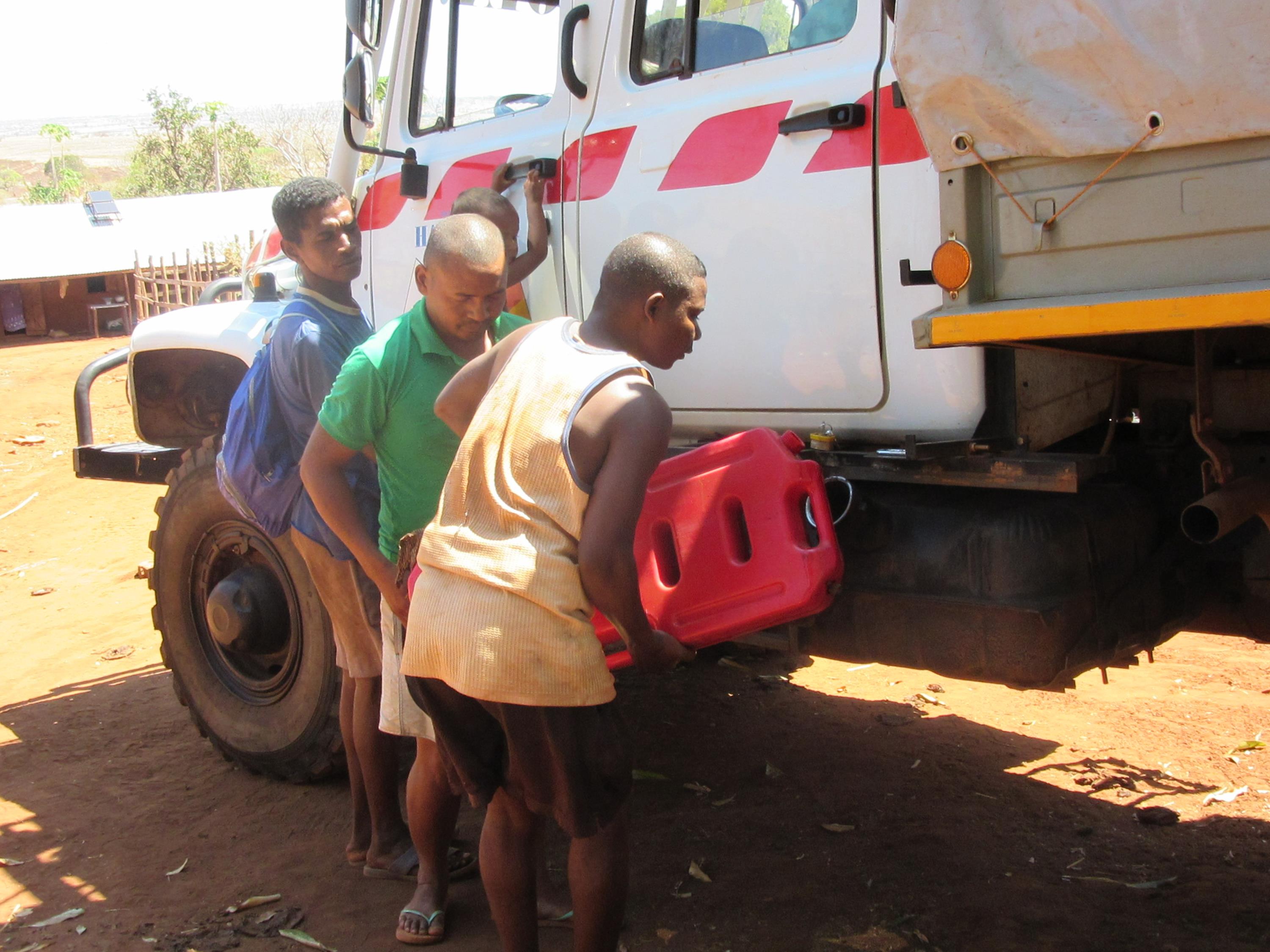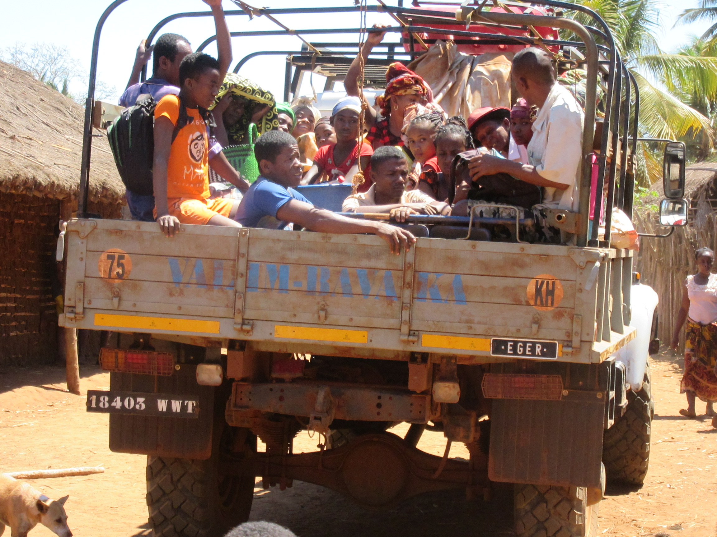 Bei Versorgungsfahrten können die Dorfbewohner kostenlos mitfahren (s. Bild re. u.), es war sehr ergreifend zu erleben, wie dankbar diese einfachen Leute sind.