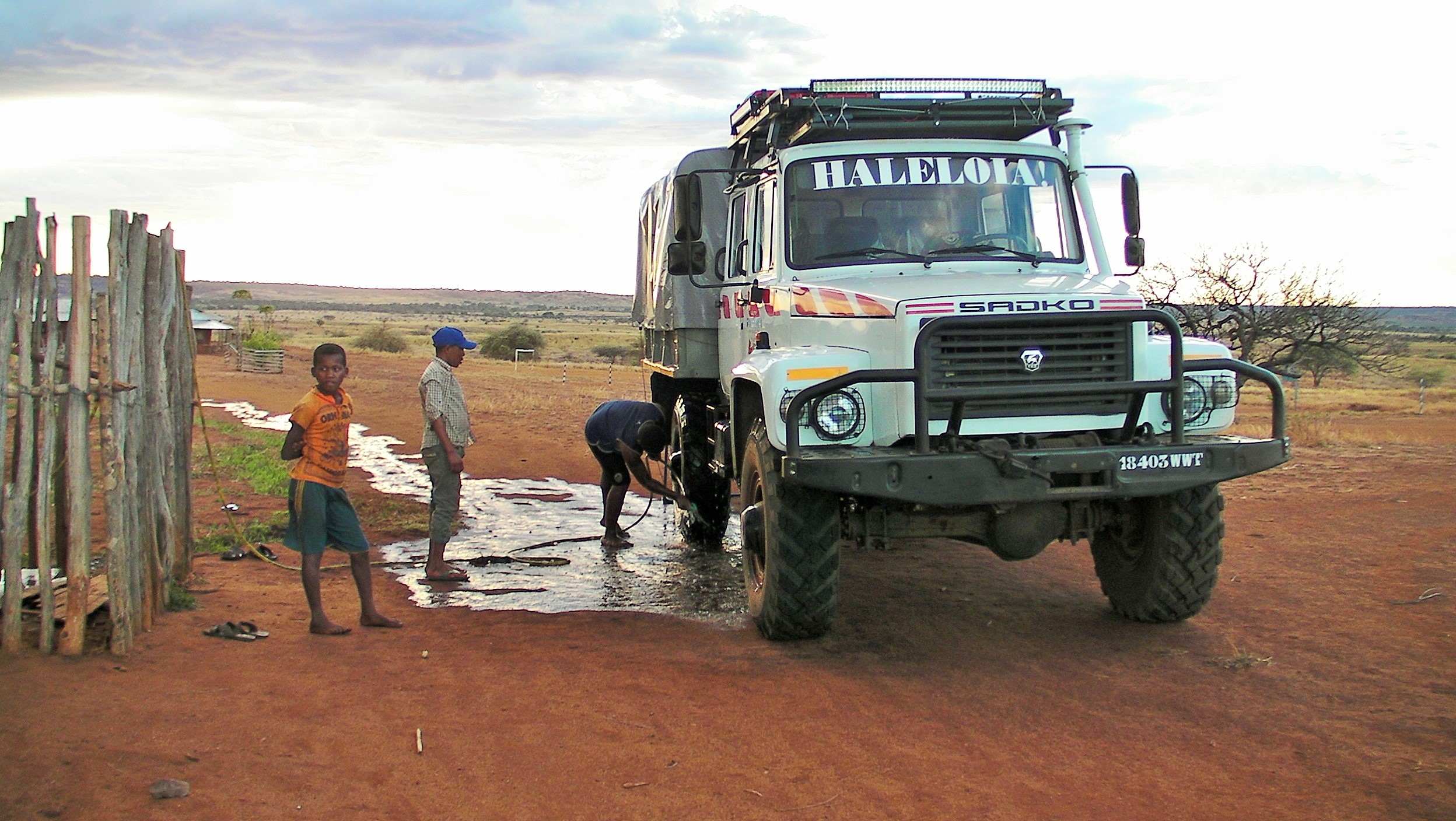 Alle Dorfleute sind begeistert von dem neuen Geländewagen (SADKO). Jedes Mal, wenn er ausrückt, verkündet er das Evangelium, u.a. durch die Aufschriften.
