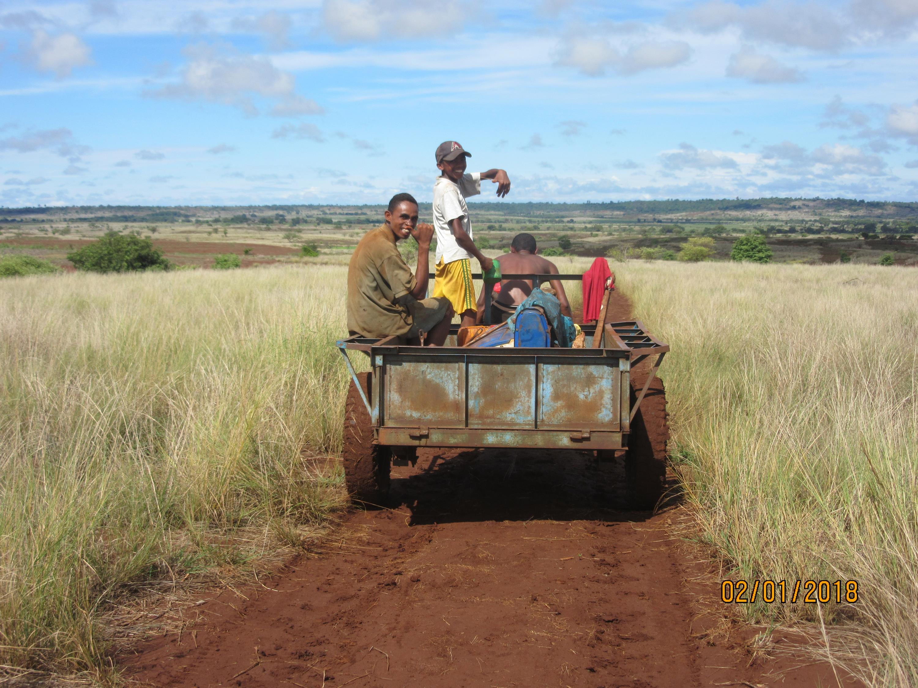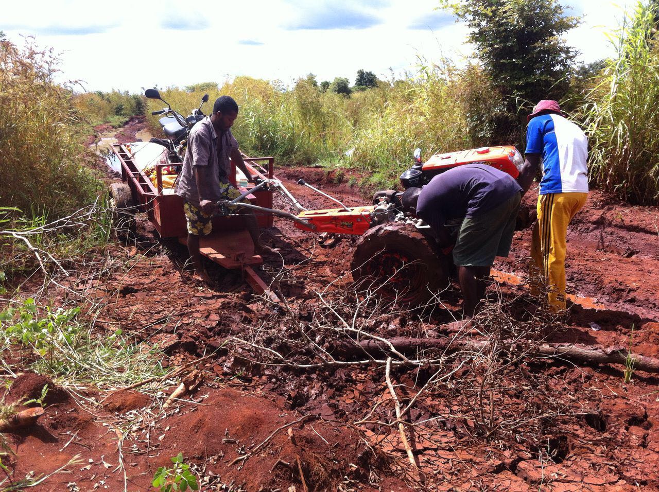 Für den neuen Kubota wurde extra in Port-Berger ein Anhänger gebaut, deswegen war die Maschine bisher noch nicht in Ambohitsara. Am Ostermontag hat ein Fahrer sie mit Waren und Passagieren (u.a. Roseline) nach Ambohitsara gefahren. Da diese Kontstruktion nicht dafür gedacht ist, so weit über Land zu fahren und es noch Regenzeit ist, blieb sie mehrmals stecken. Mr. Gerard, der Fahrer, musste noch einige Männer aus einem umliegenden Dorf organisieren, um sie rauszuziehen. Eigentlich wollte Roseline noch zehn 80-kg Reissäcke mitnehmen. Aber sie war dann doch ziemlich froh, dass sie es nicht gemacht hat. Aber alle sind gut in Ambohitsara angekommen.