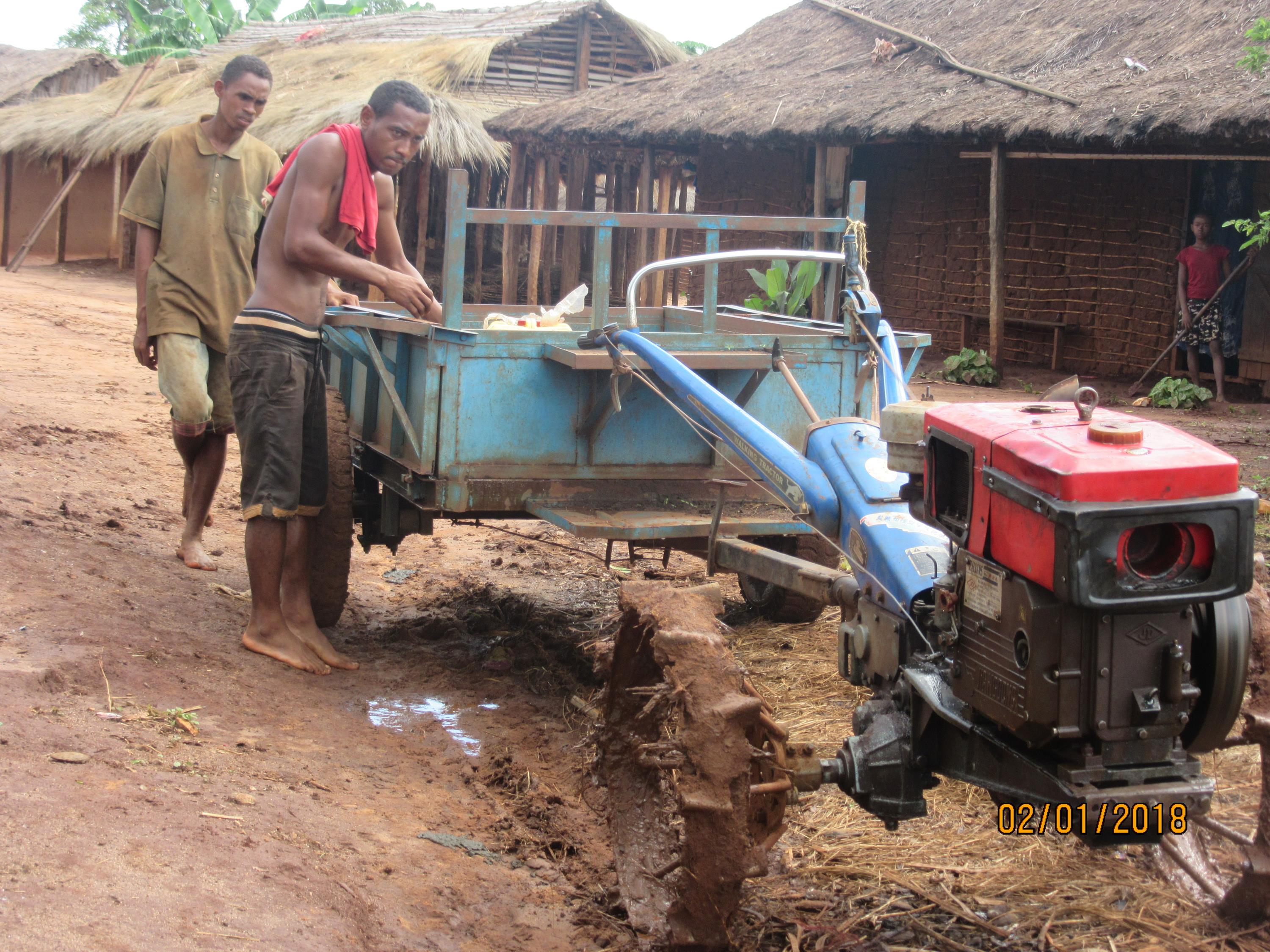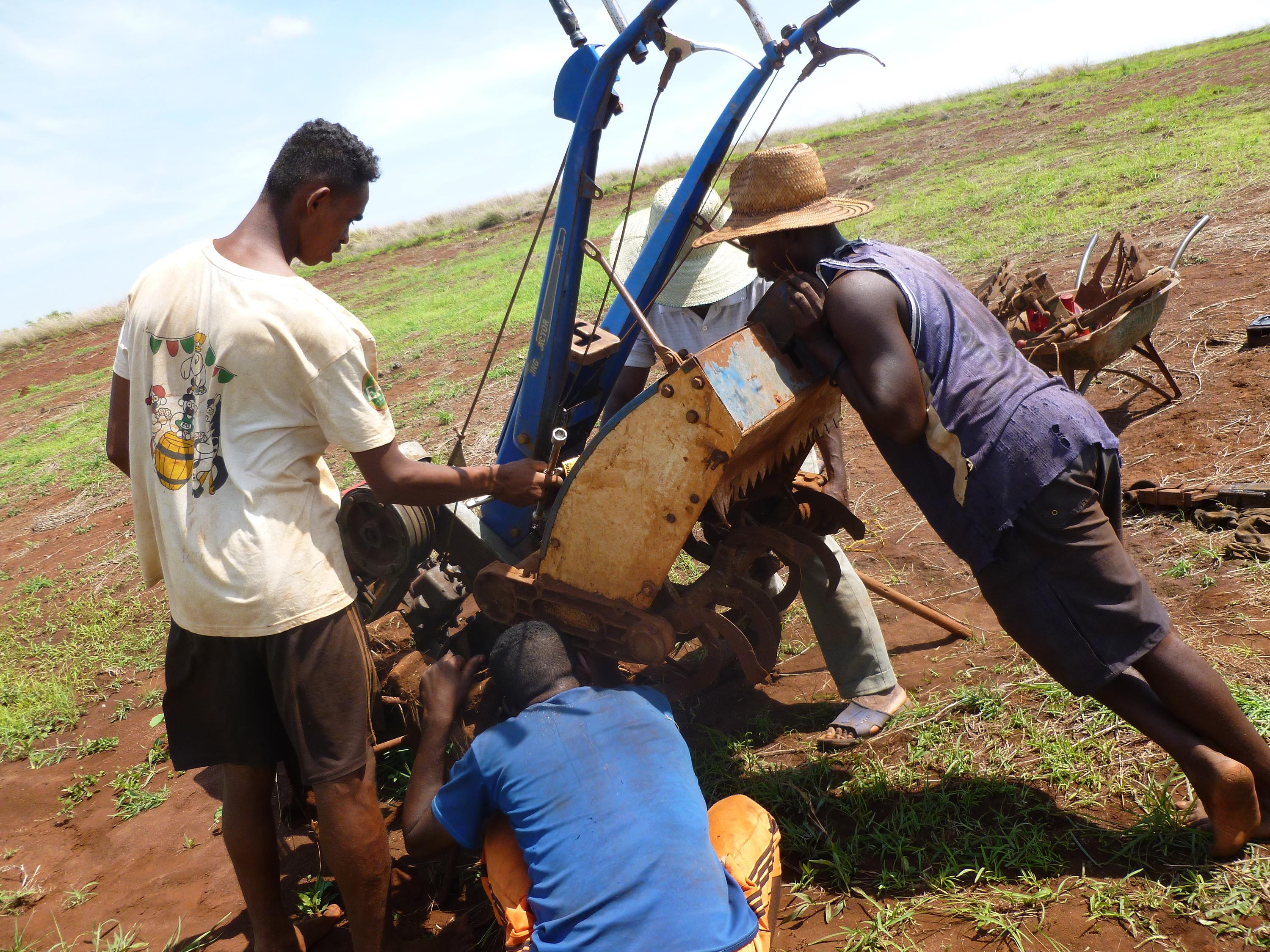 Unser Stipendiat Clement, der diesen Einachsschlepper früher betreut hat, ist extra in seinen Ferien nach Ambohitsara gekommen, um das Ackerbaut-Team im Umgang damit zu schulen. Clement ist mittlerweile ordinierter Pastor und macht sein Masterstudium in Theologie.