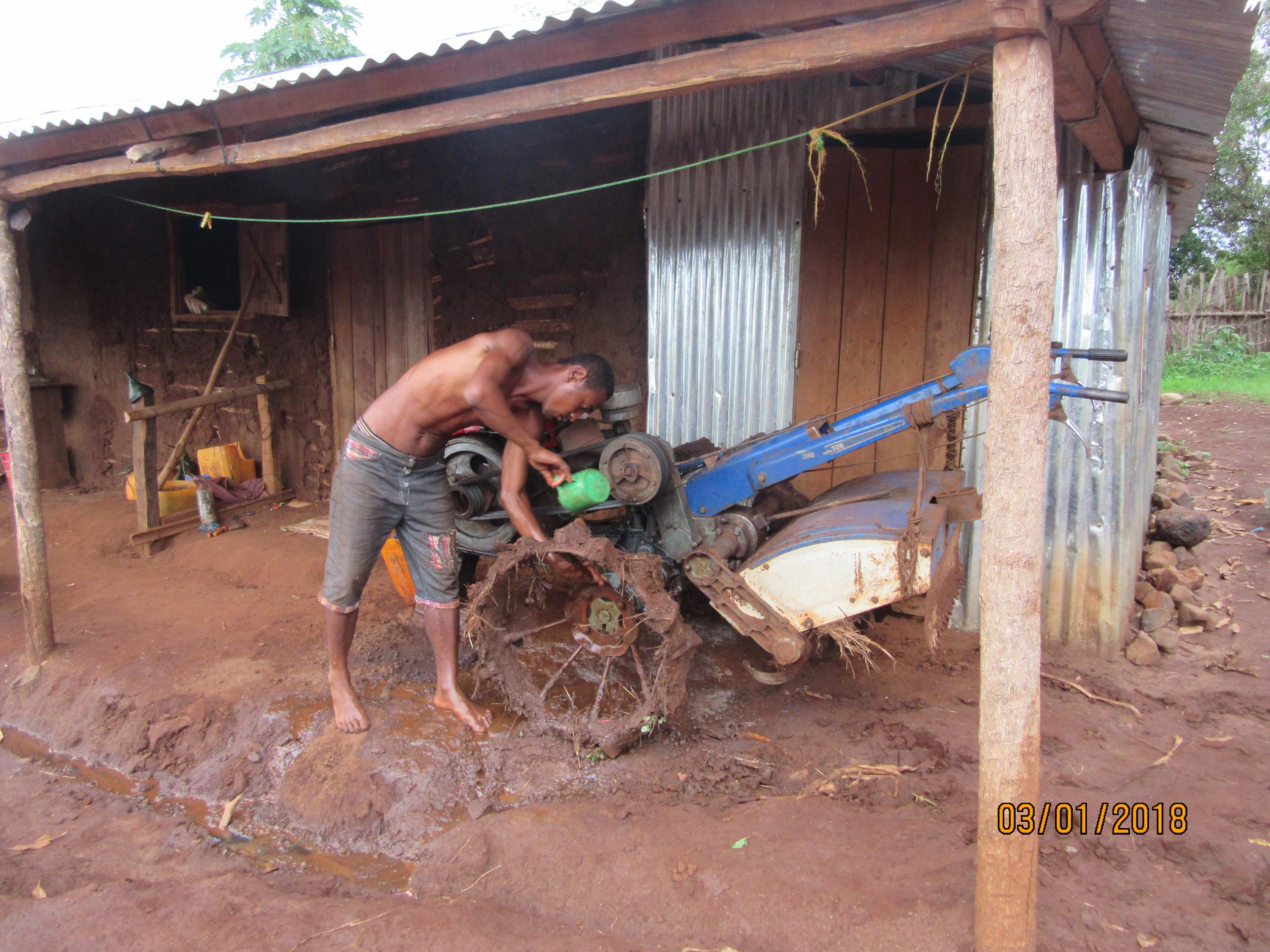 Außerdem haben unsere „neuen Männer“ auch sehr viel Ahnung von Motoren. Da der ältere der beiden Einachschlepper ein chinesisches Fabrikat ist, war er von Anfang an ständig kaputt. Auch als dieser chinesische Einachsschlepper mitten auf dem Feld kaputtgegangen ist, war das kein Problem.