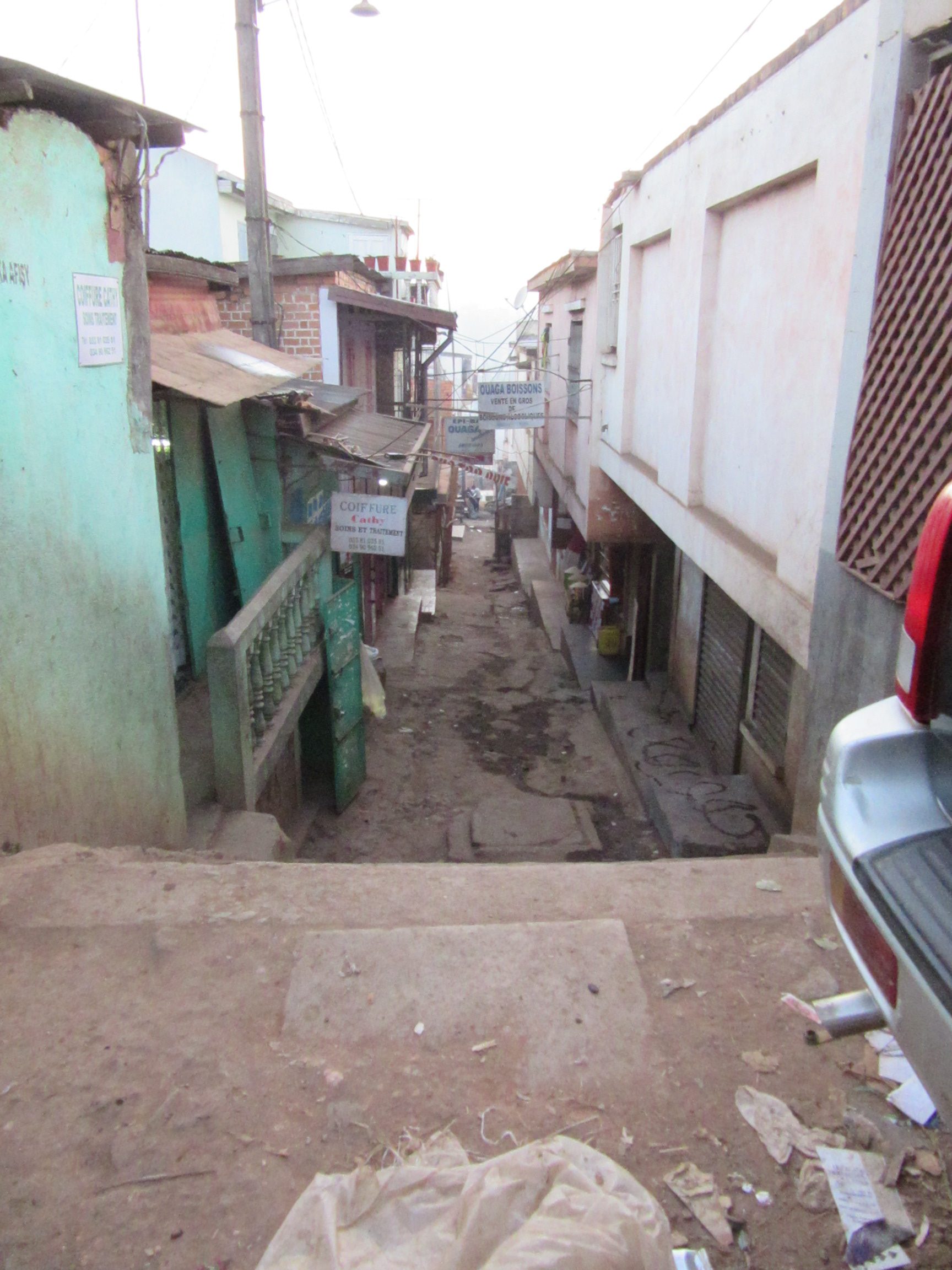 - Enge Gassen mit offenen Abwasserkanälen…