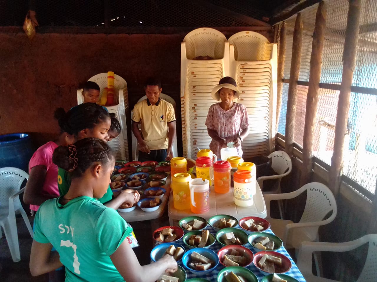 - Außerdem wollen wir das Gebäude auch in den Zeiten benutzen, in denen keine Lerncamps stattfinden. Weil es ein sehr schönes Gebäude ist, mit Küche, Küchenausstattung und Geschirr. Es wäre jammerschade, wenn es leer steht, da die Schule es nur alle 3 Monate so intensiv nutzt. Deswegen wollen wir die umliegenden Dörfer zu Alphabetisierungsveranstaltungen einladen und regelmäßig das Evangelium weitergeben. Sie können dann dort die Leute auch bewirten, mit ihnen essen, reden….
