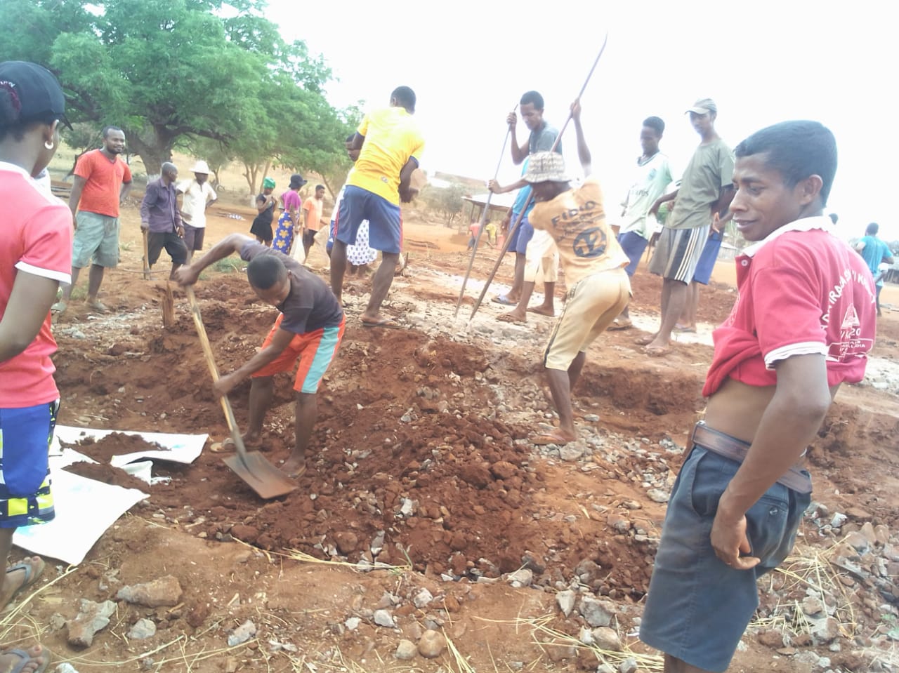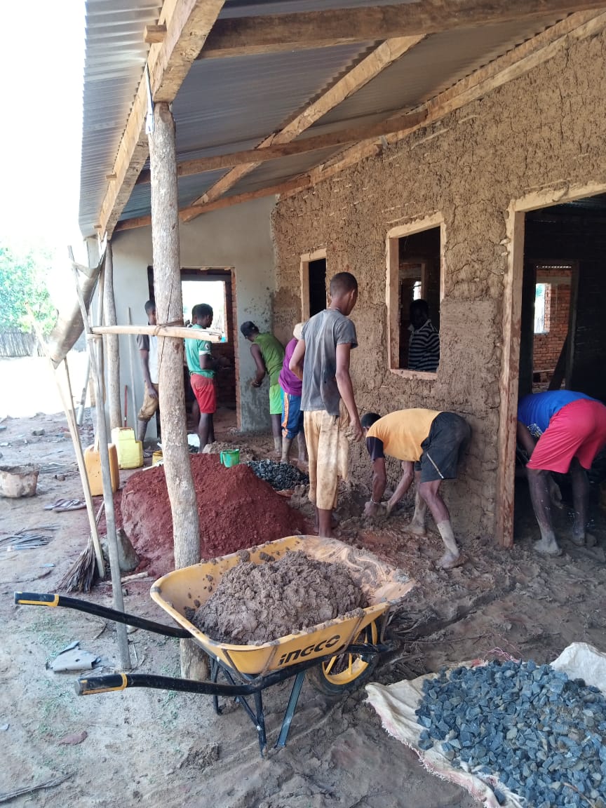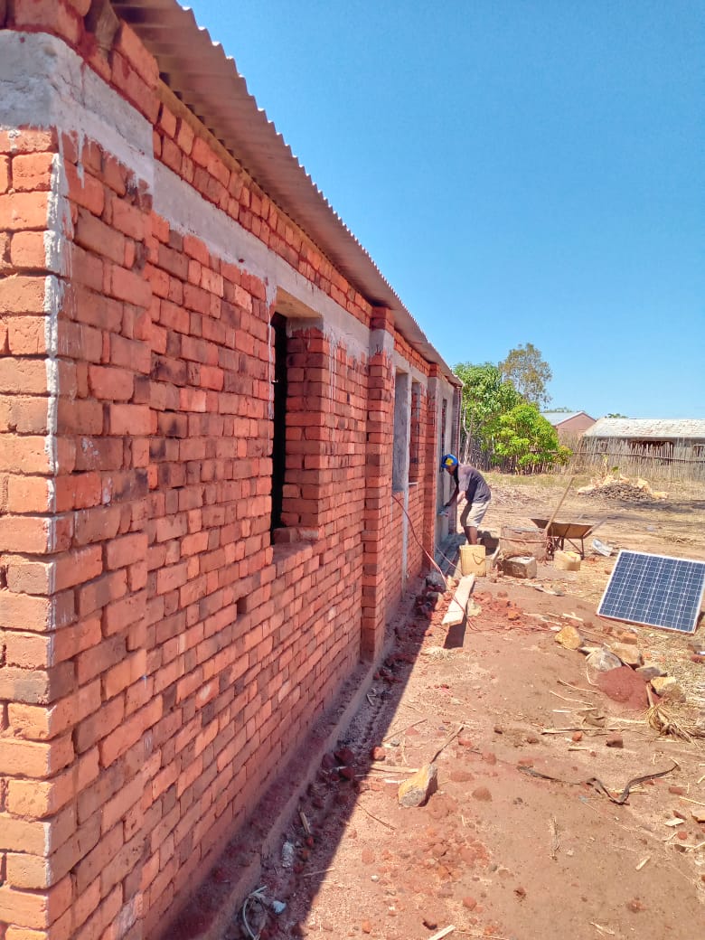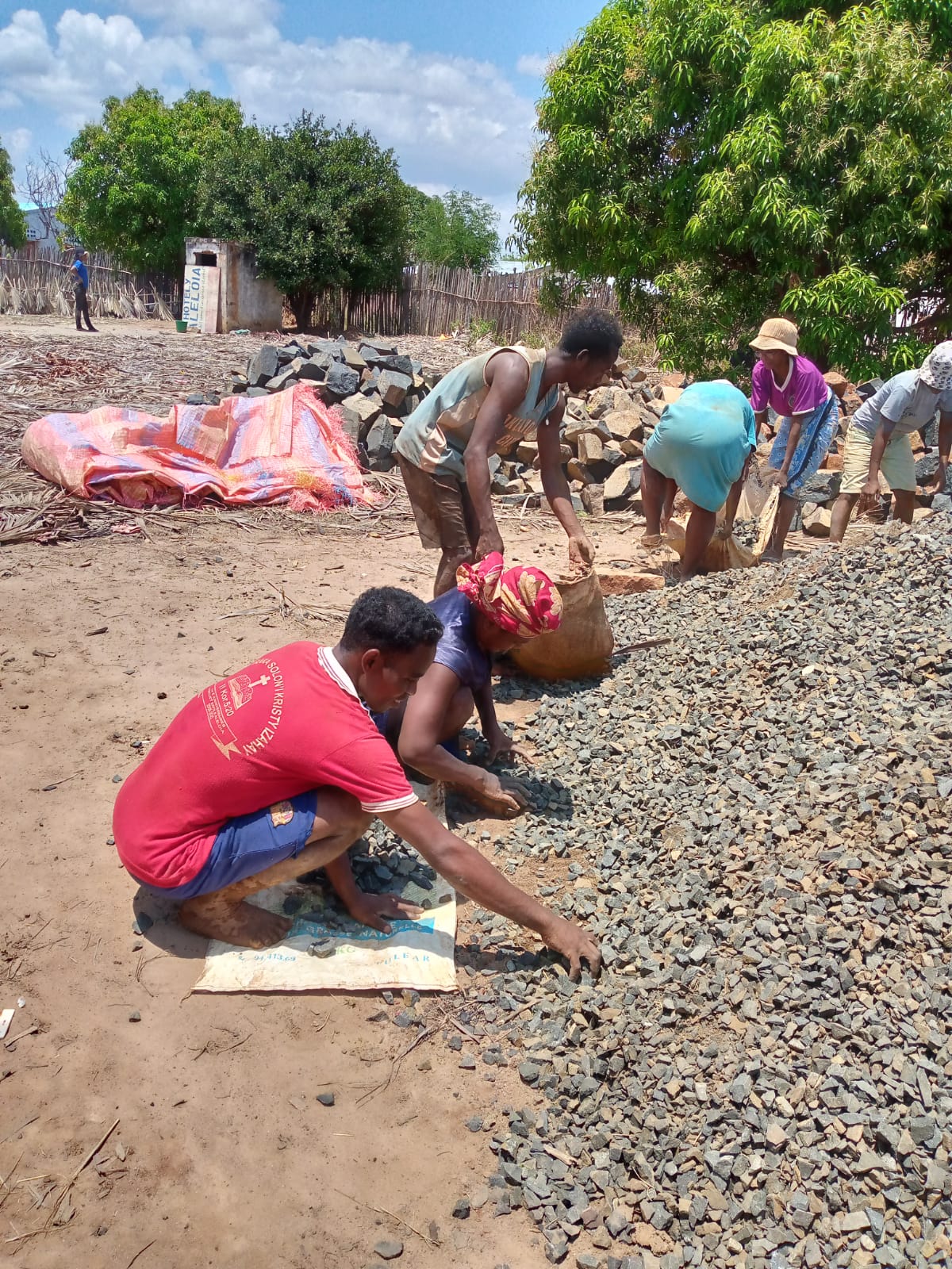 - Wie manche wissen, ist die alte Schulkantine nicht mehr da. Die Eltern der Schulkinder von Ambohitsara und Umgebung haben sie damals gebaut, aber einen Baufehler (Statik) gemacht. Und so war sie einsturzgefährdet und musste abgerissen werden. Jetzt wird dort von den Eltern ein neues, großes Gebäude gebaut. Mit vielen Zimmern. Das wird uns sehr helfen, da wir dieses Jahr viele Kinder – vor allem in den ersten Klassen der Grundschule – zurückweisen mussten. Wir haben einfach nicht so viele Räume. Und in manchen der unteren Klassen haben wir schon bis zu 70 Schüler – mehr Kinder pro Klasse wären einfach nicht sinnvoll….