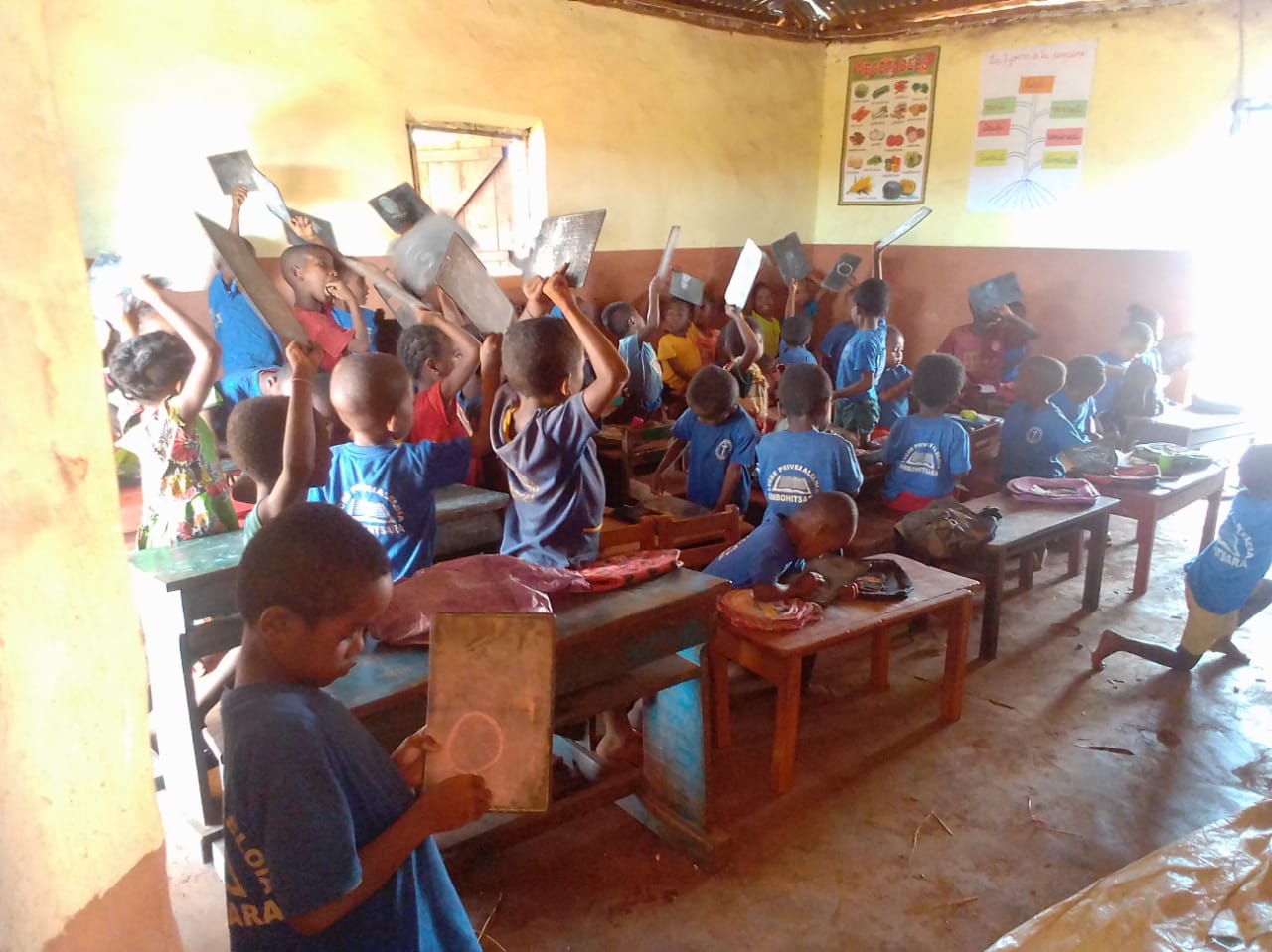 - Inzwischen gibt es sogar eine Art „Fernunterricht“. Sie speichern die Lehrvideos in Port-Berger und bearbeiten sie dann zusammen mit den Schülern in Ambohitsara. Noch vor einigen Jahren war das wie ein Science Fiktion Film. Und es gibt auch Fernunterricht über unseren Satelliten-Fernseh-Kanal.