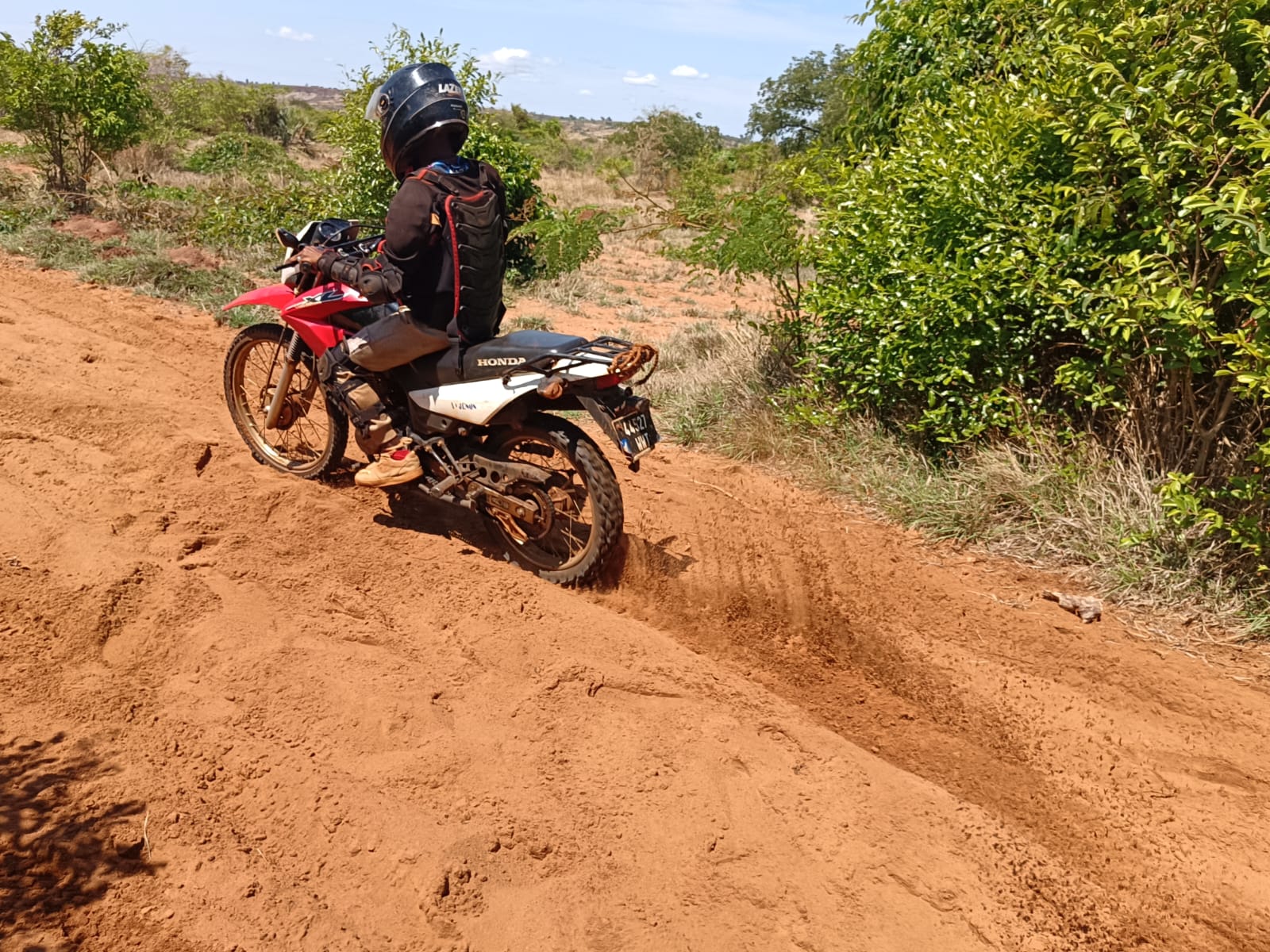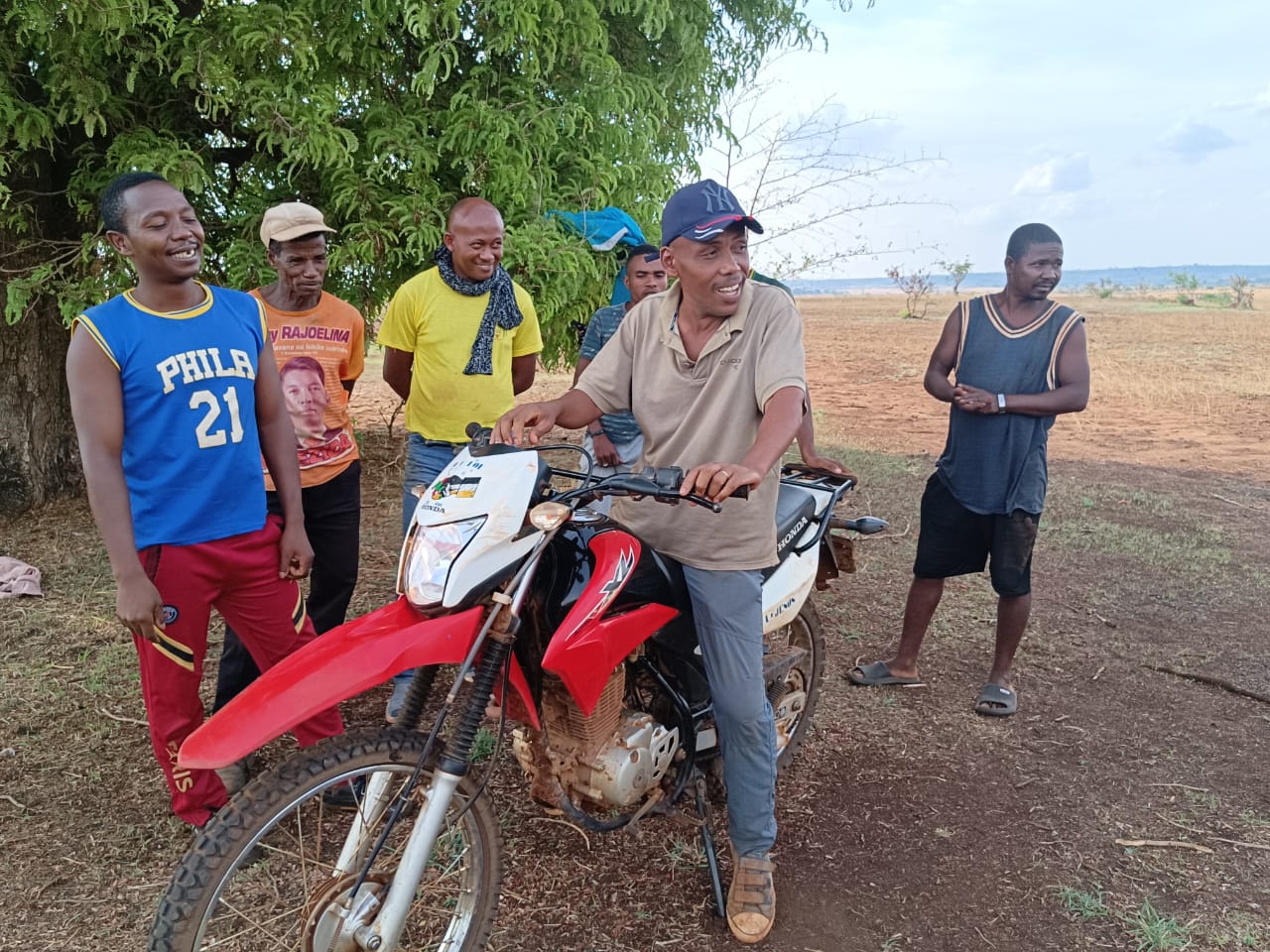 Alle Fahrer müssen jetzt nach und nach ihren Motorrad-Führerschein machen. Fahren können sie schon. Sie bekommen von einem Fachmann aus Port-Berger einen Fahrkurs und müssen jeden Tag üben. Es ist nicht einfach, auf diesen Pisten zu fahren! Sie dürfen auf dem Bongolava-Plateau frei „herumfahren“, bis zur Teerstraße in Port-Berger. Auf der brauchen sie aber einen Führerschein.