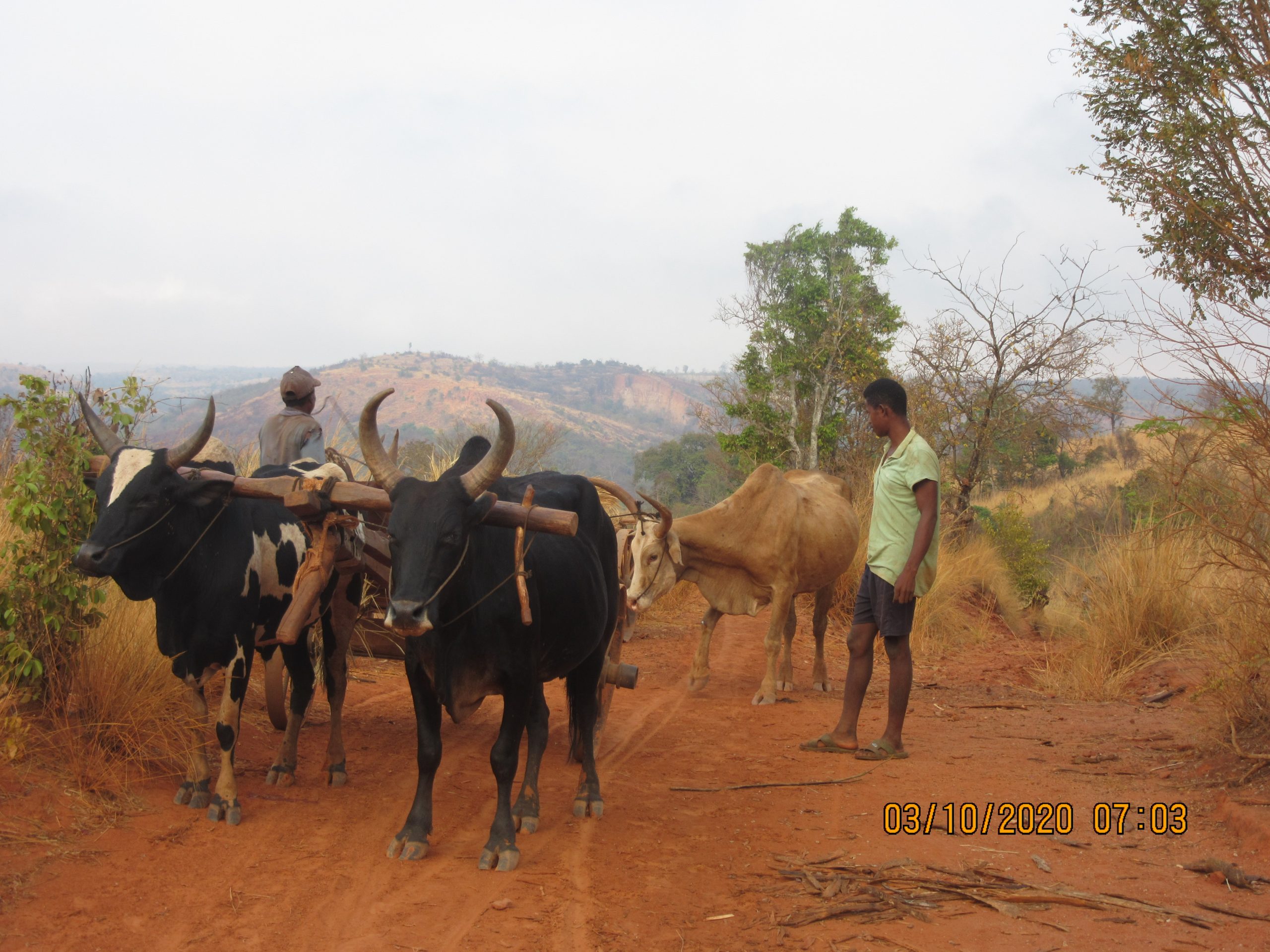 Unser Team ist dann am 19. Juni dorthin gefahren. Es gibt keine Piste, wo der SADKO hätte fahren können, deshalb mussten wir per Ochsenkarre fahren. 10 Christen aus den umliegenden Dörfern haben uns unterstützt – 3 davon waren die Kinder von Jean-Nest! Auf dem Weg dahin ist sogar eine unserer Ochsenkarren mehrfach umgekippt, so schwierig ist das Gelände dort. Gott hat uns aber beschützt, es ist kein nennenswerter Schaden entstanden.