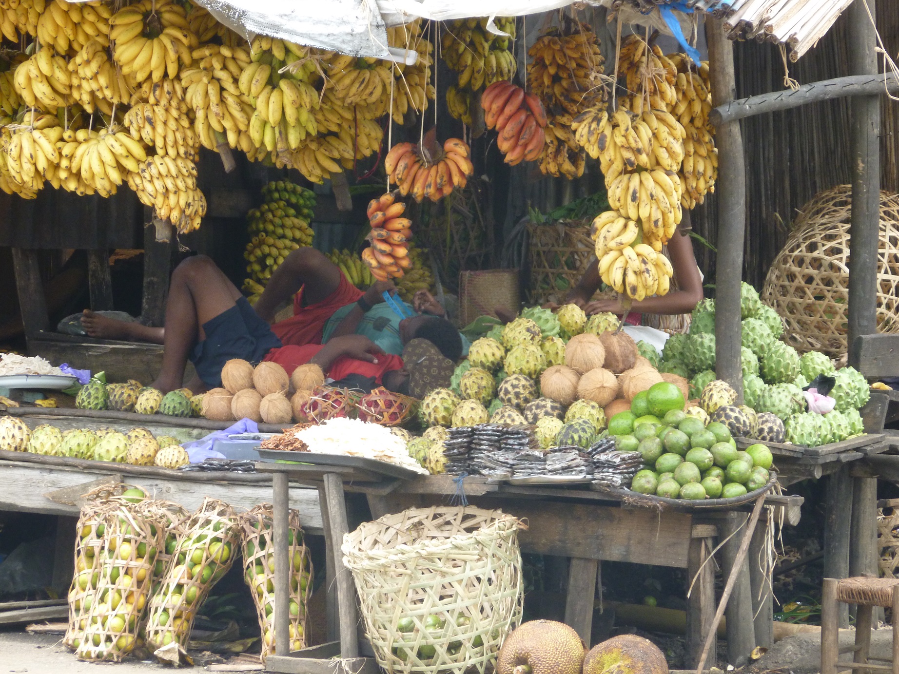 In Tana, der Hauptstadt, gibt es natürlich auch einige Supermärkte, (Jumbo z.B.) wo man eigentlich alles bekommt, was es hier in Europa auch gibt. Aber alles ist preislich sogar weit über dem Europa-Niveau. Deswegen gehen da nur die Super-Reichen hin. Alle anderen kaufen ihre Lebensmittel und sonstige Produkte auf den vielen Märkten, die es überall (sogar in Port-Berger) gibt. Noch eine Besonderheit von Port-Berger: Wenn die Hausfrauen fertig sind mit ihren Einkäufen, können sie diese bequem per „posy“ nach Hause transportieren lassen…
