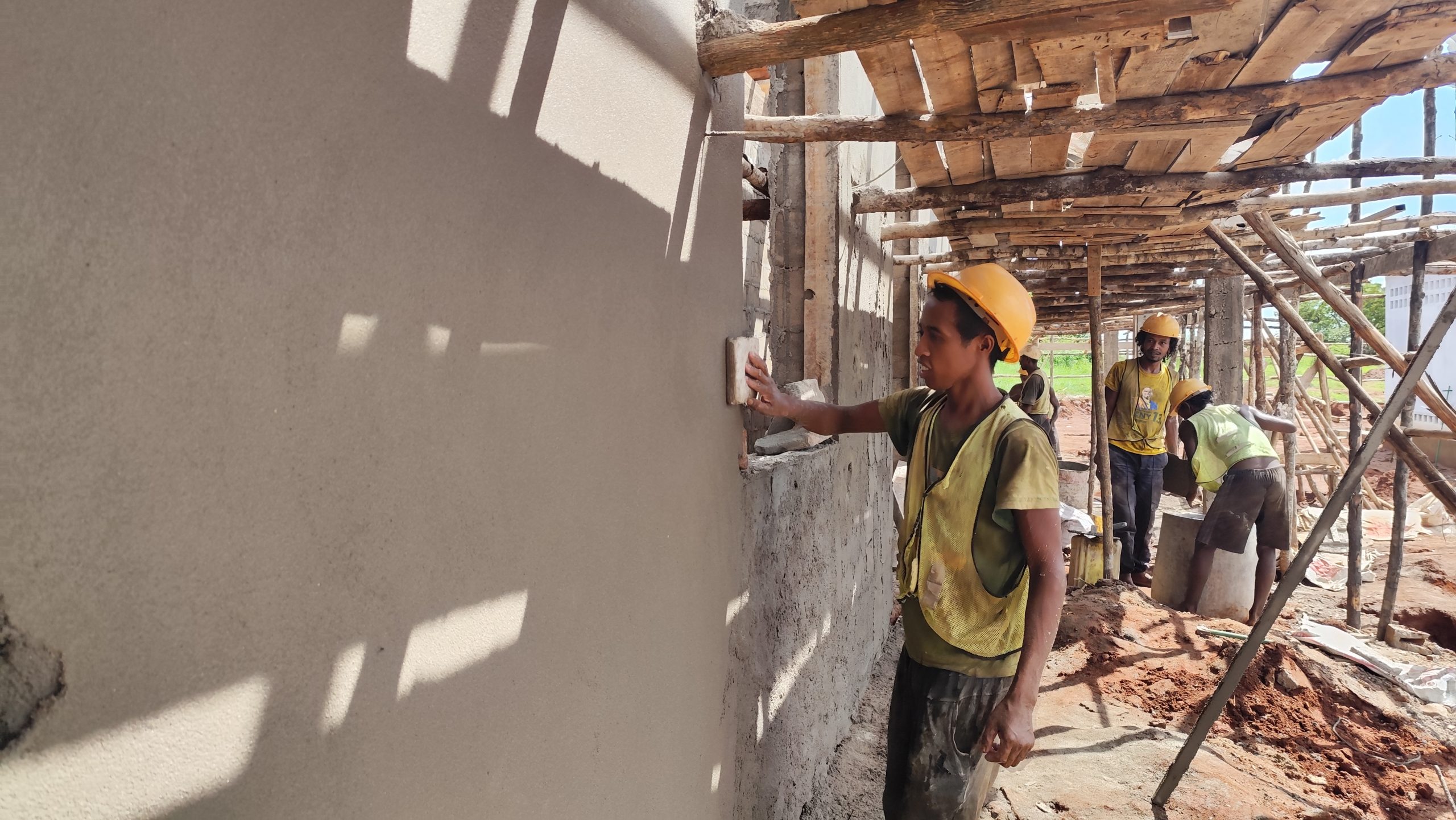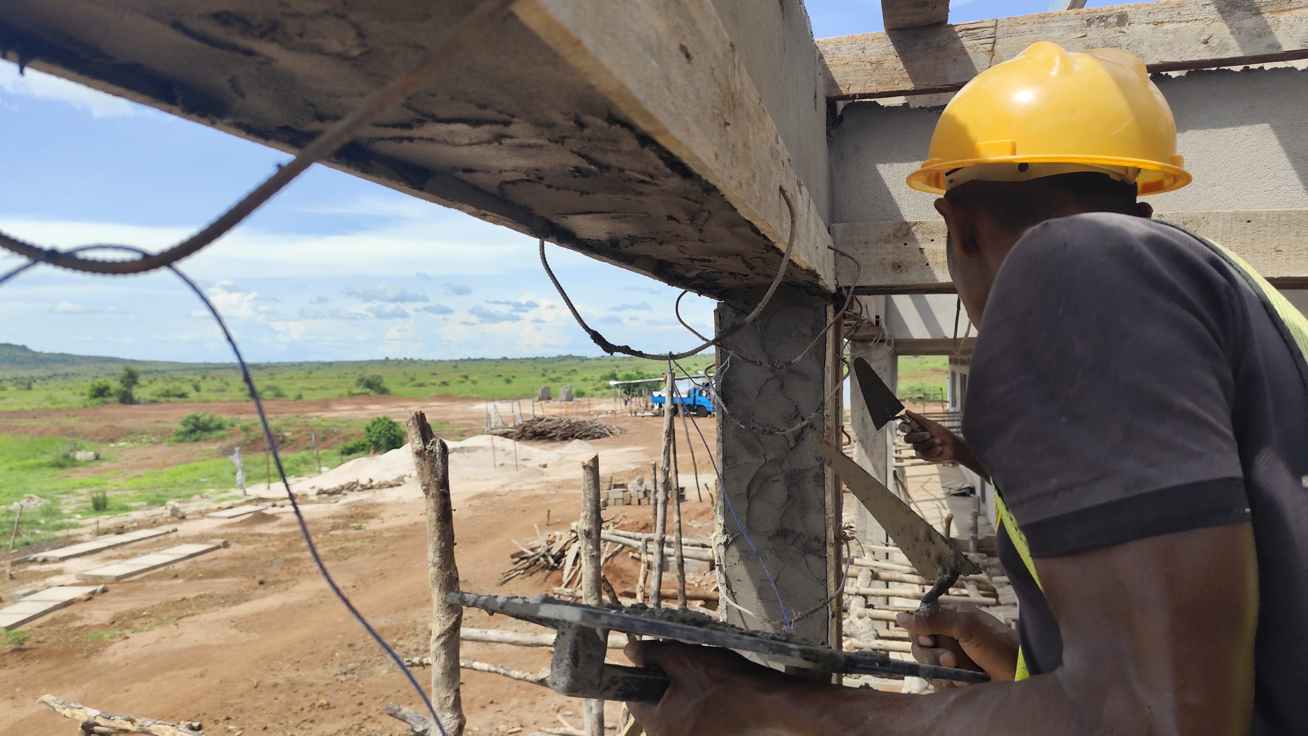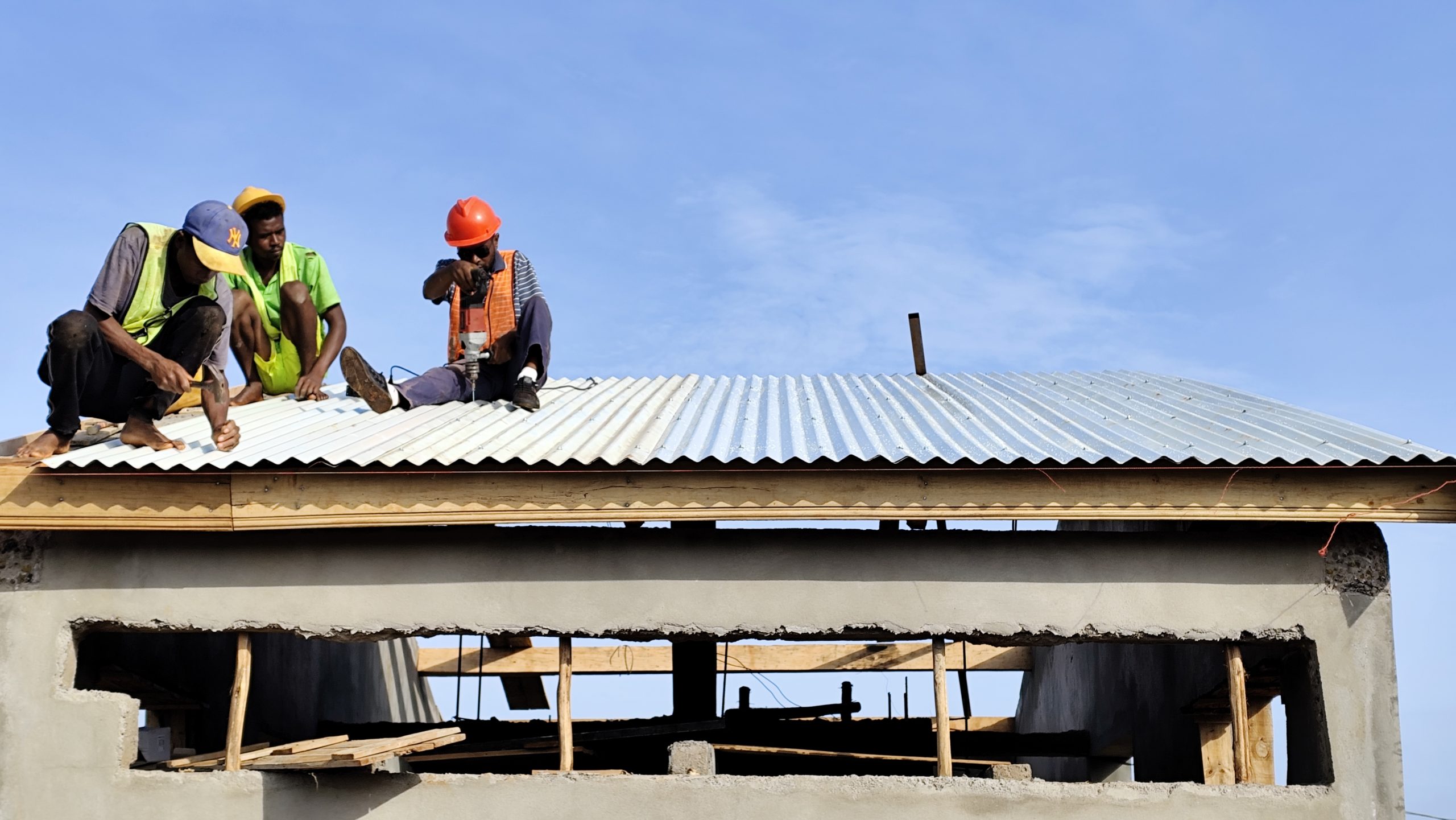 Es regnet! Aber davon lassen sich unsere Leute nicht abhalten. Sie bauen trotzdem fleißig weiter. Jeden Tag wächst unser Bau. Wir bekommen auch wöchentlich neue Bilder und Videos von der Baufirma über den Baufortschritt. Sie fangen schon an, die Dächer zu decken. Es ist schön zu sehen, wie Gott ihre Arbeit segnet.